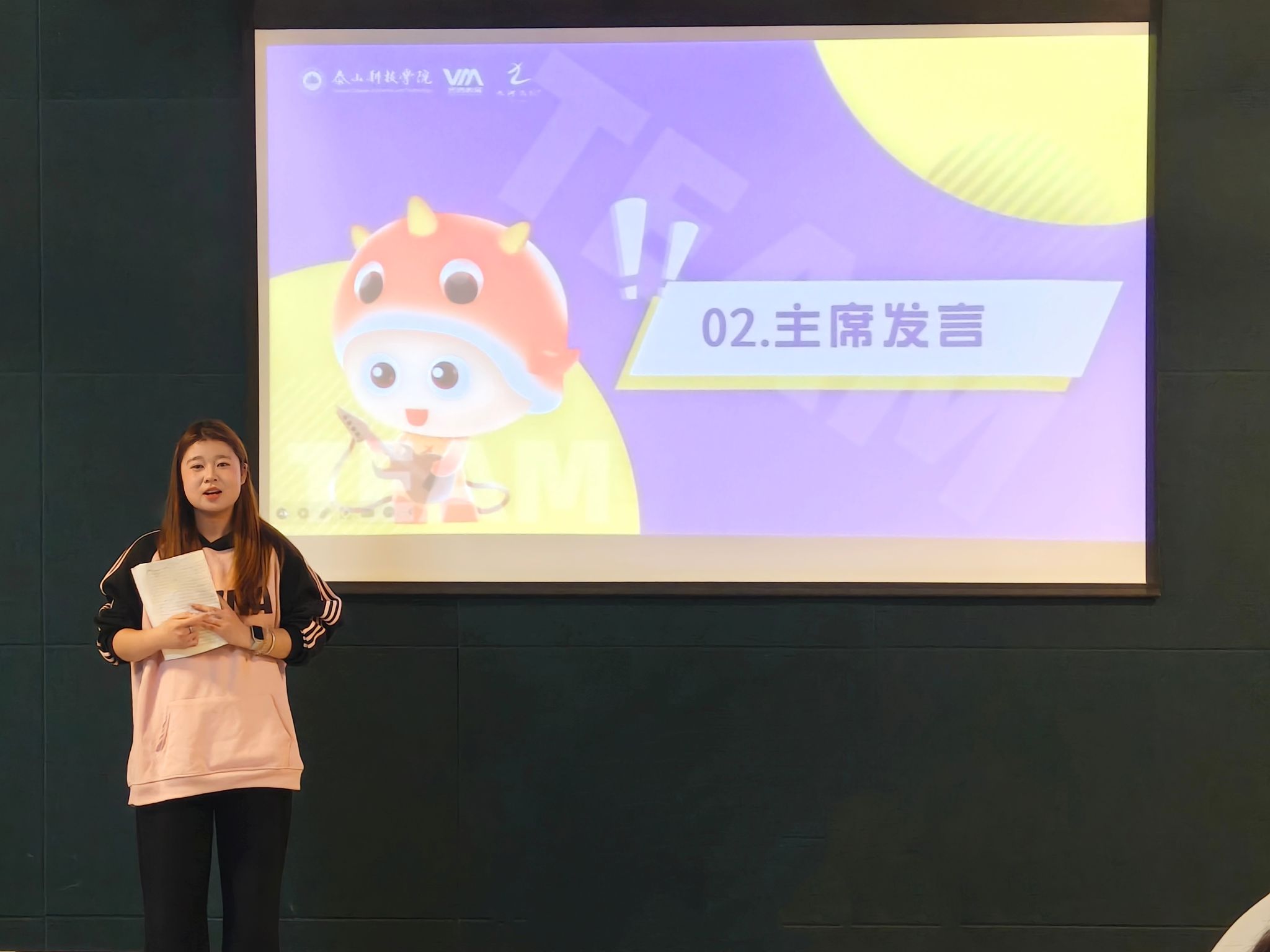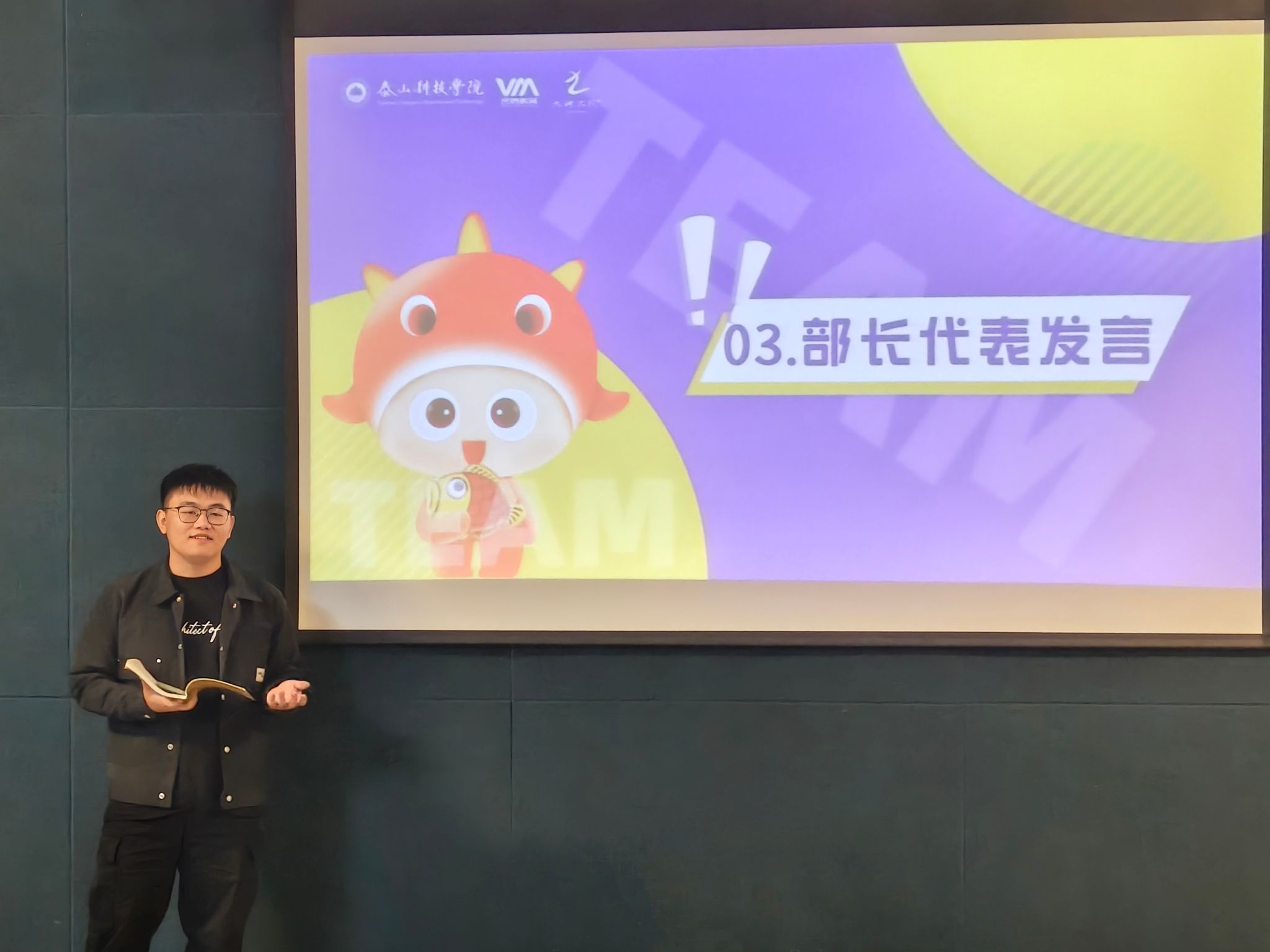 董佳文提醒新干事们:“大学是试错成本最低的时期,大家要勇敢去尝试,要大胆开口。”敢当书院/智能工程学院林俊杰、敢当书院/大数据学院李寒颖两位部长也分享了自己的成长地图——没有高深理论,只有实实在在的走过的路、发过的光。
