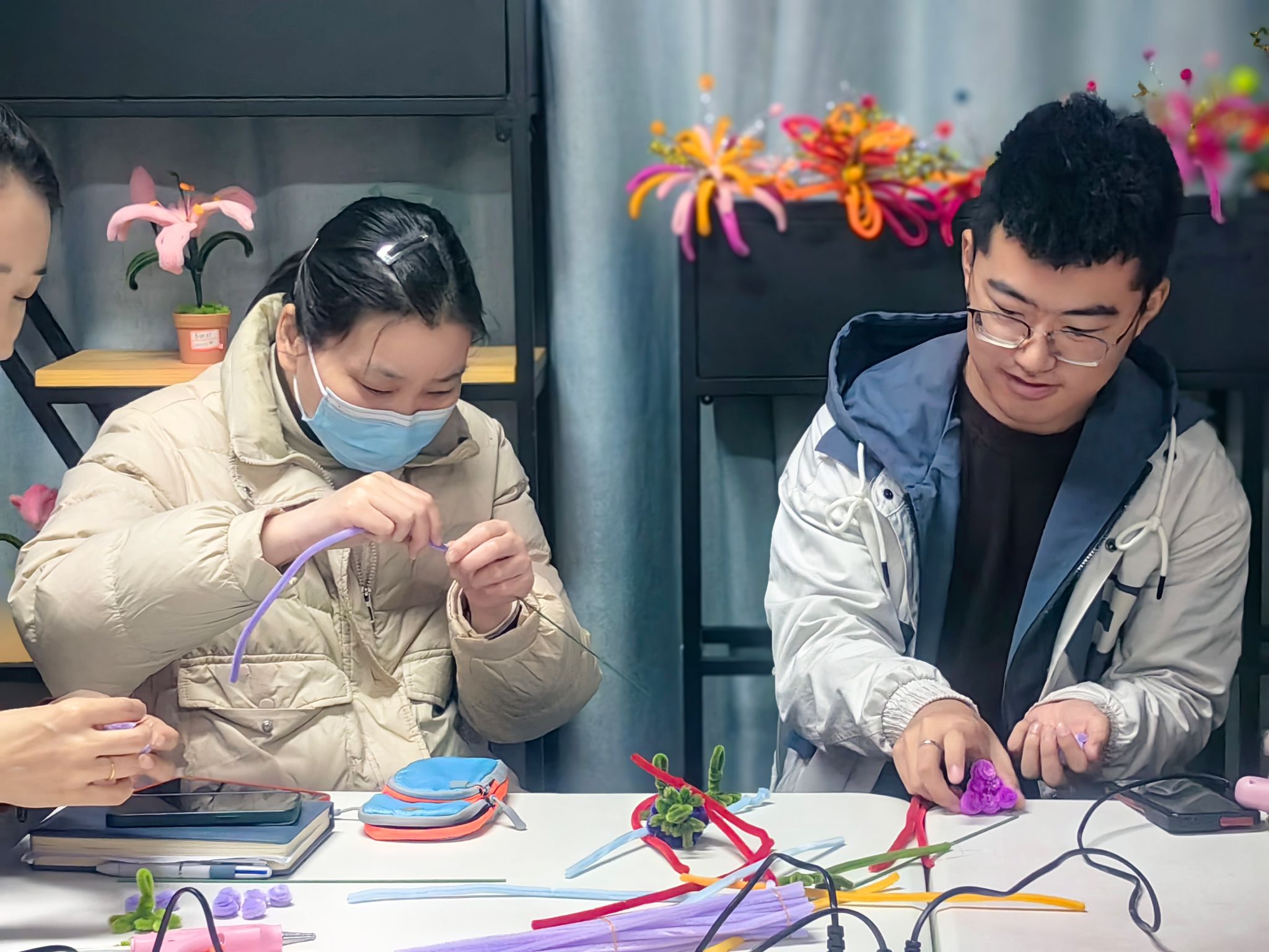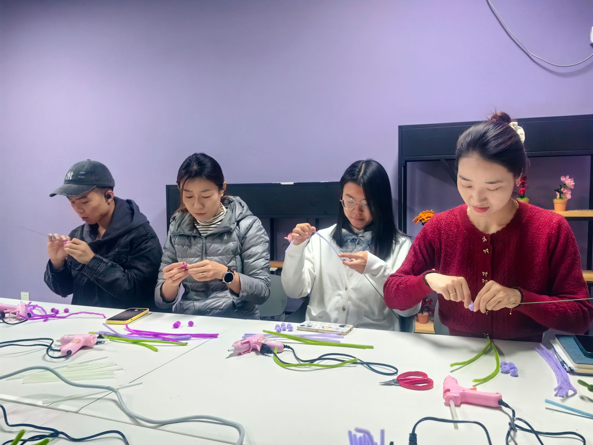 冬意渐浓,温情不减。11月13日上午,九河书院·扭动无限手作工坊举办了“异科导师进工坊”——“异”起扭扭棒第5期“萄”你欢心葡萄小挂件活动。在工坊指导老师郝艳芝的带领下,三位全生异科导师携各自学生共同参与了此次活动,在指尖的捻转缠绕中,串起冬日的灵感与情谊。