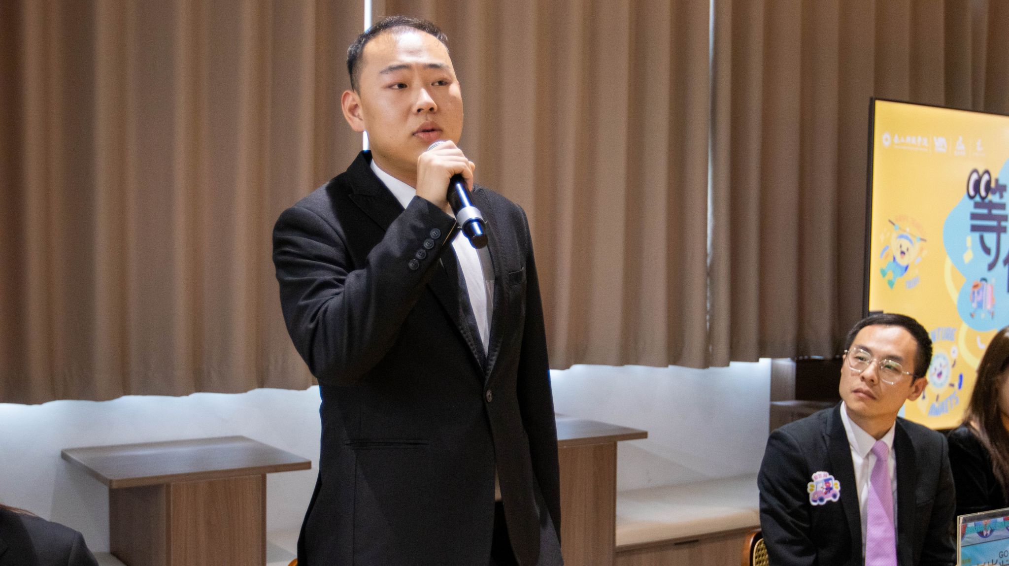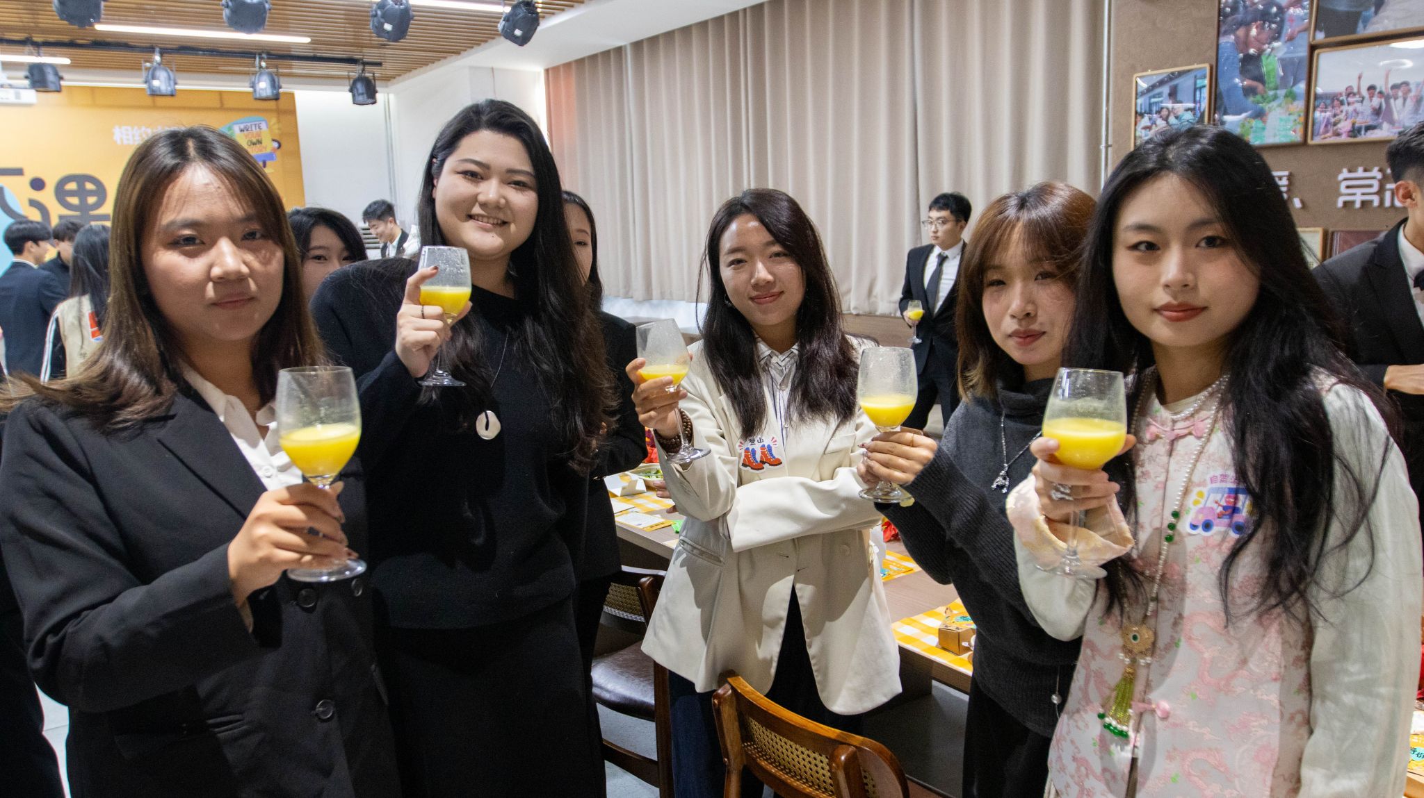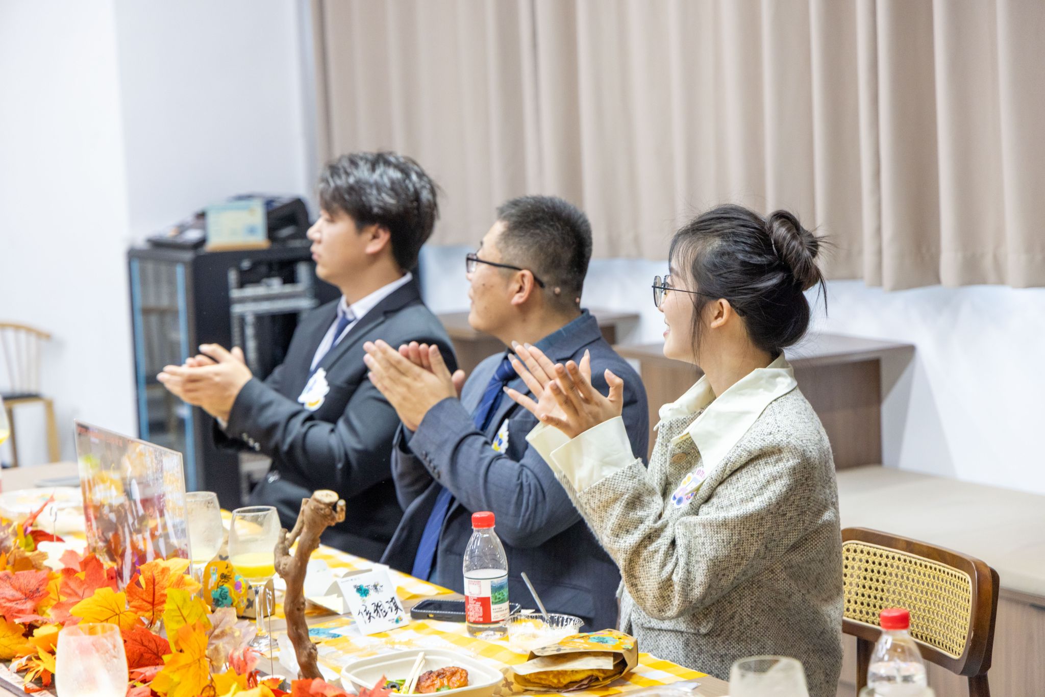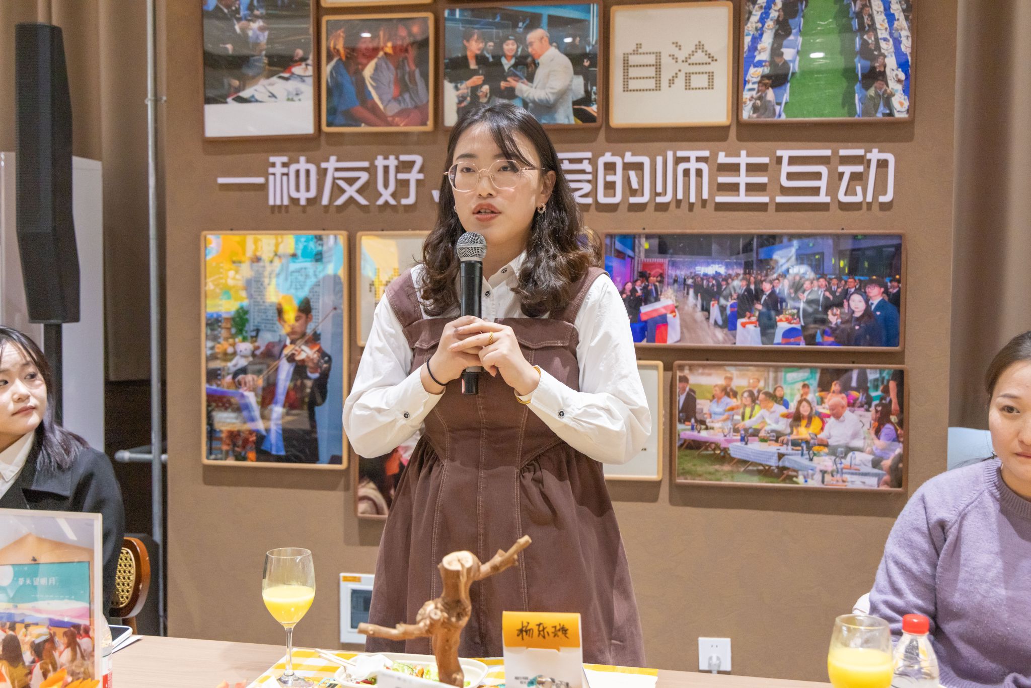 随着主题视频播放完毕,一段熟悉的声响悄然回荡在现场。武浩然为午宴致辞。他分享到,“关于下课,在小学时,是小霸王式的童真调侃;中学时,是与发小之间的专属约定;大学阶段,或许是青春里的甜蜜邀约。而今天,它是我们师生围坐、畅聊心声的轻松共膳时光。”随后,他以“在泰科,下课铃声不是终点,而是起点”为主线,与同学们交流了小泰下课后丰富的“成长课堂”。他鼓励同学们真实、尽兴、自由,分享大学的下课铃声从不是学习的终点,而是大家自由、探索、自洽、成长的全新起点,与师生约定,当下课铃声响起,我们不见不散。
