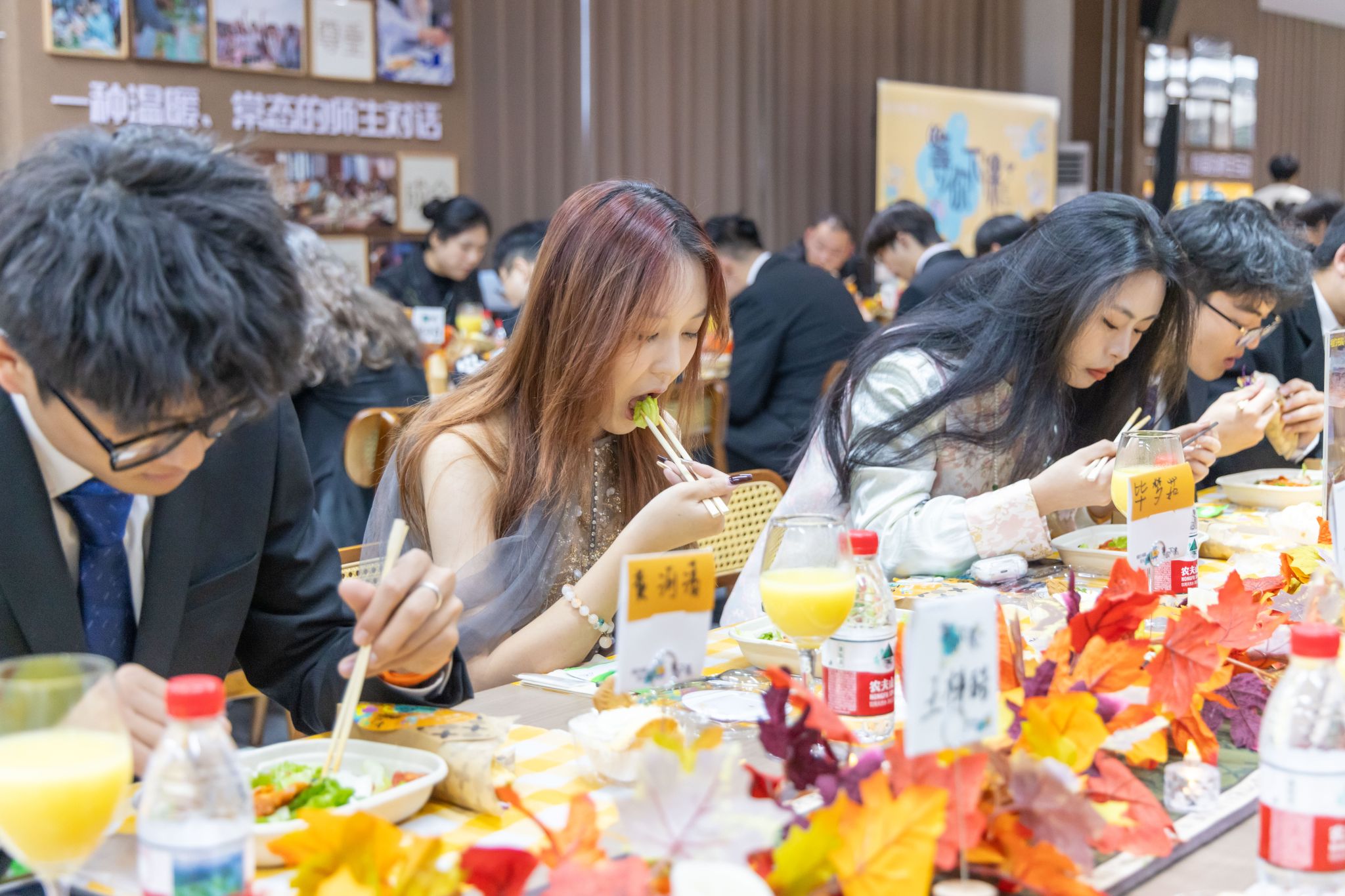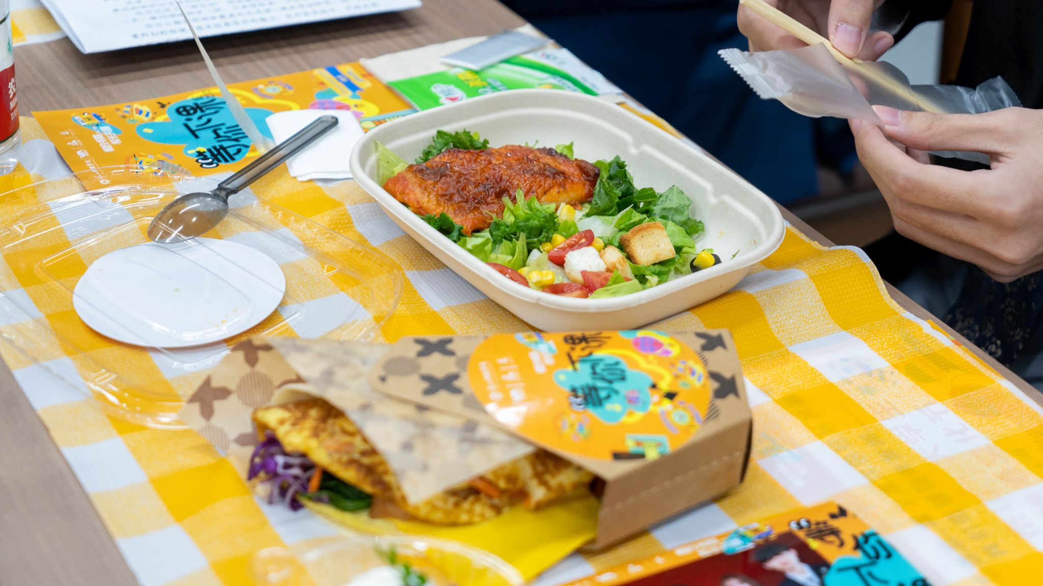 “咕噜噜声”是下课后师生们最常感受到“饥肠辘辘”的声音。现场气氛瞬间变得轻松热闹,这声趣味音效,恰是“三餐・温暖呢喃”篇章的开场信号。看着桌前的蛋饼、沙拉和甜点,大家早已跃跃欲试,纸盒掀开的轻声与师生间的暖心问候交织在一起,共膳厅里满是下课后的烟火温情。没有刻意的仪式,只有如家人围坐般的自在,小泰的师生对话往往就藏在一日三餐温暖呢喃氛围里,食物暖胃,陪伴暖心,而呢喃也许是小泰学子们最真实的情绪表达。