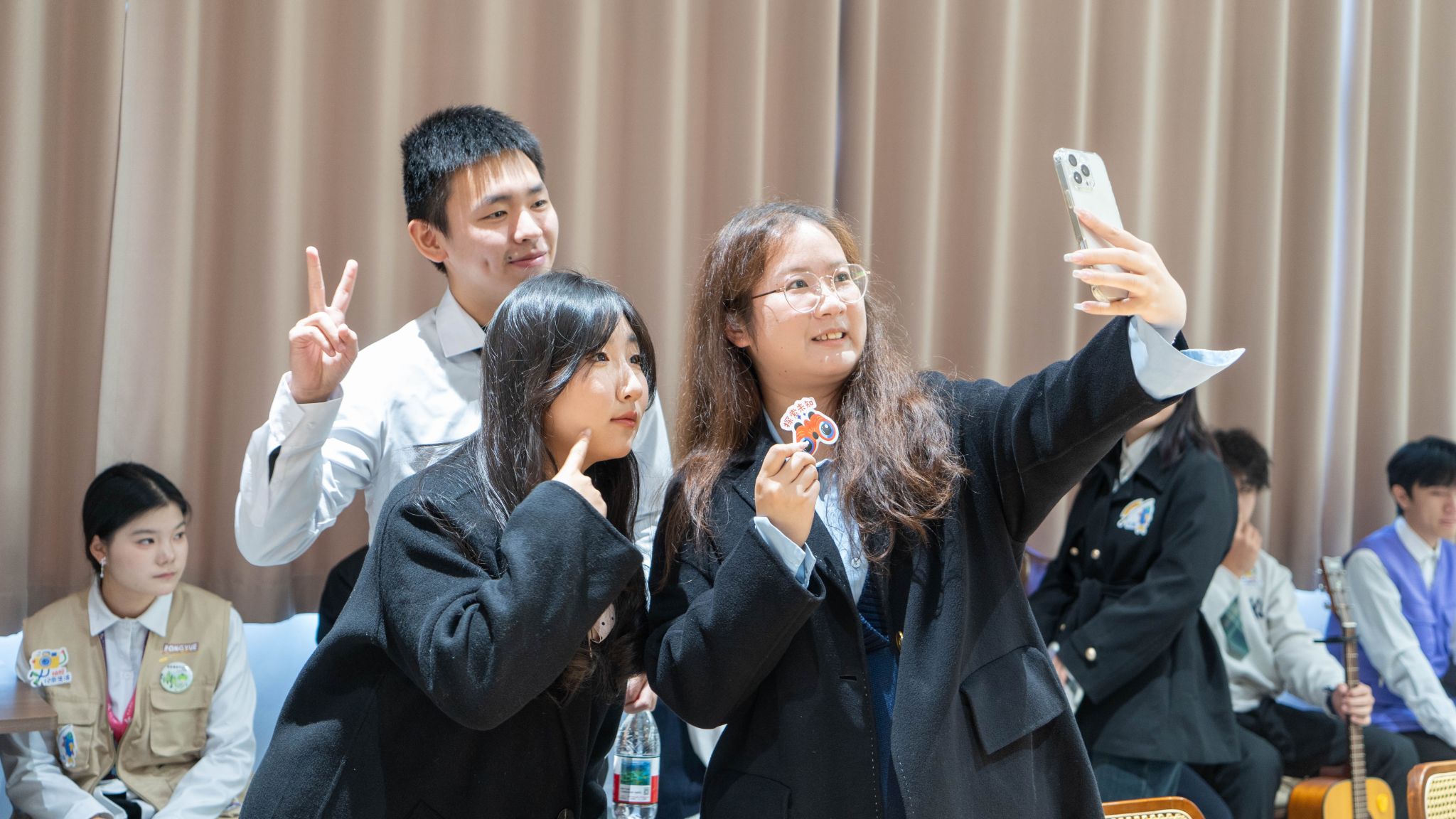 我们别放弃,也许声音微薄,但让世界感受泰科青春。随着“我们成团了”的声音响起,九河书院/艺术传媒学院刘橙铭分享了他准备2026海外研学的经历,在研学节目排演过程中,他和同学们分别扮演了不同的火锅食材角色,用简单的火锅哲学呈现了研学成团过程中所突破的合作困难。在这个过程中他曾因胆怯想了无数次放弃,但当真的坚持下来,他才发现原来也没有那么困难。他说道:“其实在此之前我曾一度认为,出国是有钱人才能干的事儿,我甚至觉得我毕业后要攒很多年的钱才能去实现这件事儿,我从未想到能够在大学阶段被学校资助走出国门。”