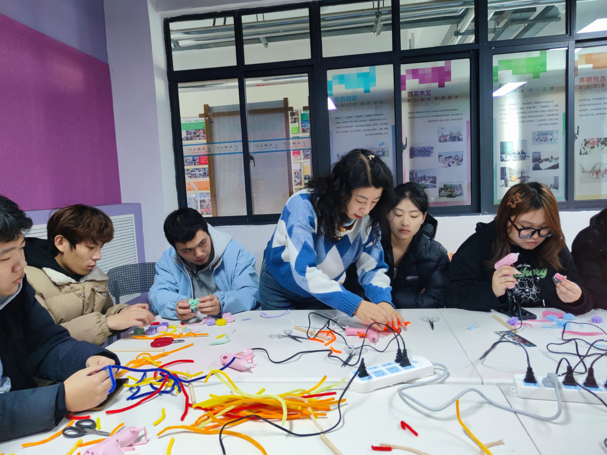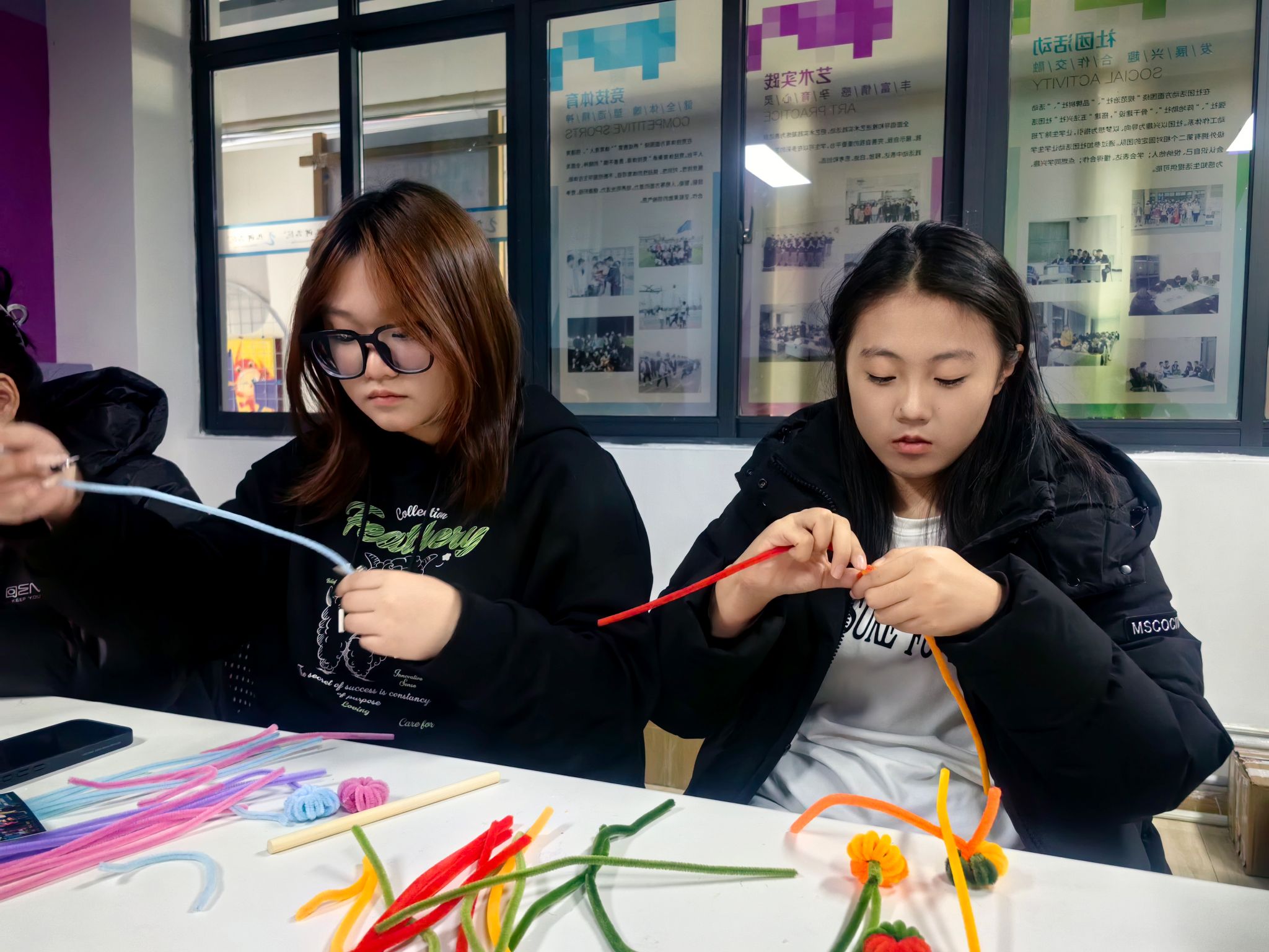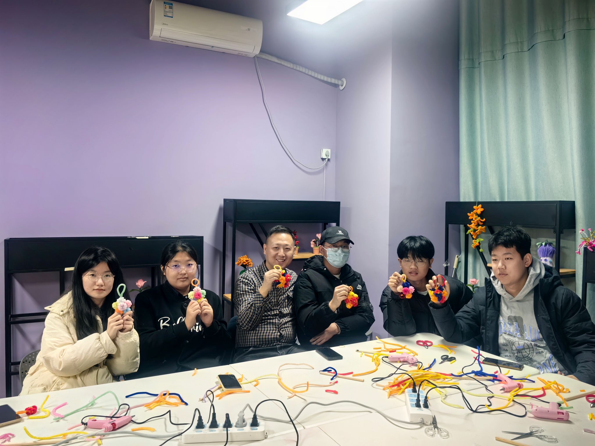 11月26日午后,两位异科导师与学生们携手走进九河书院扭动无限手作工坊,共同开启“七彩金桔迎新吉”创意手作活动。师生以扭扭棒为媒,用独特手法制作出别具一格的七彩小金桔挂件。