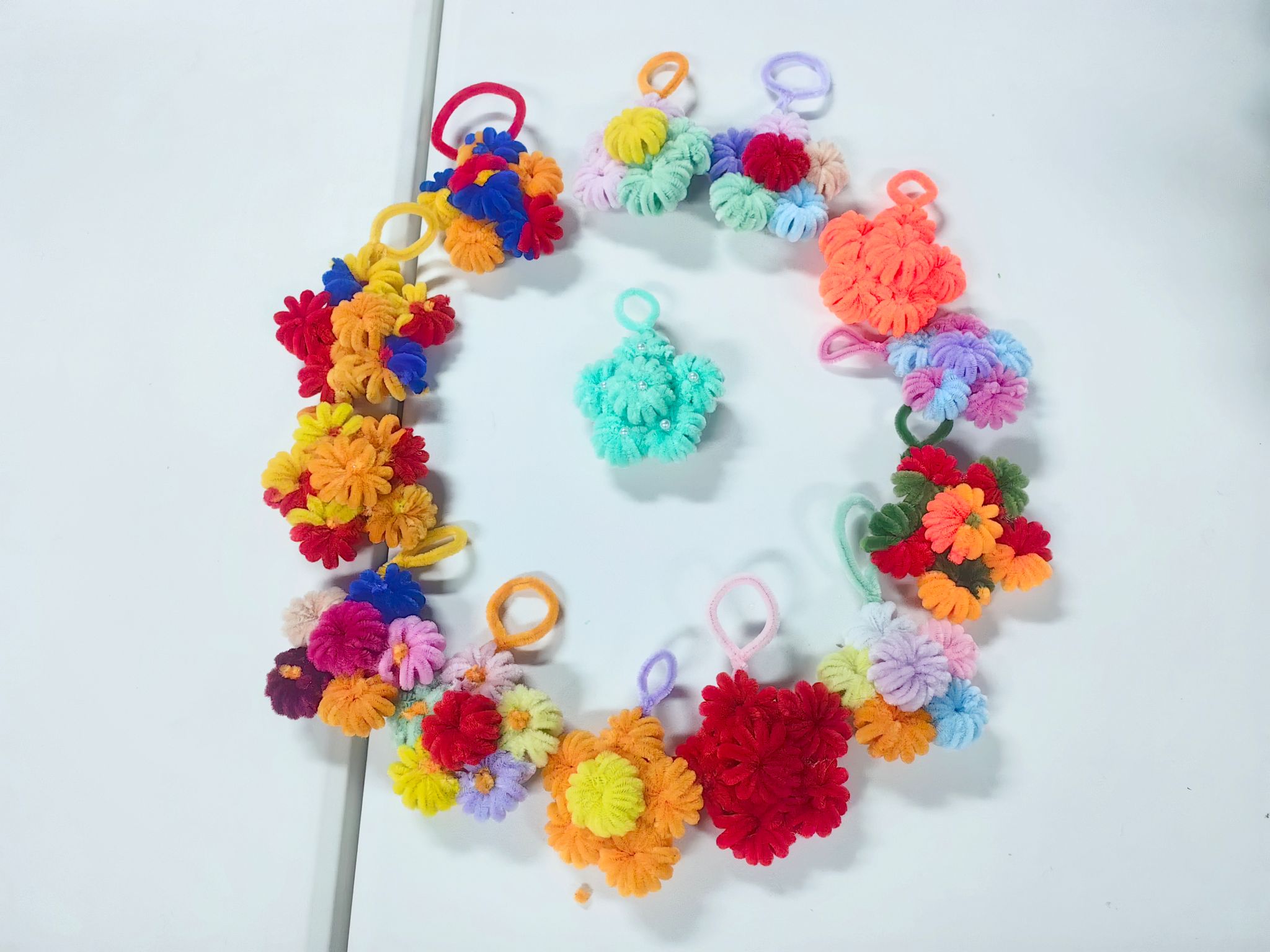 工坊内顿时化作创意的海洋。学生们精心挑选心仪的色彩,手指灵活地将扭扭棒缠绕成饱满的金桔造型。有的选择渐变色调,展现果实成熟的自然过程;有的尝试对比色搭配,创造出视觉冲击力强烈的现代感作品。七颗色彩缤纷的金桔在巧手下渐次成型,最后将七颗小金桔粘贴成独具美感的挂件。