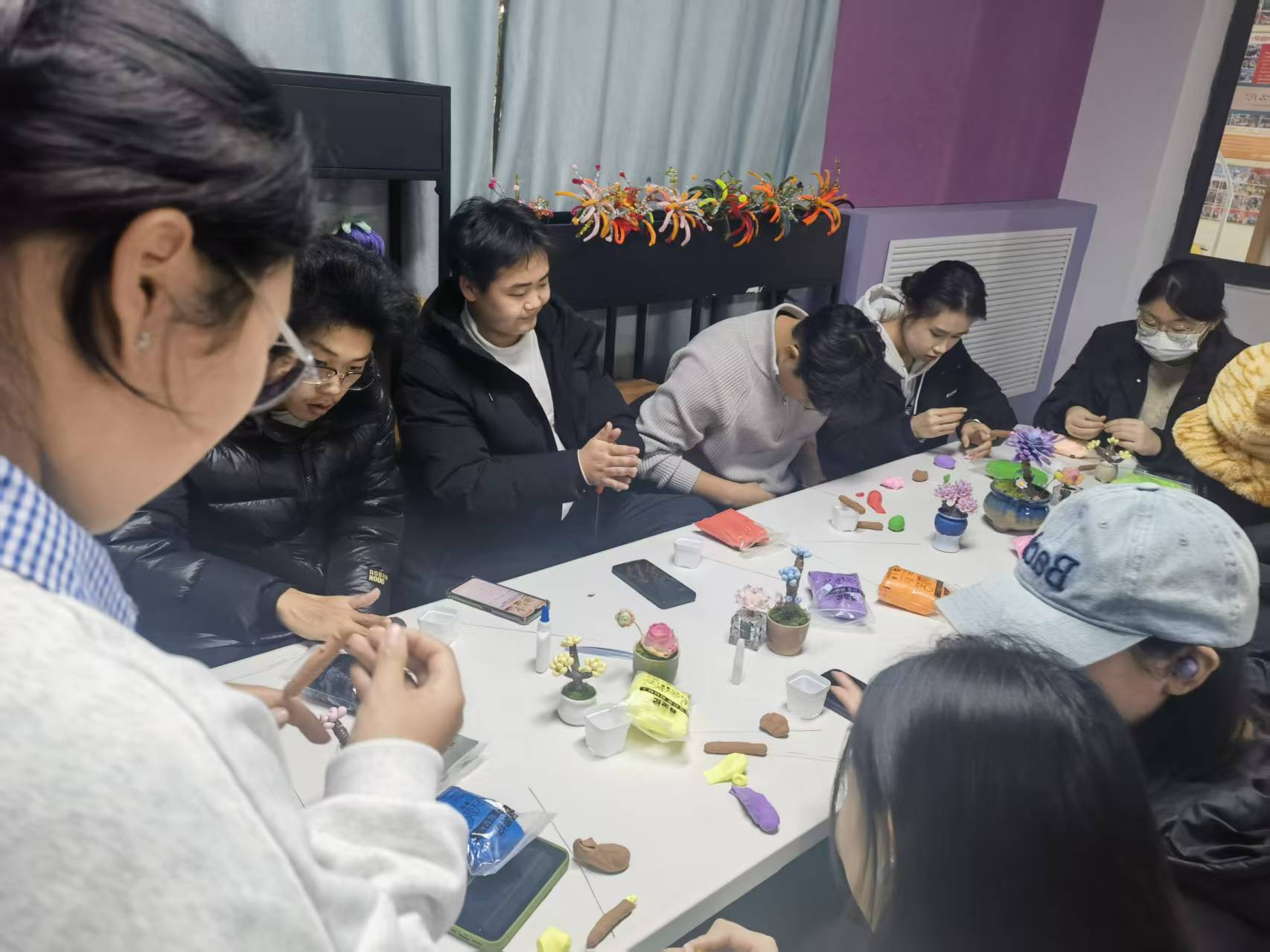 11月26日中午12时30分,在九河书院105室举办了“多肉手塑,趣造萌植”创意活动。本次活动由九河书院·多肉植物创意手塑工坊主办,旨在通过手作实践,引领学子们感受自然之美,体悟生命力量。活动特邀全生异科导师逯叶老师、李爽老师及他们的异科学生共同参与,现场气氛温馨而热烈。