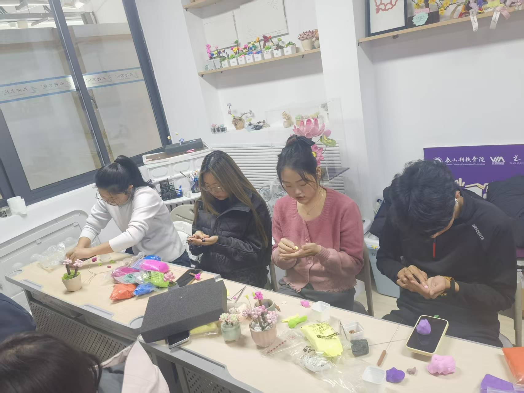 活动伊始,工坊项目指导老师郑栋赟首先分享了多肉植物的生命哲学。她阐释了多肉如何在干旱、贫瘠的逆境中蓄水扎根、顽强生存,并希望同学们能从这一株株“生命体”中,感悟到不畏艰难、坚韧不拔的精神品格,将其内化为个人成长的重要力量。她鼓励大家在接下来的手工创作中,将这份对生命韧性的敬意与思考,融入每一件独一无二的手塑作品之中。