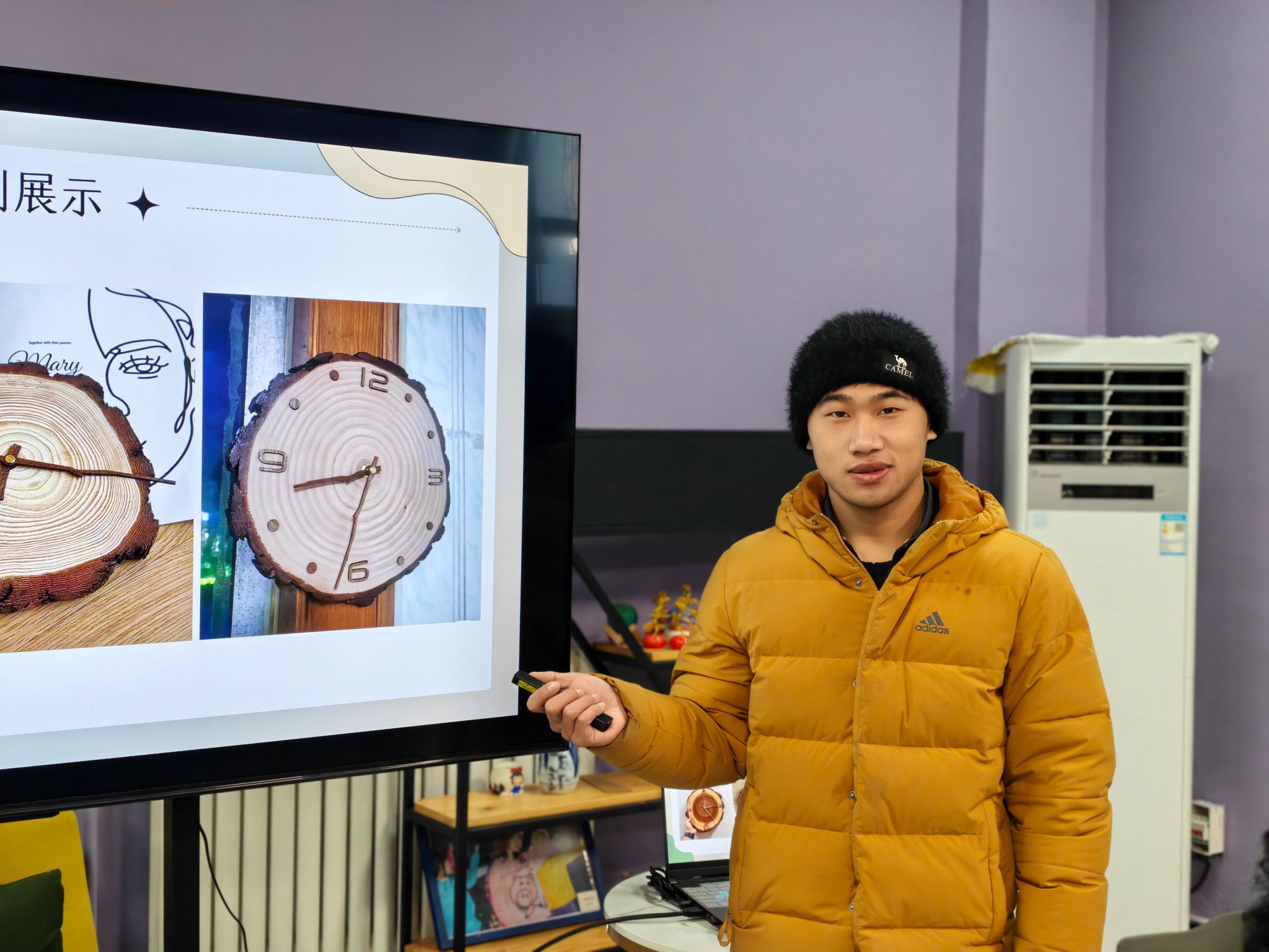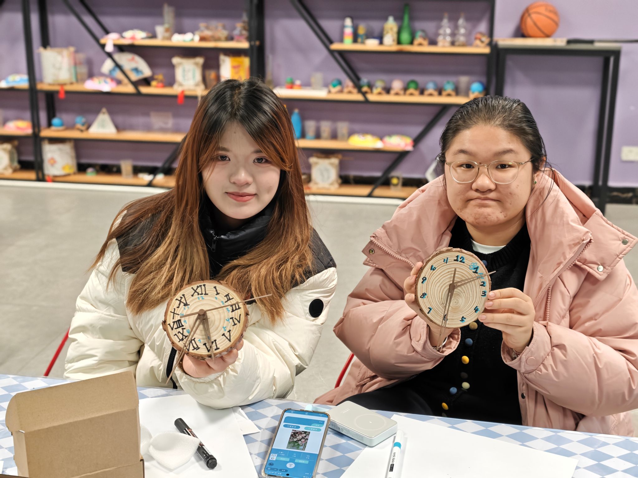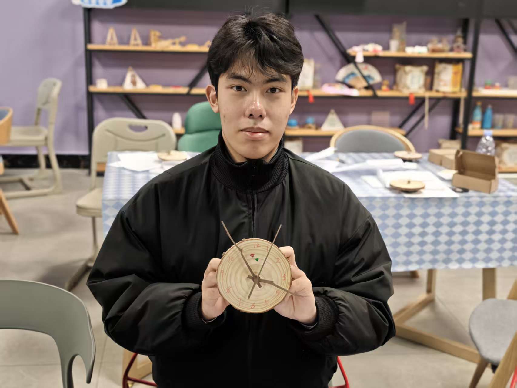 随着一个个精致的影时钟作品相继完成,活动进入互动分享环节。同学们纷纷展示自己的成果,分享制作过程中的心得体会。汶阳书院/建筑工程学院的郑齐原同学说道:“我这只亲手做的影时钟,藏着专属的回忆和温度。木板上的细微纹路,上色时不小心蹭到的小瑕疵,都成了它独有的“印记”。九河书院/淬炼商学院的丁允飞同学感慨:“完成后看着指针滴答转动,突然明白:就像木板独特的纹路一样,生活里的美好也需要慢慢雕琢,急不得也慌不得。”