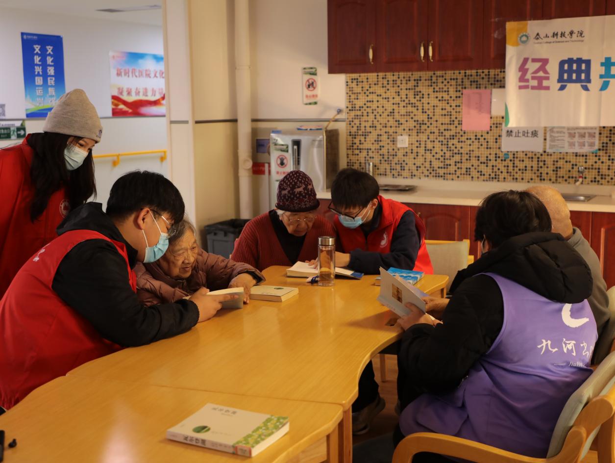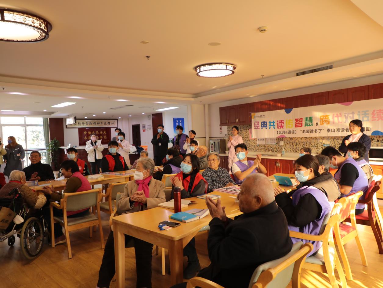 当岁月沉淀的故事碰撞鲜活的想法,一场老少共读的书香之约,总能戳中心里最软的地方。12月5日,通信工程学院联合九河书院打造的“老爱读书了”泰山阅读会在泰山医养中心暖心开启,爷爷奶奶们和青年志愿者围坐一堂,在书页翻动间拉近距离,回味过往的故事,仿似实现了一场年少时期的爷爷奶奶与当下志愿者的一场时空对话,相视而笑的瞬间,是老人们与年轻时候的自己又一次重逢。