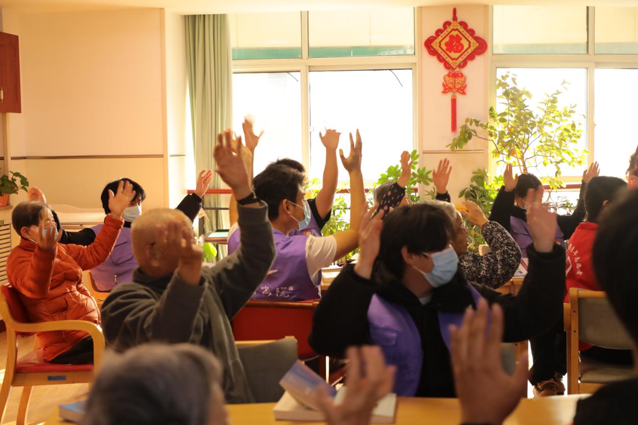 伴随着轻快的节奏,九河书院的董佳文正领着爷爷奶奶们一起做趣味手指操,“一二三四,跟着我动起来~”轻快的节奏里,爷爷奶奶们跟着抬手、弯腰,眼角的皱纹里都漾着笑,原本略带拘谨的氛围,在指尖的舞动与清脆的笑声中彻底消融。简单的互动后,大家并肩站到了台前。书卷轴轻轻打开,掌声里,没人刻意强调这是“启动仪式”,只觉得像是一场老朋友聚会,终于拉开了序幕。