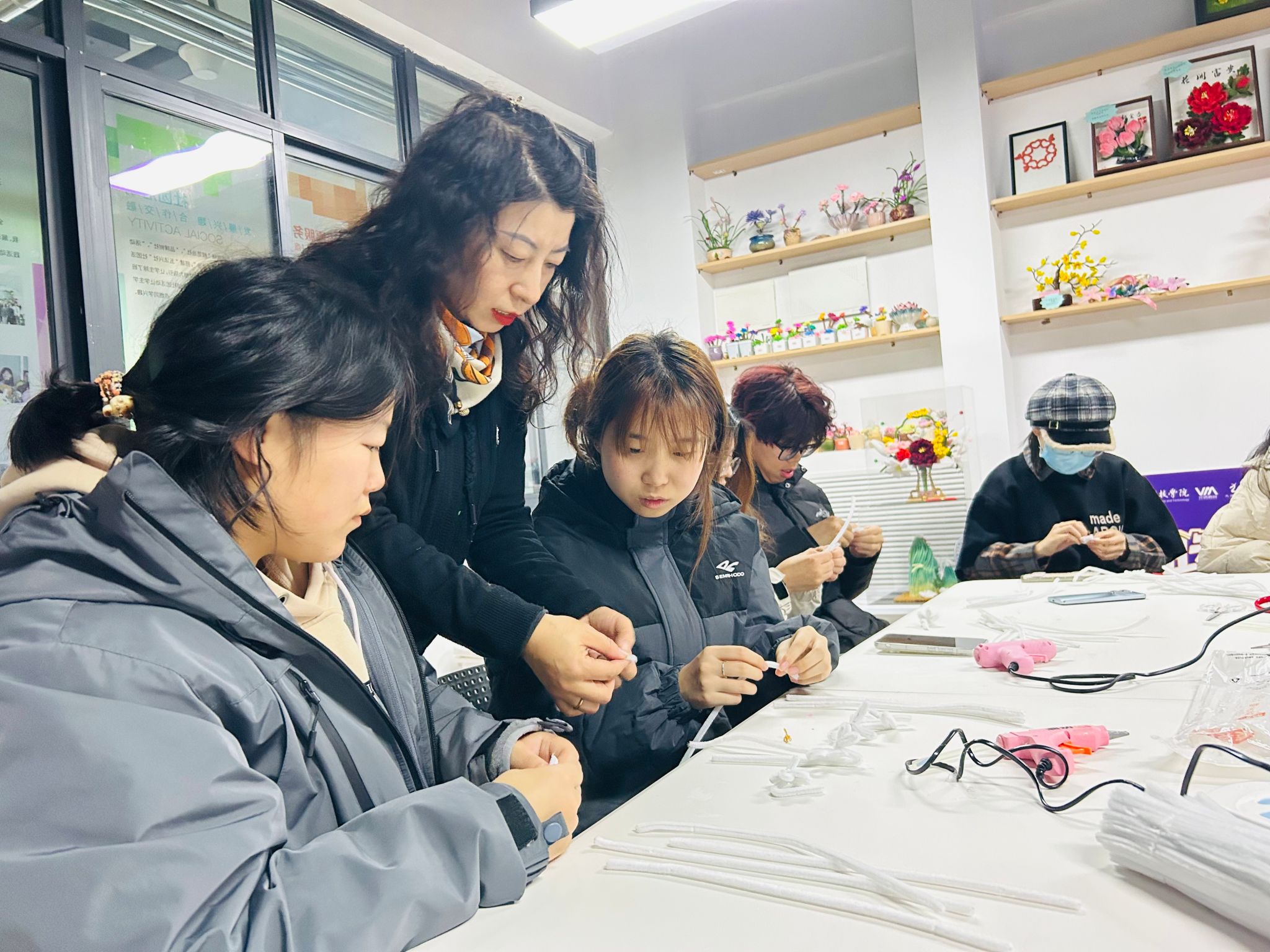 当冬日的静谧与指尖的创造力相逢,一场以雪花为名的艺术之旅在九河书院温情铺展。近日,作为“探掌柜养成计划”的特色环节,扭动无限手作工坊第7期“异”起扭扭棒活动如期举行。本期活动以“冬飞雪”为主题,全生异科导师相约他们的异科学生一同走进寻觅灵感屋(105),用扭扭棒编织属于冬日的独特记忆,让晶莹的雪花在掌心永久绽放。