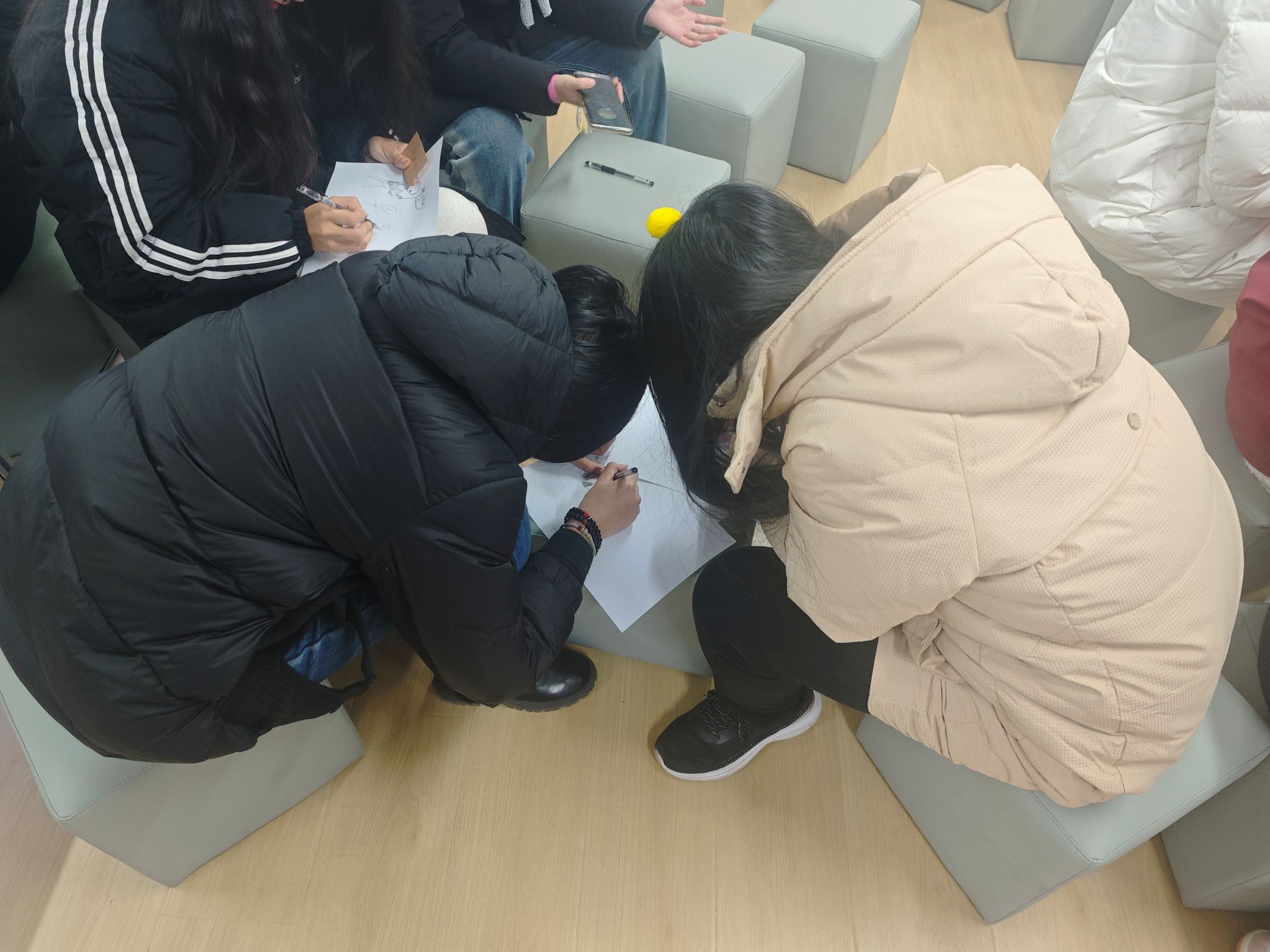 随后的“你画我猜”环节将活动推向高潮。各小组临时分为“绘画组”与“猜题组”,每组领取20张职业卡及20张A4纸。绘画组员充分发挥想象力,用简洁线条勾勒职业特征,完成一幅画作后,便将职业卡片与画作一同交给裁判,由裁判转交给猜题组。为保证公平,猜题环节要求组员依次作答,禁止齐声提示。裁判组实时统计答题正确率,最终按正确数量排名加分,随着主持人的一声令下,瞬间拉开了比赛的帷幕。