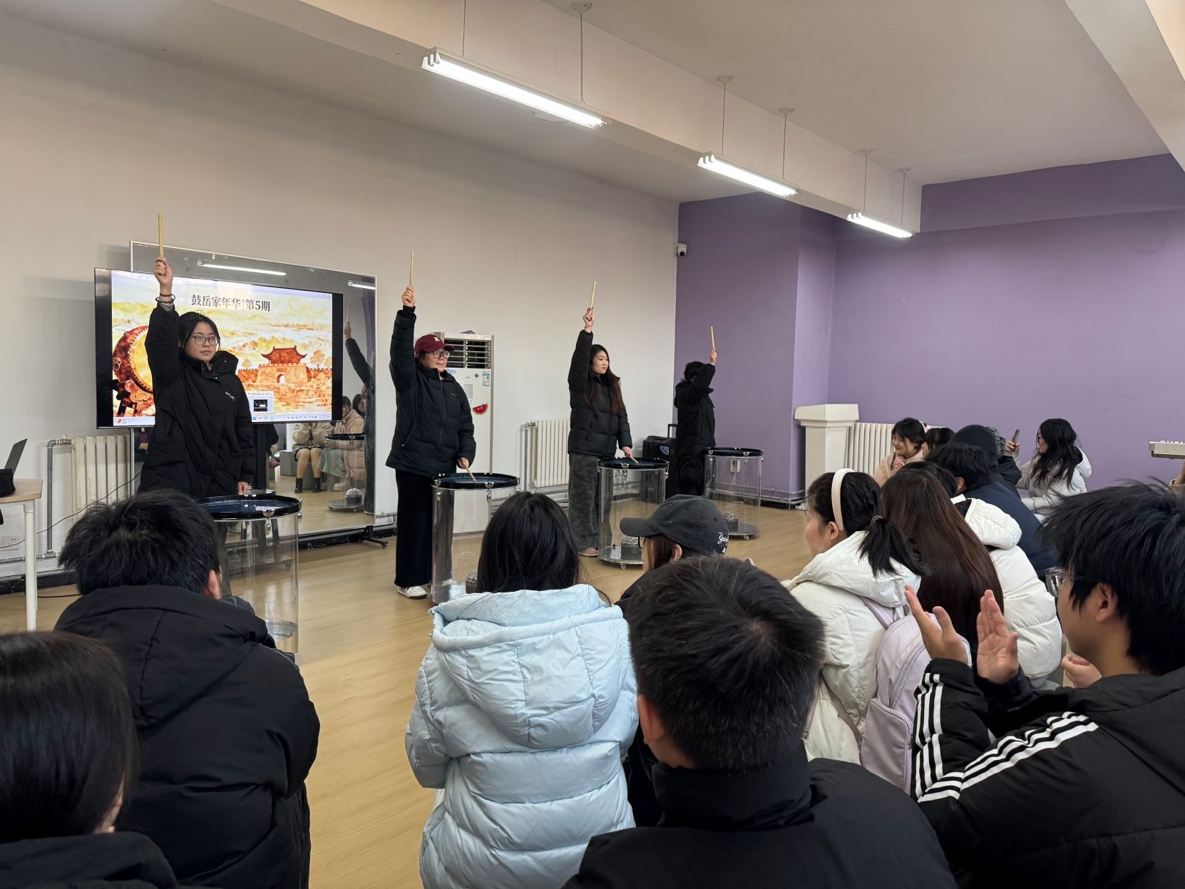 12月26日下午,九河书院112教室的门缝里,传出阵阵不同于往日的鼓声——它既有传统的沉稳铿锵,又交织着青春的跃动韵律。推开门,“鼓岳家年华”第五期活动现场,一场关于“非遗中国鼓”的传承与创新对话,正随着鼓点蓬勃展开。