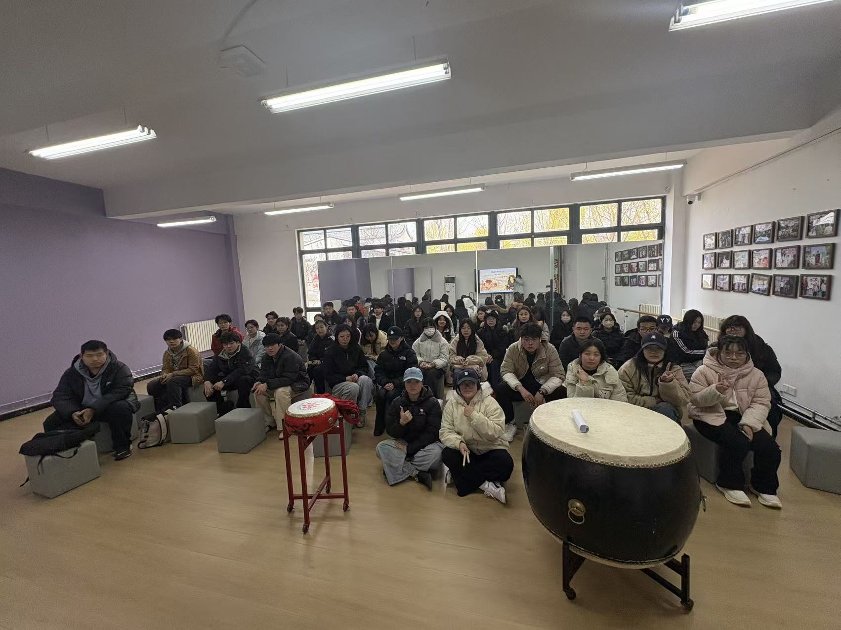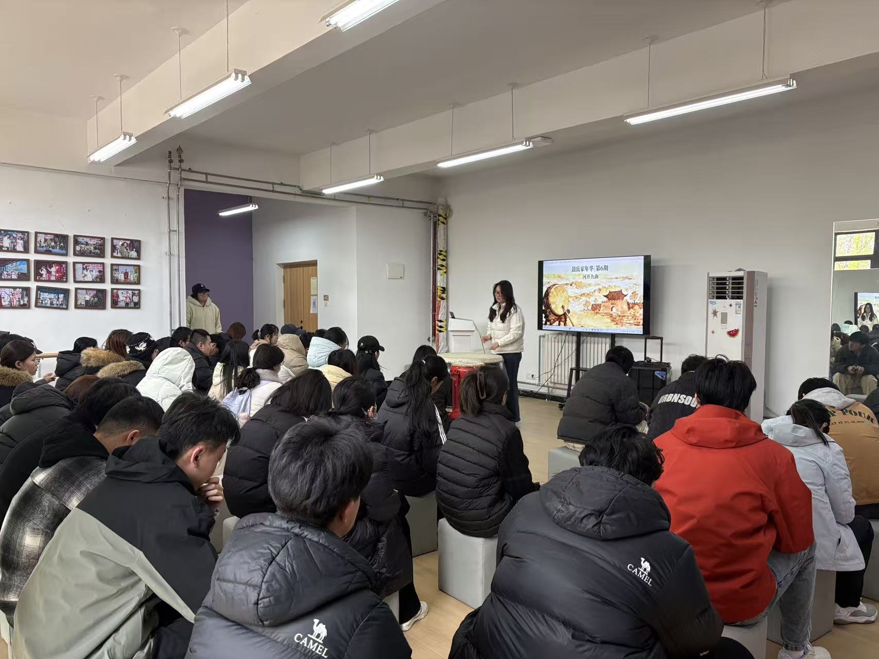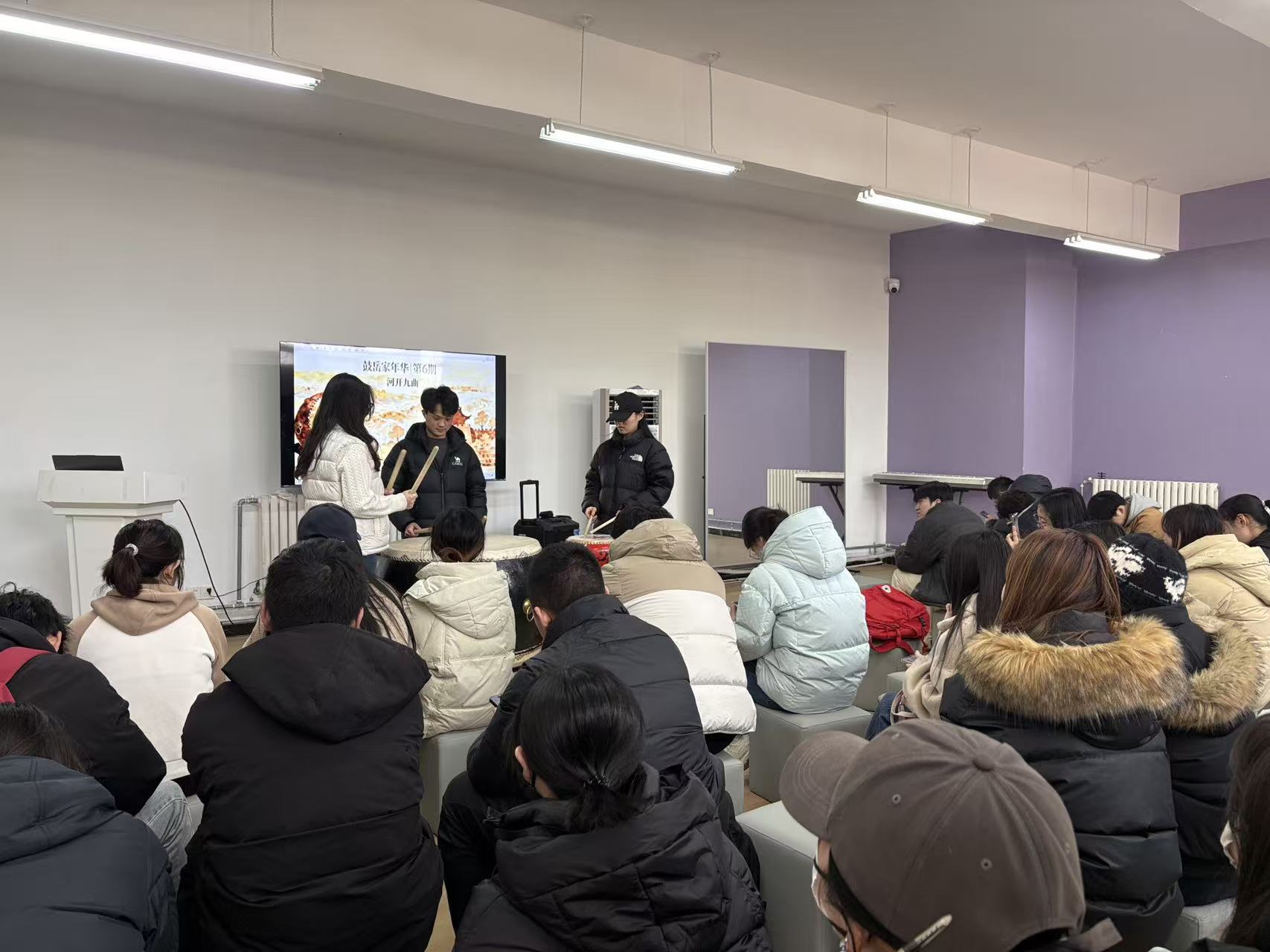 3月18日下午两点,九河书院112外已渐次响起欢声笑语。距离活动正式开始还有半小时,同学们便陆陆续续推门而入,人群中格外醒目的是一张张熟悉的面孔——他们都是上学期岳儿鼓工坊的忠实参与者,带着对鼓乐的热忱,赴一场新学期的第一面,共续上学期未竟的鼓乐之约。两点半,随着铿锵鼓点准时响起,全新一期“鼓岳家年华”活动热力启幕!本次活动以“河开九曲”为核心,将黄河文化与传统鼓乐深度融合,让千年文脉在书院与青春碰撞出别样火花,成为传统文化与当代青年对话的生动课堂。