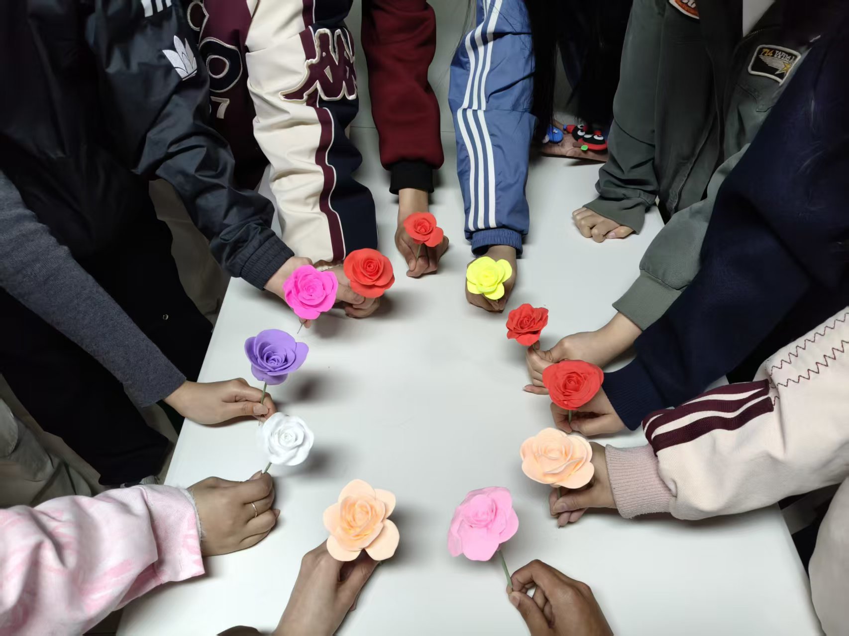 活动尾声,学子们纷纷展示亲手完成的作品,指尖绽放的玫瑰萌趣相映成趣,成为现场一道靓丽的风景。大家相互交流创作心得,分享手作过程中的感悟,现场氛围温馨而热烈。此次黏土玫瑰主题活动,不仅是一次妙趣横生的手工创作体验,更是一场融合劳动教育、生命教育与美育的心灵之旅。它让学子们在忙碌的学习节奏中慢下来,在捏塑黏土的过程中沉淀心境、亲近自然,在创作中感悟植物的生命力量,涵养积极向上的精神风貌。