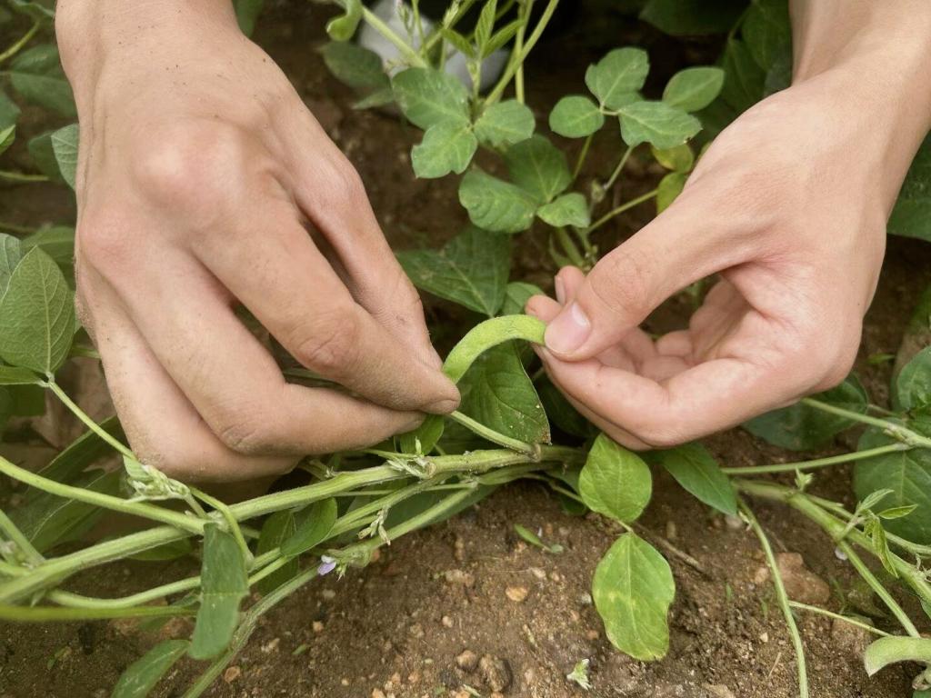 实践的最后一项任务是虫害情况复查。成员们再次俯身田间,锐利的目光仔细扫过一片片翠绿的豆叶,手指熟练地翻动叶片两面进行搜寻。“这几株被虫咬了!”许业昊指着一片叶子边缘不规则的缺口,迅速记录下来。这些一线的观察发现,为评估当前豆田健康状况提供了珍贵资料。