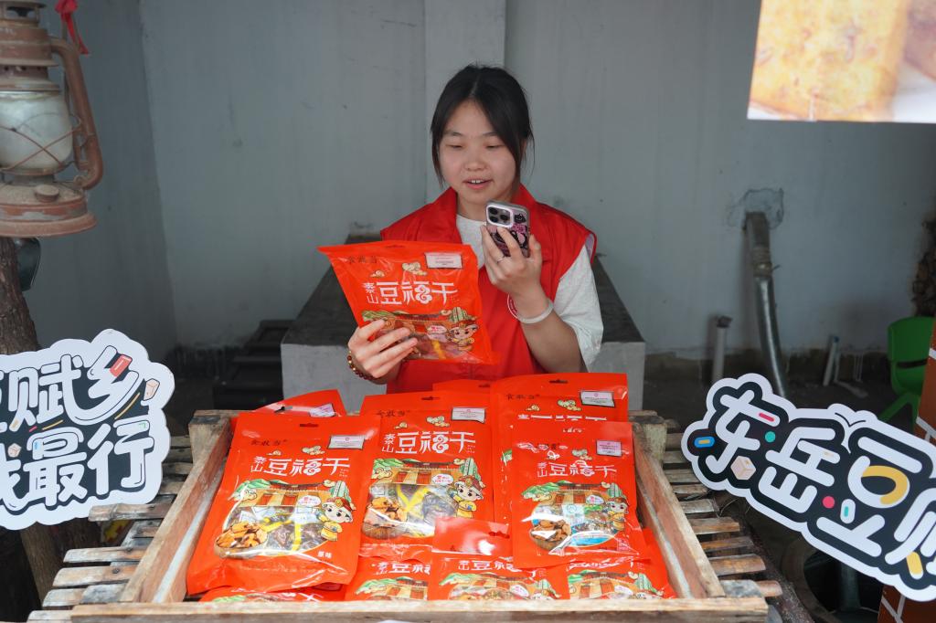此前,实践团联合泰山福文化传播有限公司推出了泰山“豆福干”文创美食。充分借助互联网传播优势为产品赋能,不断提升附加值。直播时,冀宛欣细致地向网友们介绍产品,还针对配料构成、营养成分等展开详细讲解。直播间的用户们对这款既美味健康又蕴含文化韵味的产品兴趣浓厚,纷纷留言想要下单品尝。就这样,原本普普通通的豆腐,摇身一变成为能带动千家万户增收致富的好产品。