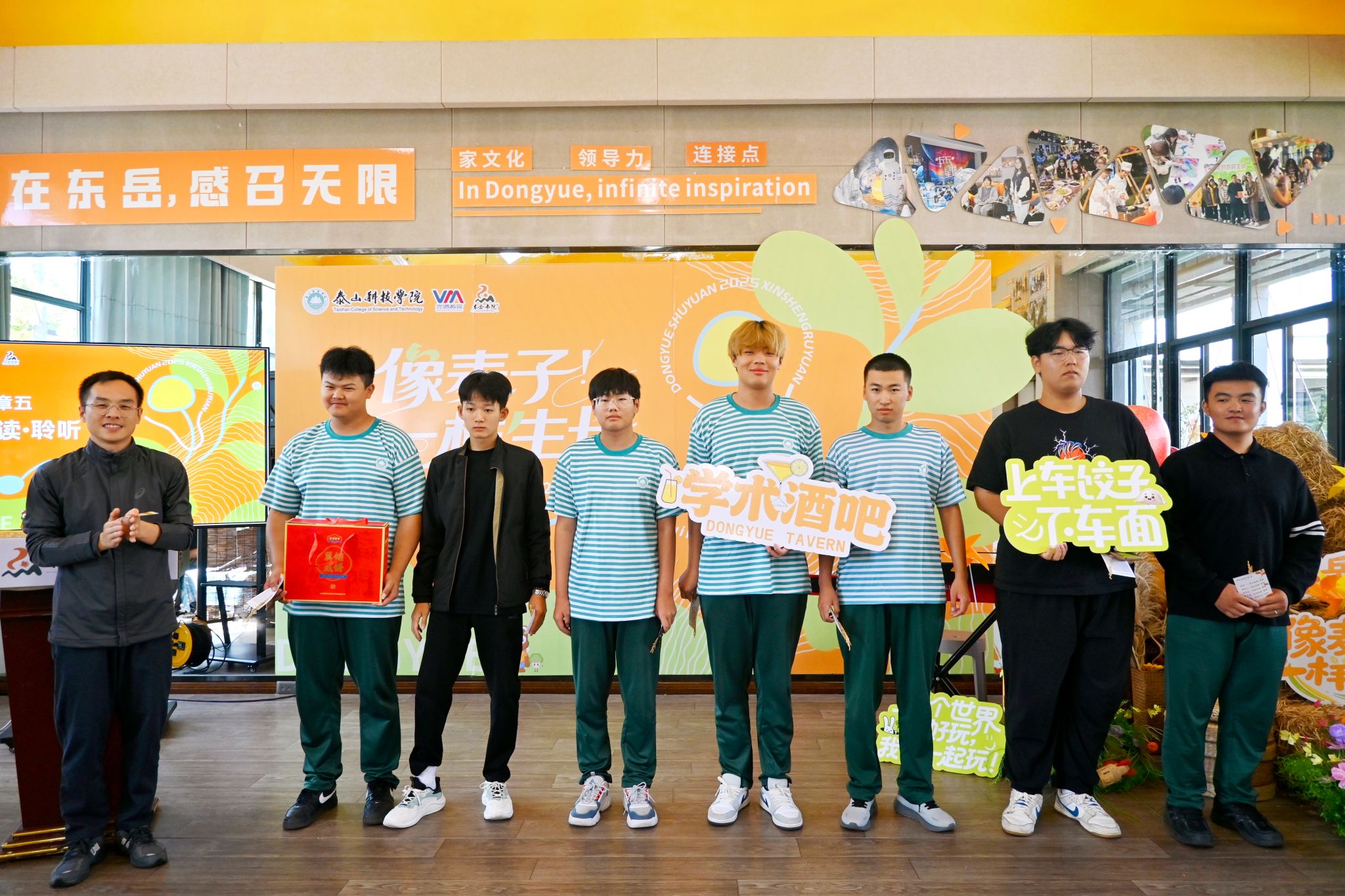 惊喜环节中,白部长随机抽取幸运新生,送出东岳面馆“入院面”、东岳酒馆“麦浪”鸡尾酒体验券,更有东岳书院专属惊喜——泰山非遗美食“煎饼大礼包”,邀请新生感受书院生活的温暖滋味。