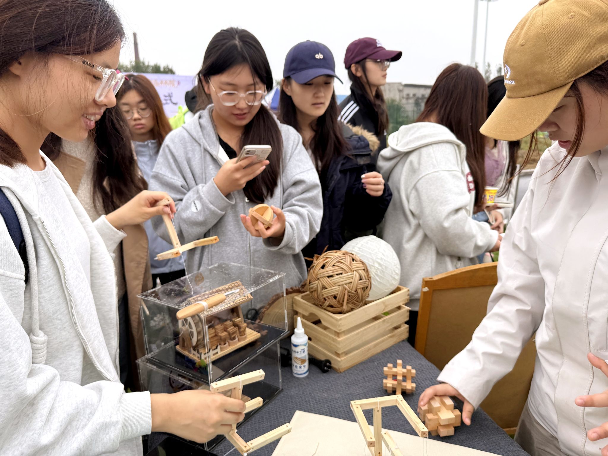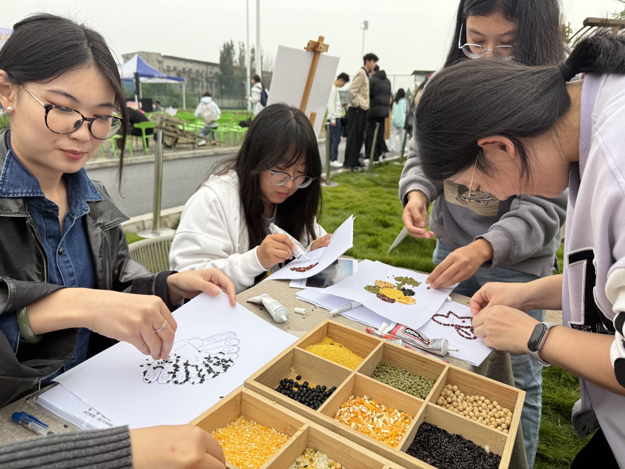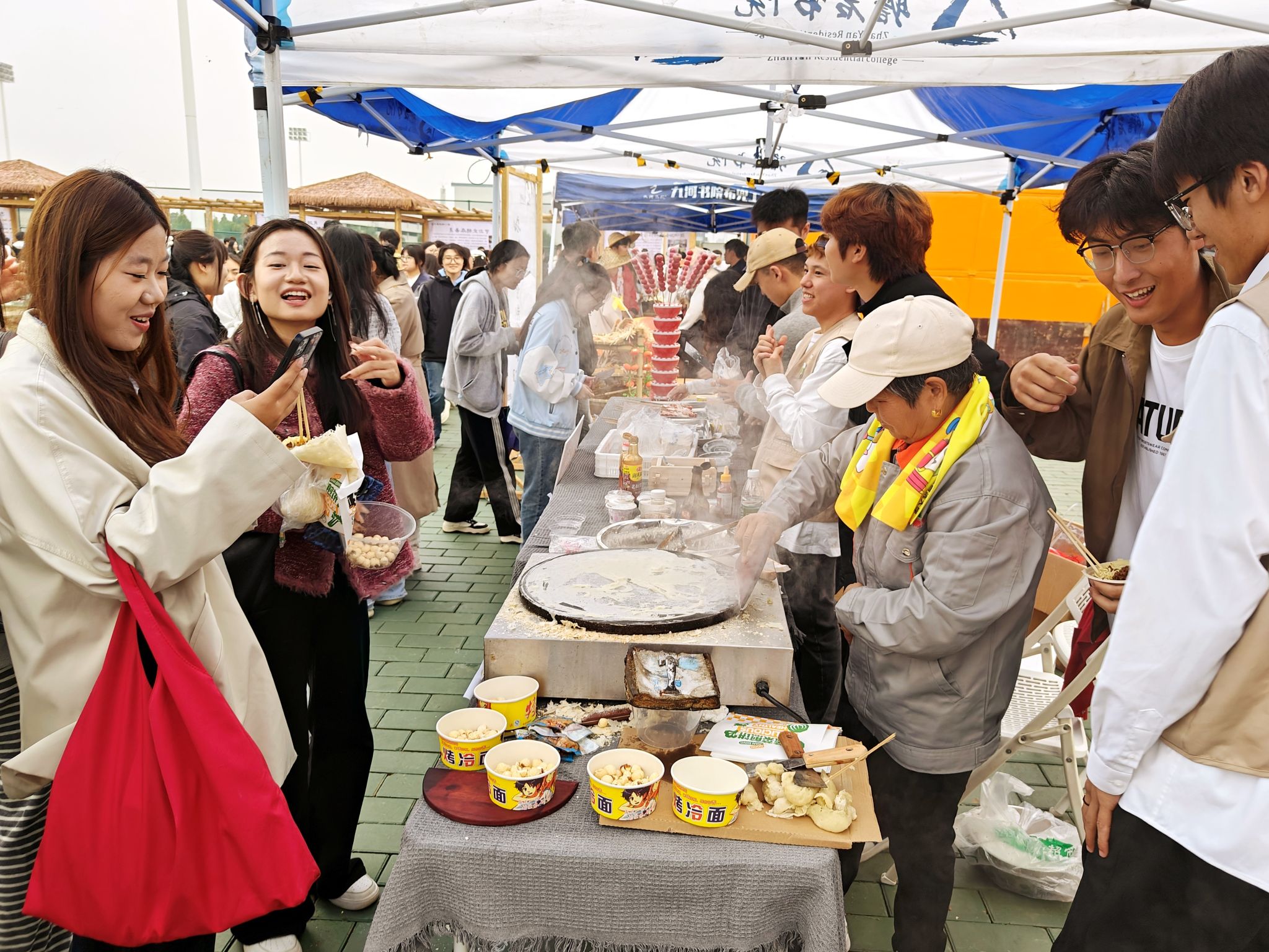 农耕美食区:爆米花焦香、煎饼滋滋声、烤地瓜甜香扑鼻,师生亲手制作美食,感受“从田间到餐桌”的乐趣。