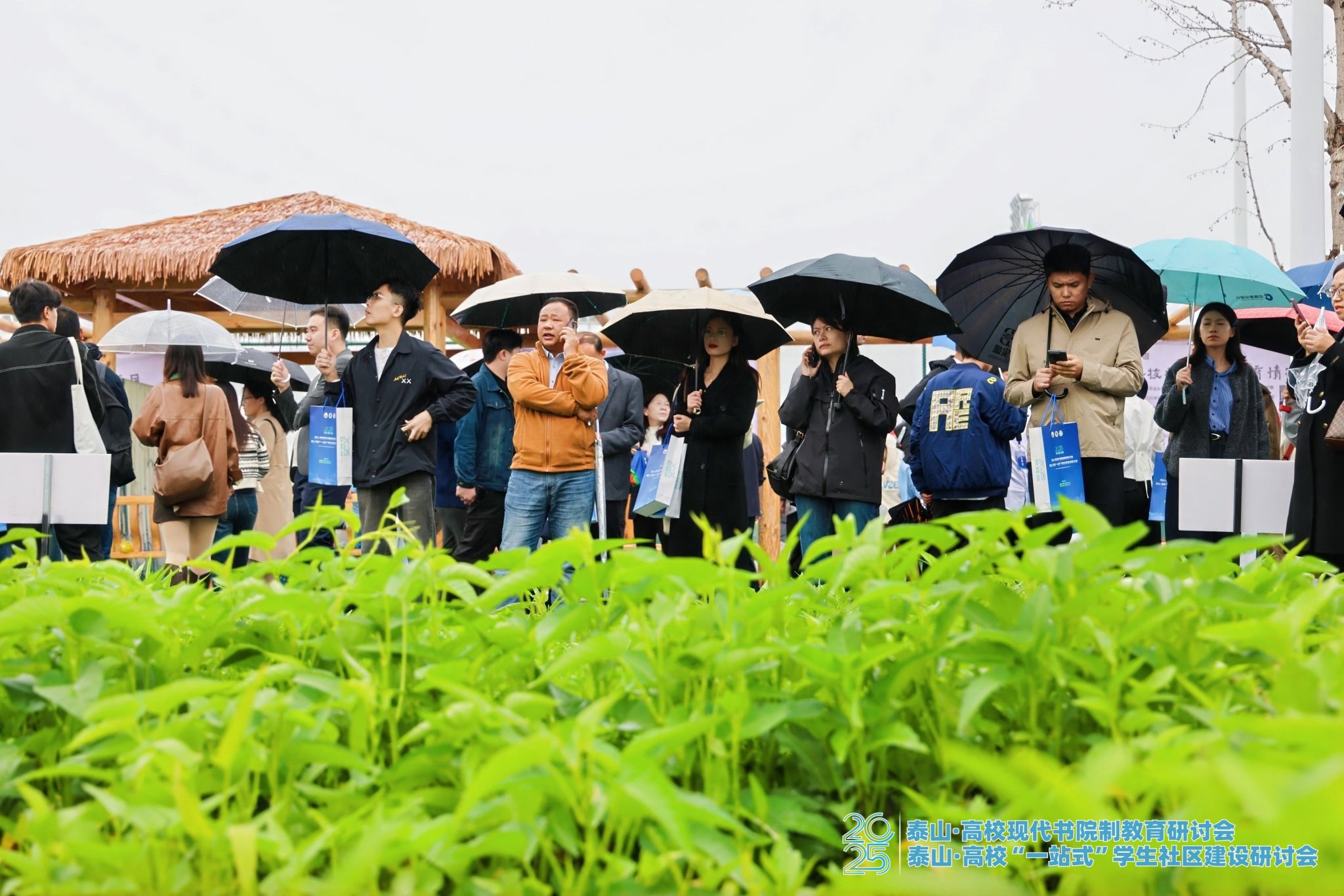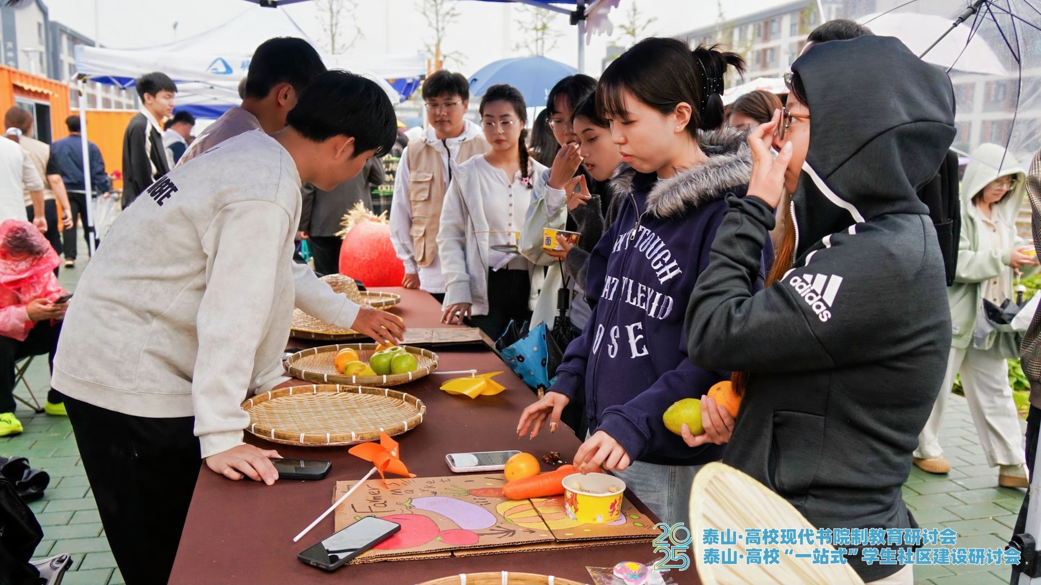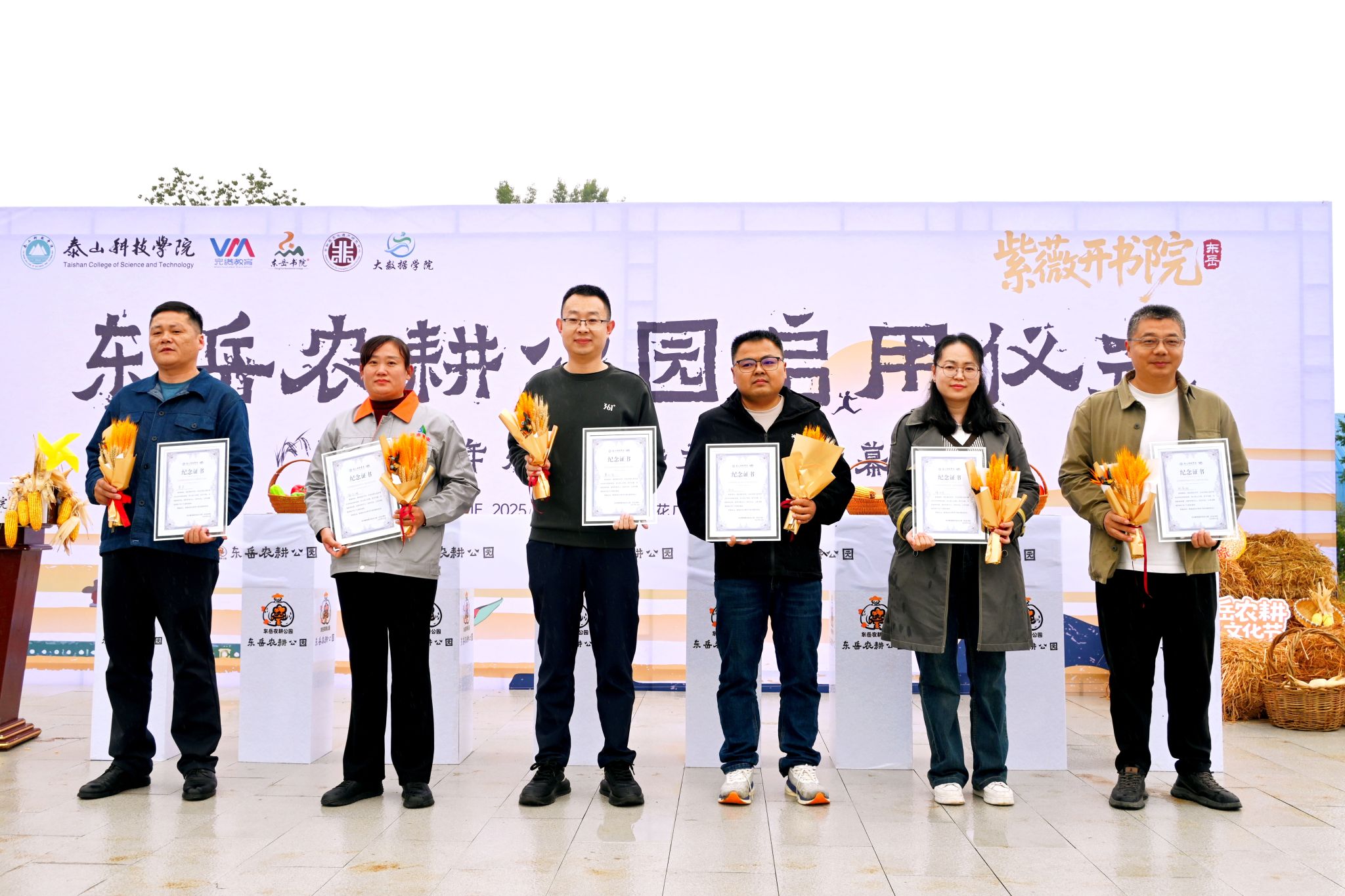 10月15日14:00,由东岳书院、非物质文化遗产研究中心、大数据学院联合举办的“紫薇开书院”东岳农耕公园启用仪式暨2025年东岳农耕文化节开幕式于东岳农耕公园正式启动。泰安市岱岳区团委副书记解博闻、山东农业大学副教授高国金、岱岳区青年志愿者协会会长齐成成、岱岳区政协委员王小刚,泰山科技学院东岳书院名誉院长张振笋、学生工作处处长王焱及师生代表等共计2000余人,伴随习习细雨,相聚在学校全新劳动育人的“田间地头”,共庆丰收。