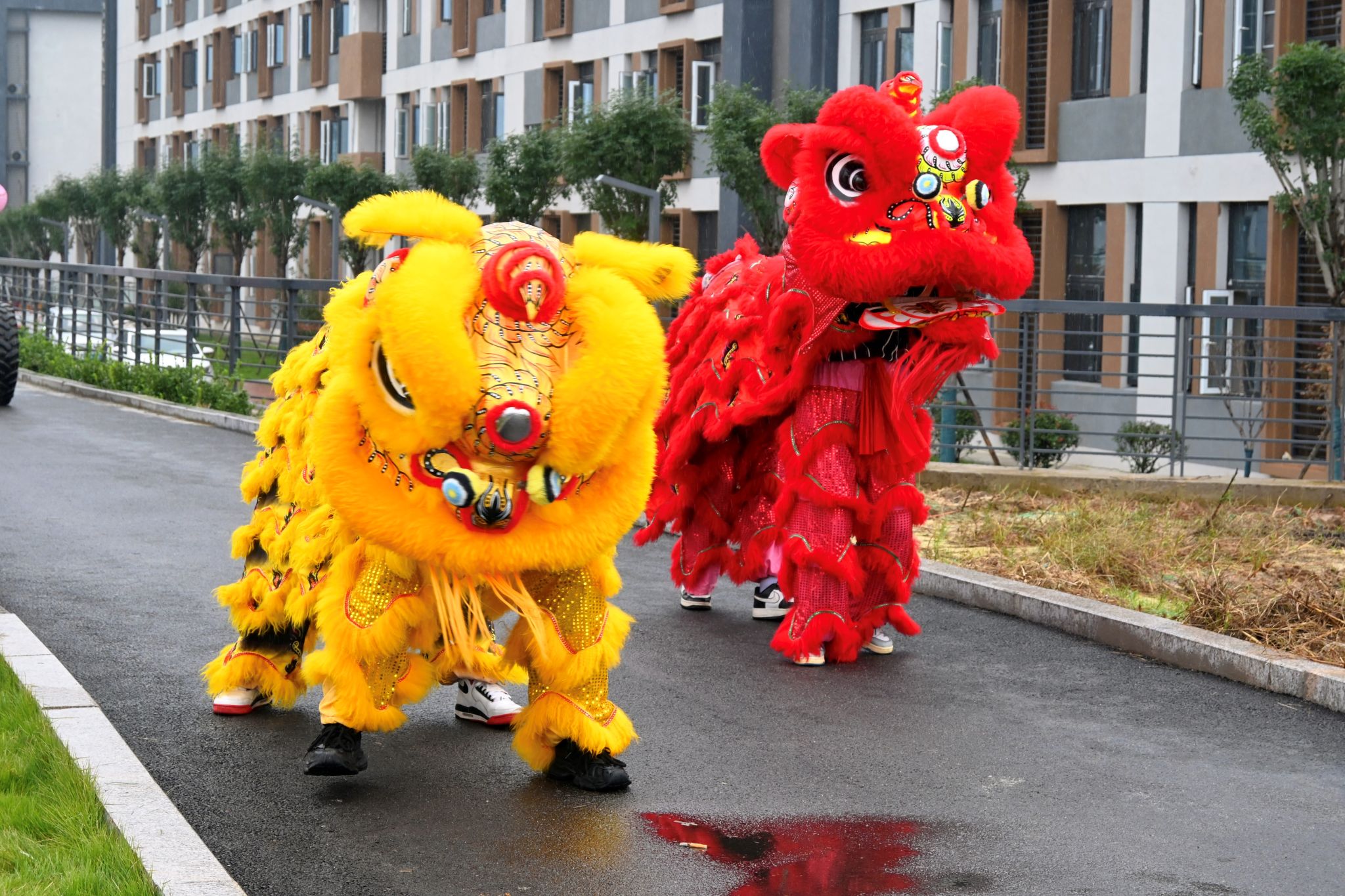 伴随着《我的祖国》悠扬旋律,敢当舞狮工坊的同学们跃动入场,抖擞的金色狮鬃与铿锵鼓点交织,瞬间点燃全场热情。随后,“丰收花车组”缓缓驶入——东岳书院发展导师路澳征驾驶拖拉机,载着禾下乐坊指导老师李伟与智能工程学院/育英书院学生庄家琛,歌声与吉他声相融,传递着开园的喜悦;“后勤保障组”的工勤与保洁人员肩扛沾满新泥的扫把与工具,展现劳动底色;“志愿服务组”中,“耕遇一方”与“数智耕园”两支志愿团队的30名同学高举红旗,彰显书院学子传承农耕文化的热忱;最后入场的是“共享耕种主理人组”,30位师生手持农具,以实践者与守护者的身份,共同迎接这片土地的希望。