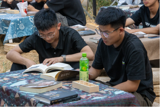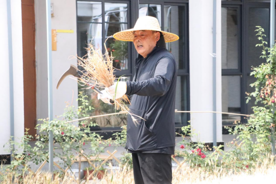麦田里刚刚施过肥,地里的杂草也来凑凑热闹,好在书院的一众师成为“守护神”。李仁所老师(东岳书院/大数据学院全生异科导师)是位头发花白的老教授,看上去比段老师更为资深。他与我们一同躬身拔草的身影,让人难以联想到他教授数学的身份。未曾想,这片田地竟成了我与最不喜欢的数学之间意外的联结。刘东老师(东岳书院/淬炼商学院全生异科导师)常常在田埂上驻足张望,心系麦苗长势。当指尖捻开麦穗,露出饱满的籽粒,那份收获的喜悦便驱散了酷暑的煎熬,一切都显得格外值得。宏盛农场的王荣也加入了守护的行列,一天来三趟细心叮咛,“结实时候多浇水要防住鸟,不要熟过了……”劳动教育从来不是空洞的说教,它让师生躬身入局,在汗水中真切体味每一粒粮食背后的艰辛。