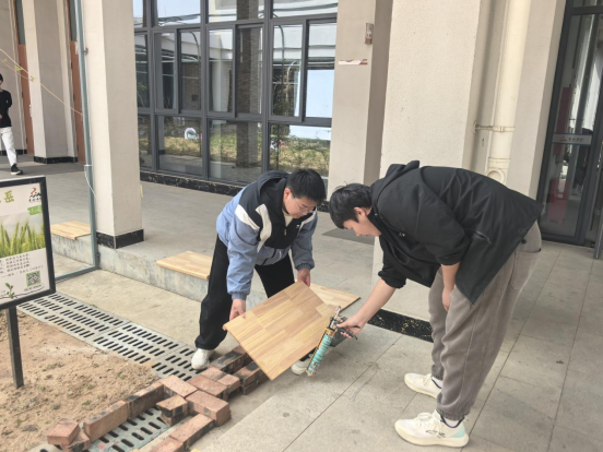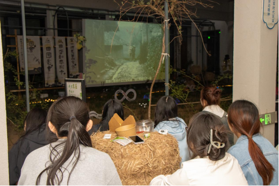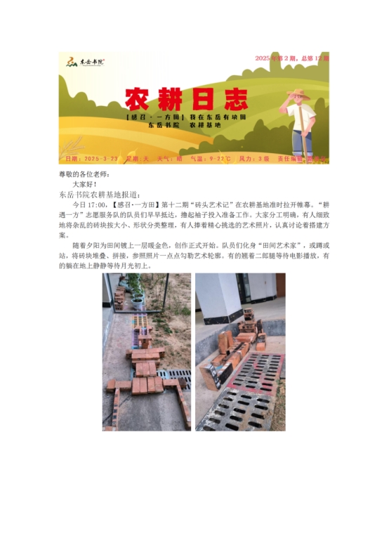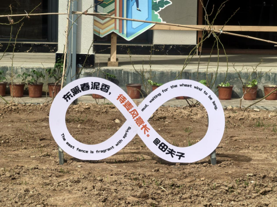 麦子成长的过程中也收获艺术的熏陶,田间的砖头艺术悄然铺展,散落的砖块化身艺术品,静静卧在地头,跷着二郎腿也在“观看”电影。聆听电影评论中心于子晨老师解读《那山那人那狗》,父子间流淌的温情,连这砖石构筑的“心”也为之融化。艺术需要守护,篱笆围栏正缓缓圈起这片天地。恰逢东岳书院室内装修,室外自然也不容错过。路过的同学笑言:“看来麦子快熟了,都保护起来了。”这低矮的栅栏,效果倒是立竿见影。毕业季总是交织着收获的喜悦与离别的怅惘。在镰刀挥向麦秆的前夕,田园摄影记为即将远行的学子定格青春身影,也为这片承载记忆的金色麦浪,镌刻下最后的深情绝唱。