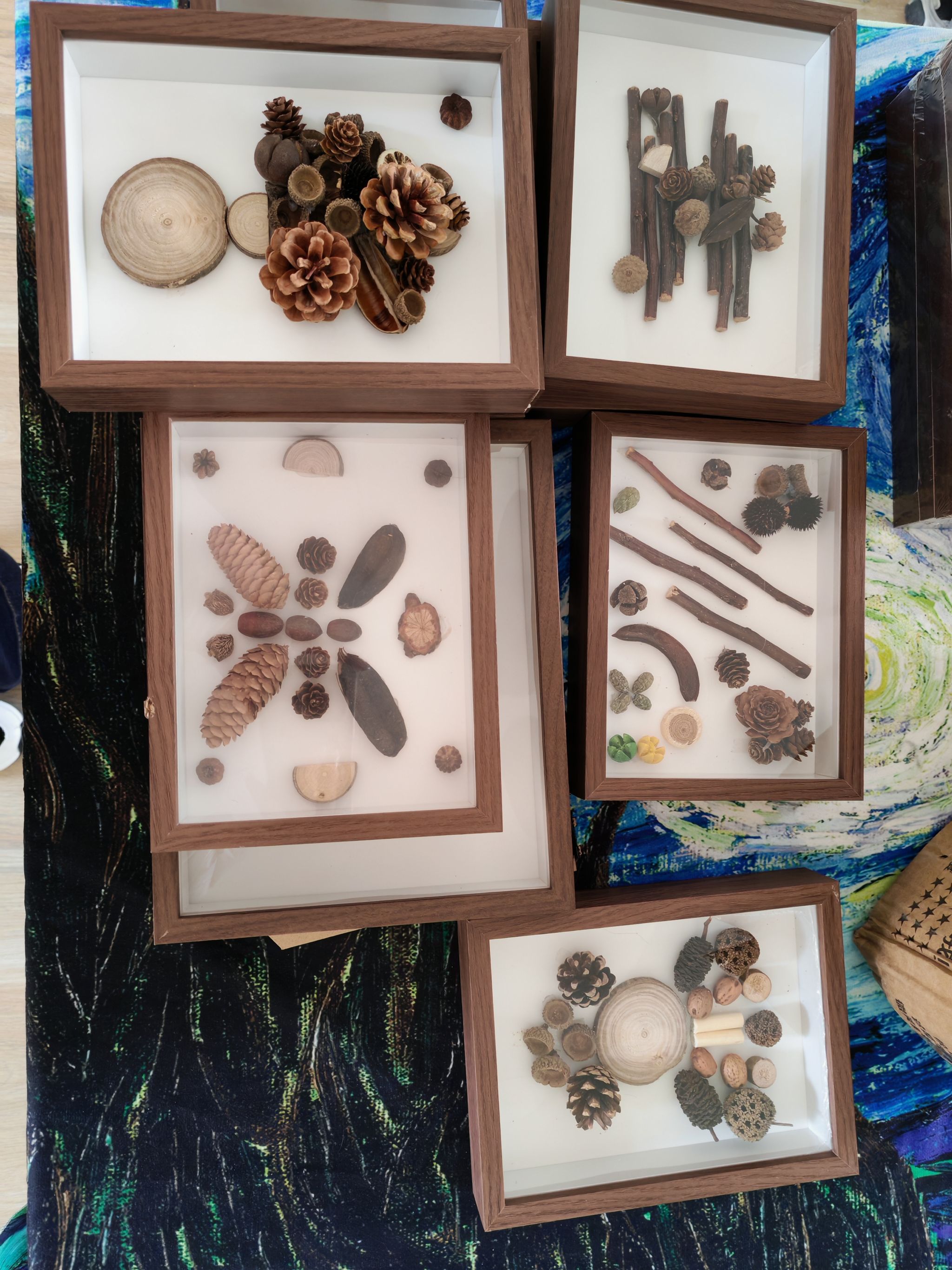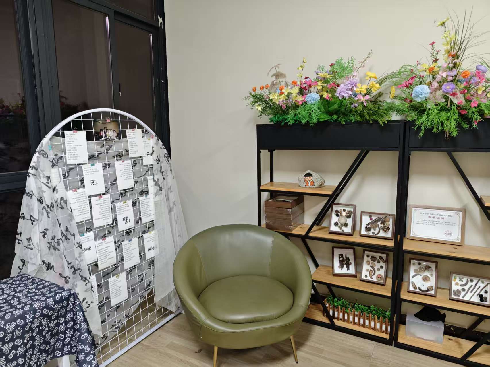 有的同学选择在木片上刻下喜欢的章句,用热熔胶枪固定在相框边缘;有的用植物装饰包里的干花拼贴出“禾苗”“书本”的形状,搭配手写的拼贴诗;还有的用马克笔在相框内侧写下自己的感悟,再嵌入树皮画——每一个相框都独一无二,都是同学们对“耕读”精神的可视化表达。