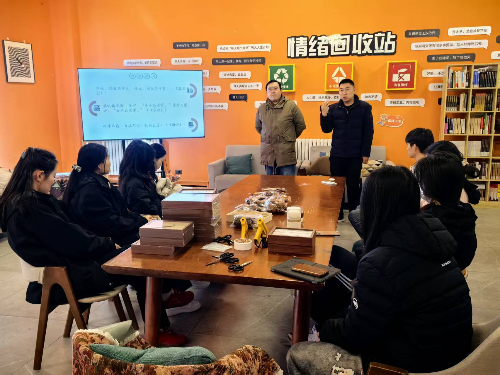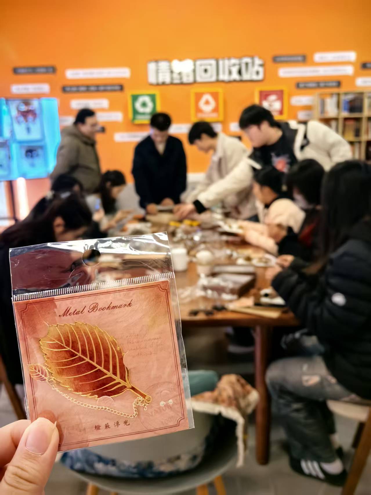 活动伊始,工作人员早已在入口处备好工坊准备的“耕读手札”——一套设计简约的中国风书签。同学们签到时逐一领取,指尖触碰书签上的叶脉纹路,仿佛提前与“耕读”主题建立了联结。“拿到书签就觉得很有仪式感,好像一下子从日常的学习节奏里抽离出来,准备好走进典籍里的农耕世界了。”参与活动的刘京京\行政管理学院\敢当书院同学笑着说。