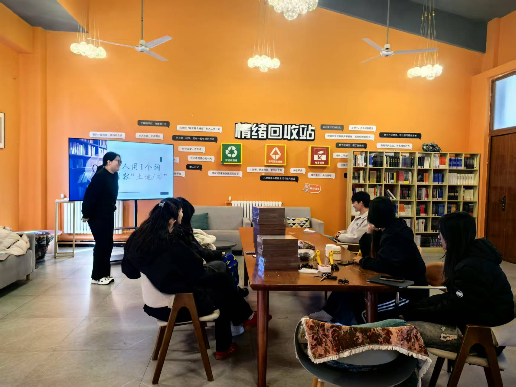 随后的破冰环节,每人用一个词形容“土地/书”,现场瞬间热闹起来。“土地是根”“书是光”“土地是记忆的容器”“书是跨越时空的对话”……简短的词语里,藏着同学们对自然与典籍的独特理解,也让原本陌生的彼此,因共同的文化话题渐渐靠近。