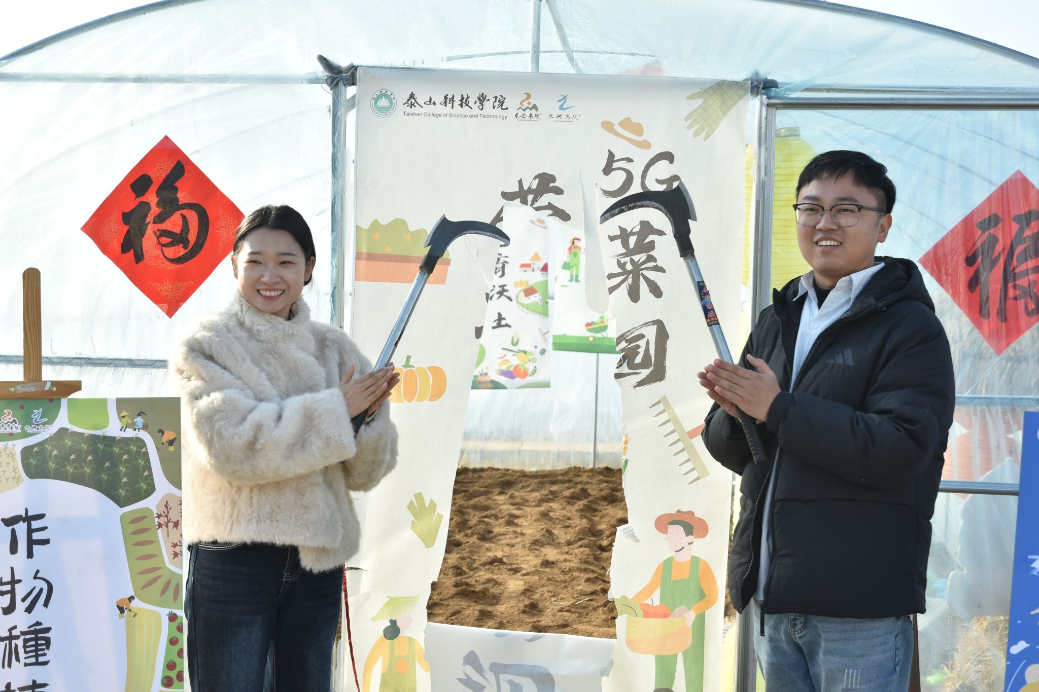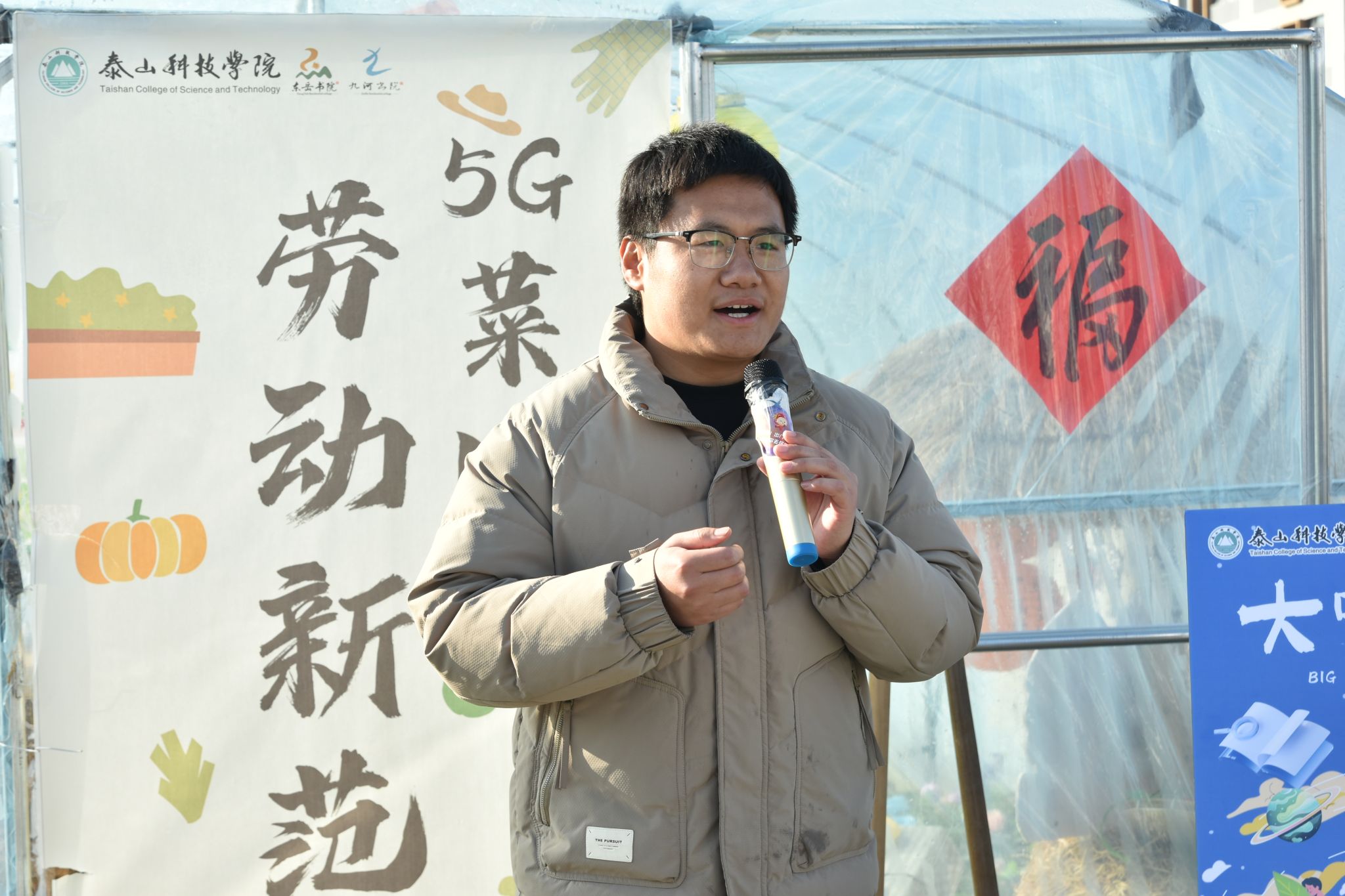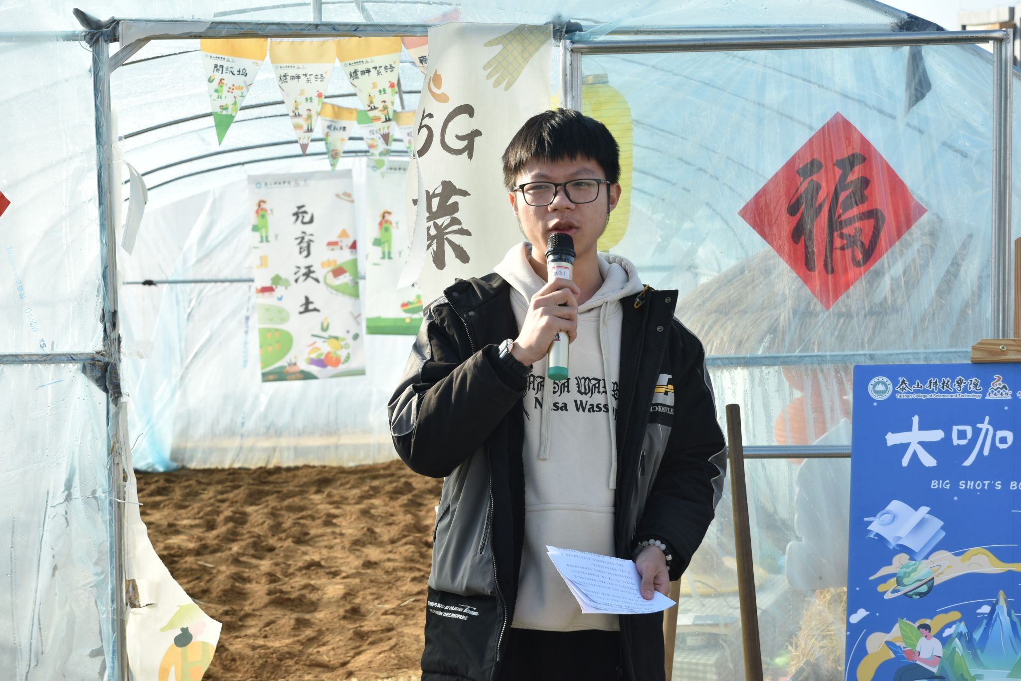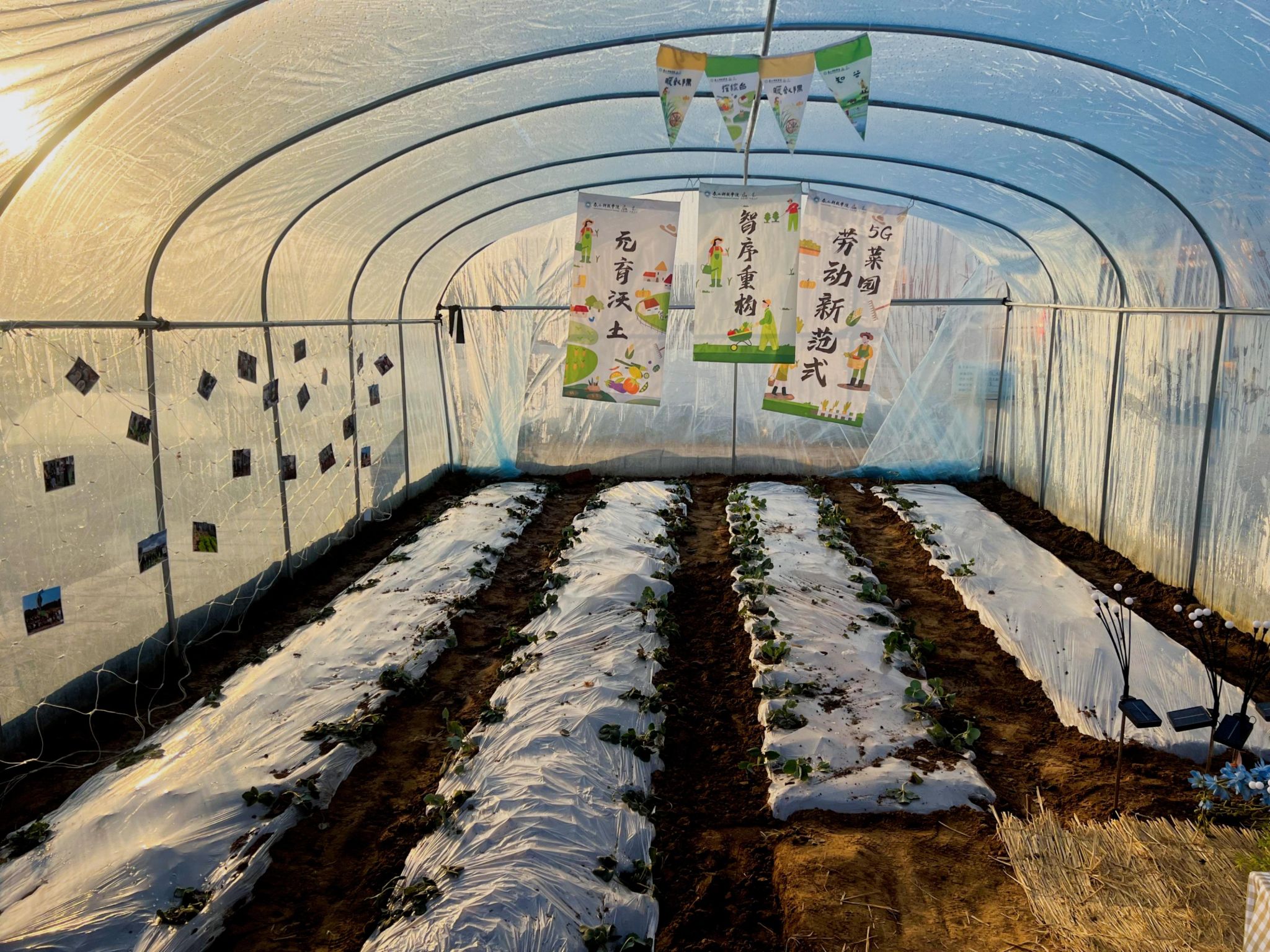 在东岳农耕公园的田间地头,更有数字科技的亮色点缀其间。历经30余天的建设,5G菜园子大棚如期完工。下午14:00,东岳农耕公园5G菜园子大棚种植区开展5G菜园子大棚发布会,现场东岳书院发展导师路澳征与大数据学院辅导员隋志敏共同发布双院联动品牌“5G菜园子运营体系”,数据赋能劳动教育新形态。东岳书院综合办公室主任田米爽与大数据学院团总支书记冯瑞玉共同为大棚揭幕。