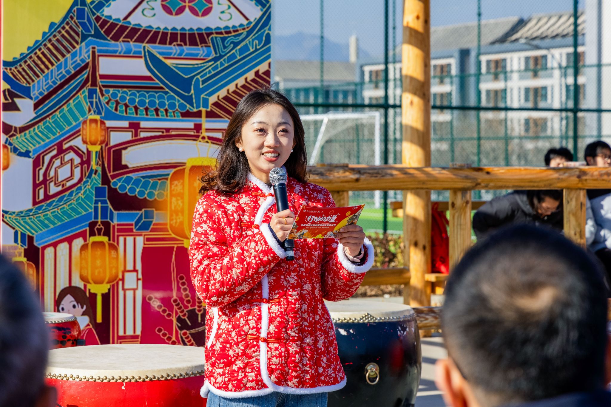 开幕式上,岳儿鼓工坊指导教师付赛与同学们携手演绎激昂鼓乐《象王行》,正式拉开盛会帷幕。年味藏于祝福,情暖流于民俗。刘欣怡老师带领现场师生开展四字祝福语接龙,一句句吉祥话语如黄河奔涌;随后,大家齐声诵读年俗民谣“二十三,糖瓜粘;二十四,扫房子……”洪亮的声音萦绕农耕公园,新年氛围瞬间拉满。