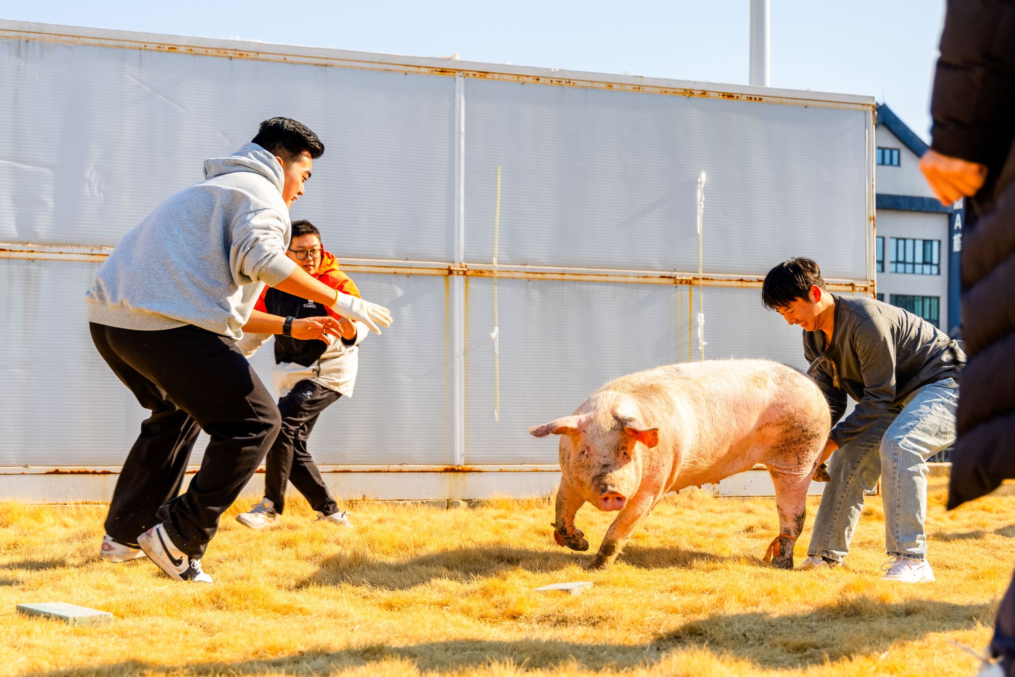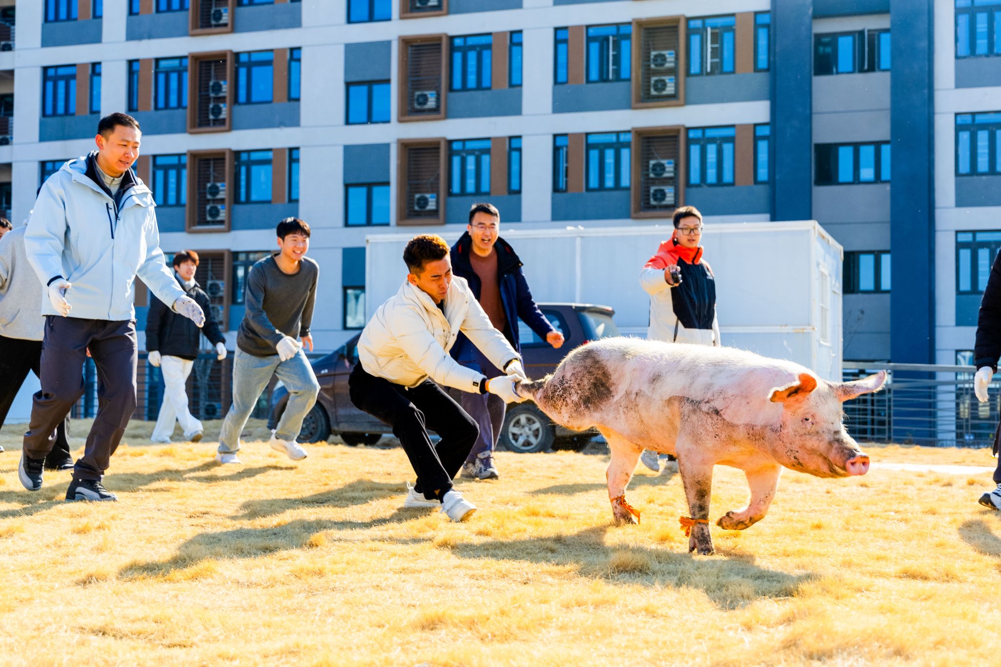 作为本次活动“压轴戏”,在集装箱公园内,大家摩拳擦掌、踊跃参与追逐开始“抓猪大赛”。师生在合力围堵中,尽情享受新年的喜悦。