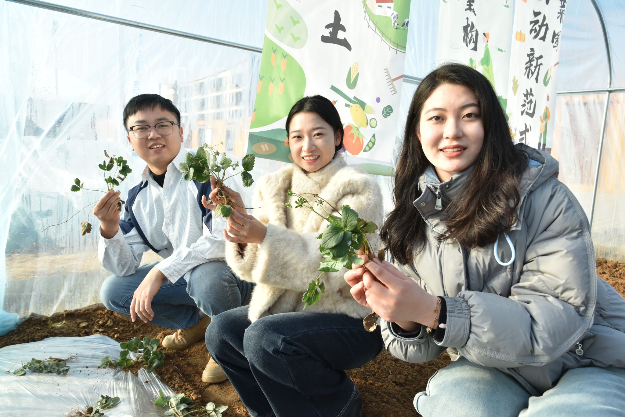 紧接着,东岳书院趣耕家苑・自种乐工坊指导教师段绪胜与校外农人导师庄纪安带领师生进行草莓种植,从开沟起垄、覆盖地膜到交叉种苗,大家满怀期待,静候来年春天草莓满园的丰收景象。