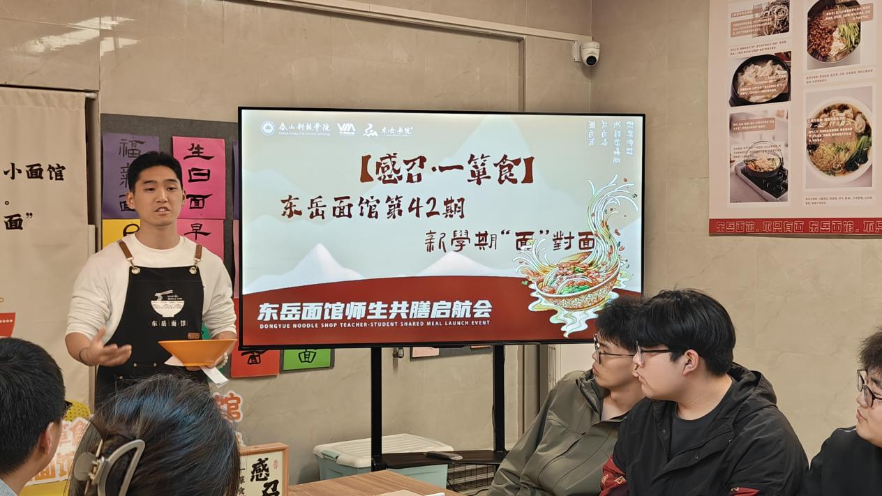 新学期来了,东岳面馆也开始忙活起来,咕嘟声与菜香交织在一起让馆里变得热气腾腾。3月11日下午18:00,【感召·一箪食】东岳面馆第42期:启航面在东岳书院面馆温馨开启。作为新学期首场师生共膳活动,本次“启航面”,以“面对”为意,邀请东岳书院师生代表围坐一桌,在烟火气中共话未来,开启新学期的感召之旅。