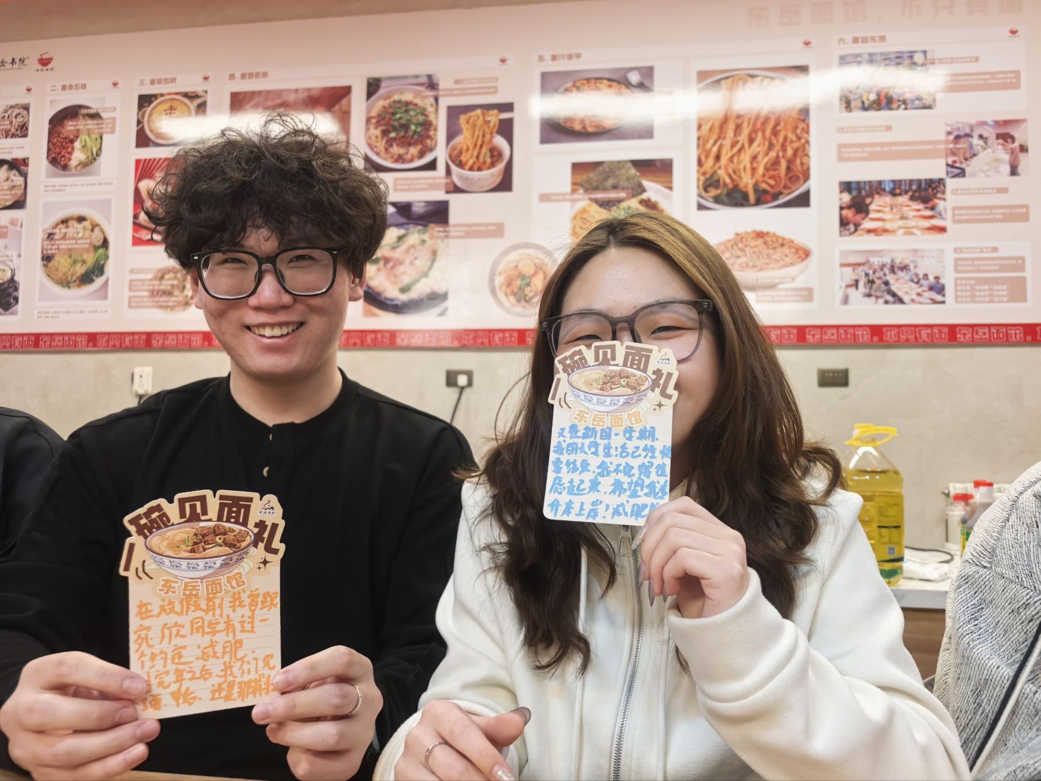 活动最后,全体师生在面馆前合影留念,并许下“一面之约”——约定学期末再次相聚东岳面馆,共同煮面,检验目标的达成情况。这不仅是一碗面的约定,更是一段成长的见证。