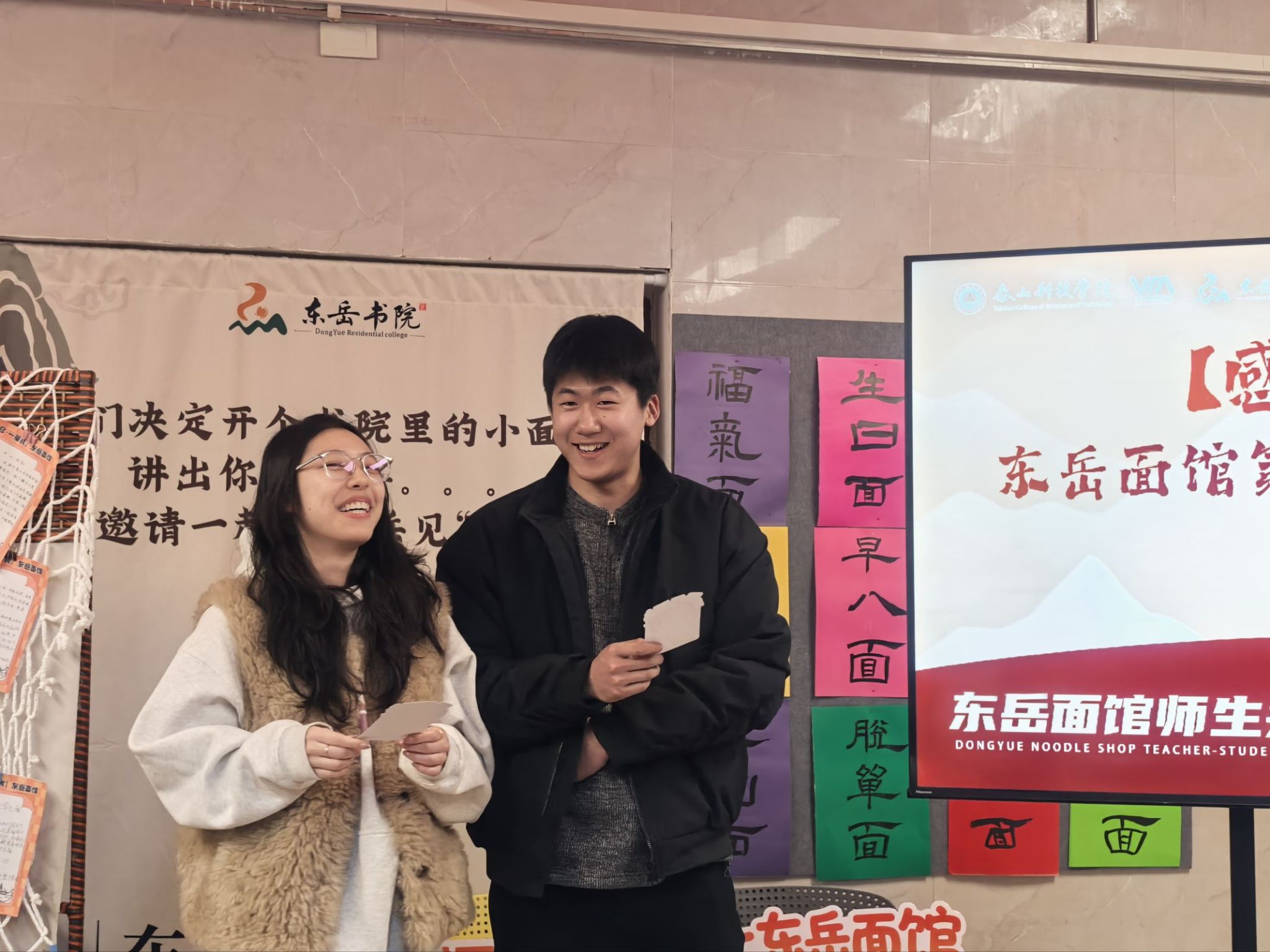 东岳面馆作为东岳书院“369”劳动感召生态圈的美食感召单元,现已举办42期,收获了914份故事。本次作为东岳书院2026年新学期首场“启航面”,从揉面到煮面,从布置到分享,不仅是一次师生共膳,更是一堂生动的劳动教育课。未来东岳书院将继续通过“感召·一箪食”等系列活动,打造有温度、有深度、有参与感的书院生活场景,让每一位学子在烟火气中感知成长,在共处中汲取力量。让东岳面馆成为泰科学子永远的乡愁。
