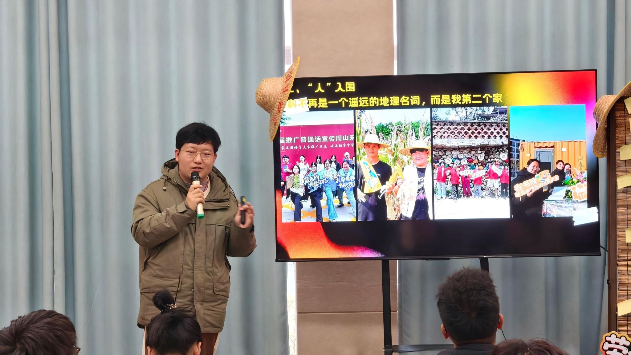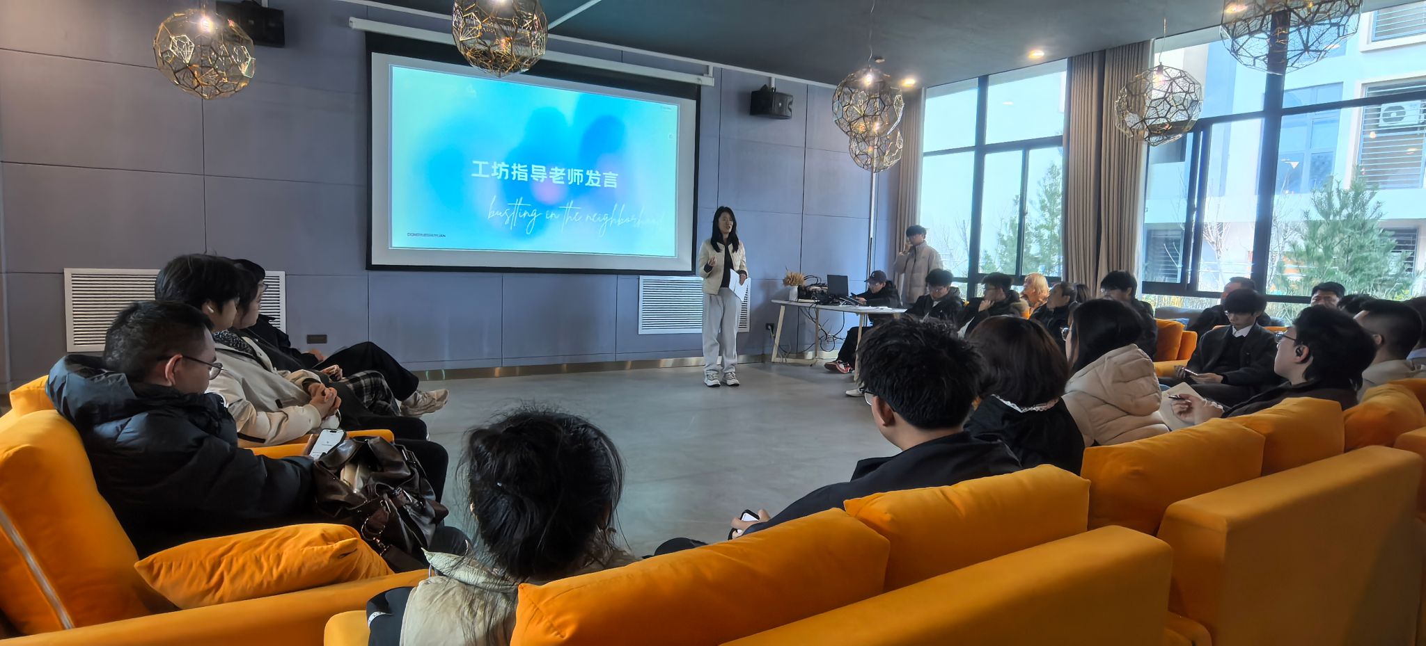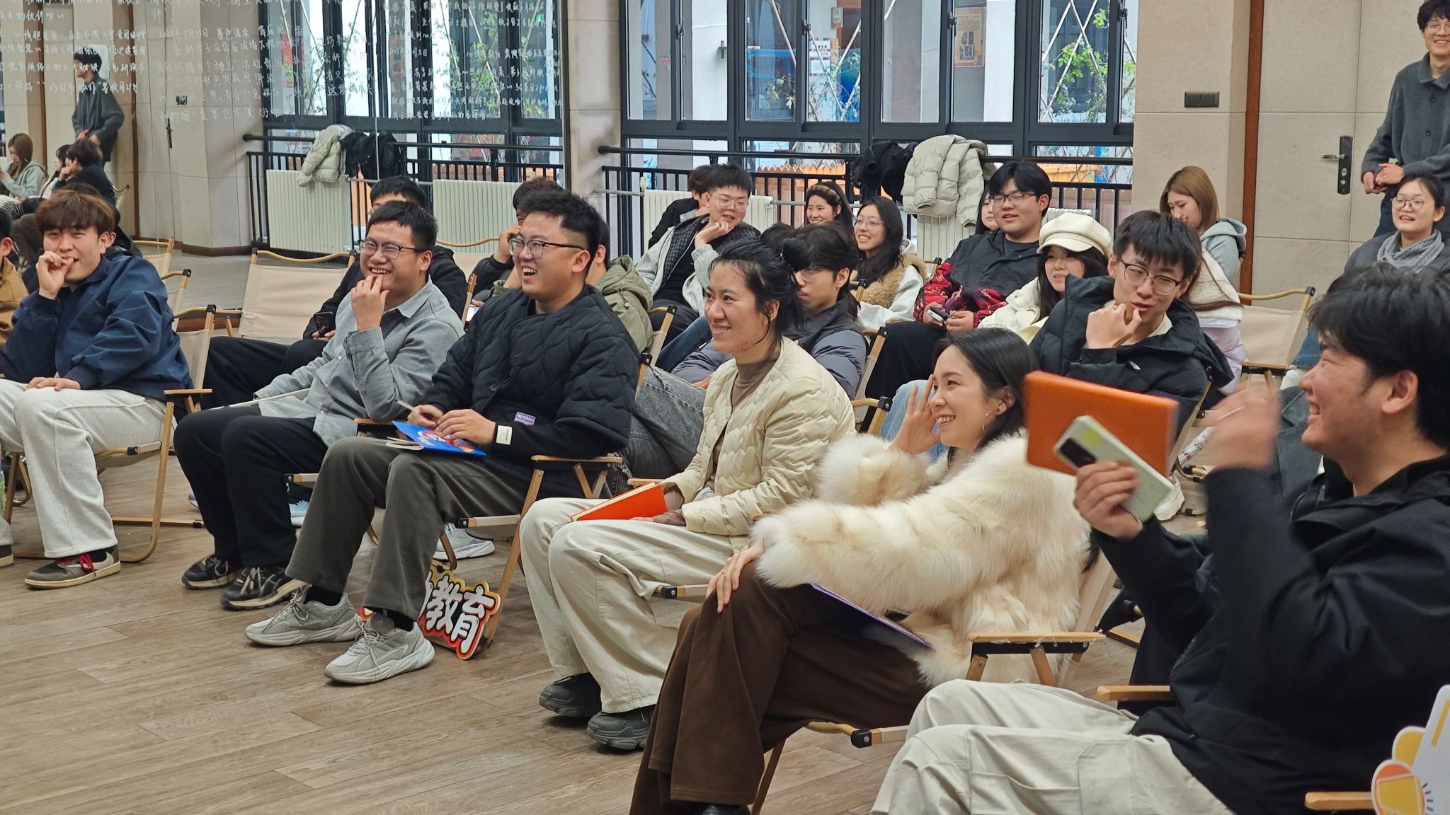刚结束“庄稼人”碰头,各项目工坊主理人又围坐相聚,新学期的“我的一坊一品”推进计划在暖场音乐中轻松开场。泰山剪纸工坊黄可欣带着作品和故事,从一张红纸如何变成作品,到一个工坊如何找到自己的魂儿,讲的都是实打实的经历。台下听得认真,有人掏出笔记,有人起身比划。自由讨论环节最是热闹,刻纸想和调酒合作,农耕琢磨与面馆联动,话题延展间撞出新点子。屋里的气氛像极了老友聚会。