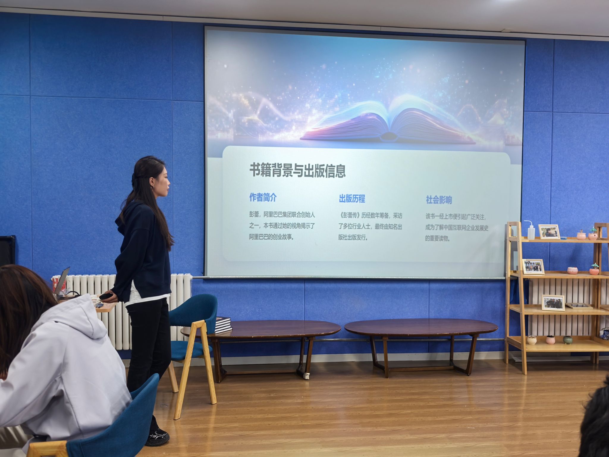 海右书院/大数据学院的刘芸婷同学以彭蕾的人生选择为切入点,带领大家开启本期阅读之旅。“彭蕾的职业轨迹印证了一个深刻道理——人生的道路虽然漫长,但紧要处常常只有几步。这句话特别适合送给正在经历大学生活的我们。彭蕾从教师到阿里巴巴首席人才官的转型,正是她在人生关键节点做出的重要选择。书中提到,选择不是一次性的行为,而是一个持续的过程。大学时期是人生中最宝贵的探索阶段,每个选择都在塑造着未来的自己。无论是课程选择、社团参与,还是人际交往,这些看似平常的决定,都在潜移默化地影响着我们的人生轨迹。”刘芸婷同学的分享,不仅为接下来的阅读做了清晰引导,更围绕“人生选择”展开了一次深刻探讨,让同学们对即将开启的阅读之旅满怀思考与期待。