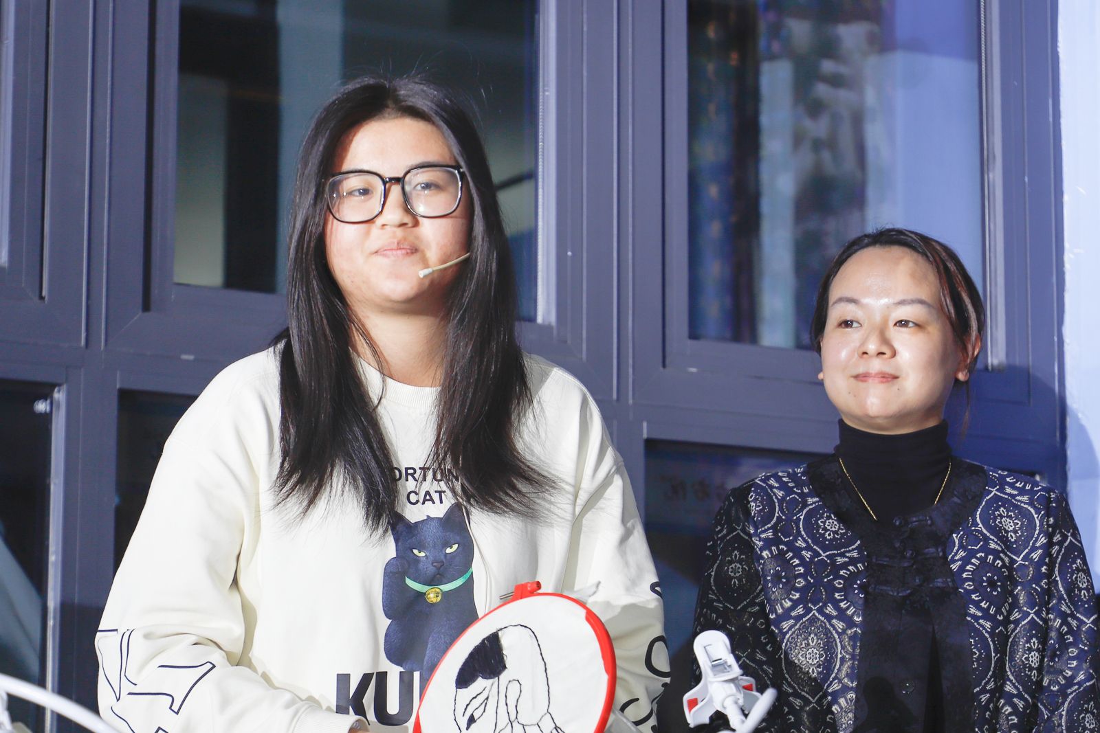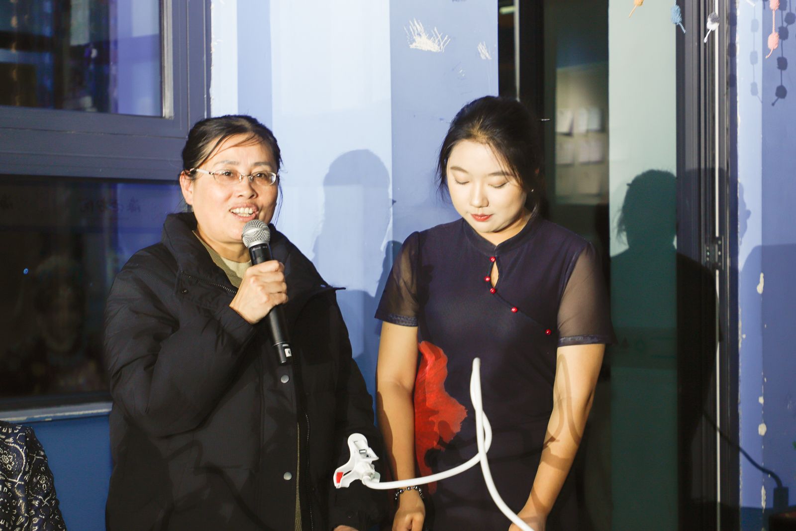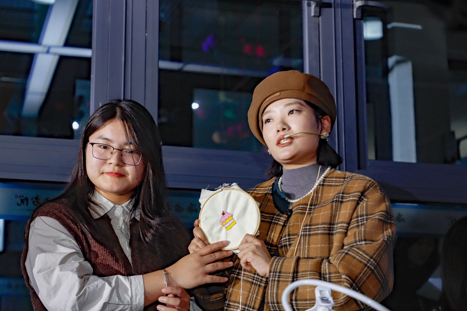 随后,故事绣匠郑万荣(汶阳书院/行政管理学院)与辅导员国希共同展示了寓意富贵的牡丹绣品。在灯下熠熠生辉的牡丹,以其从容绽放的姿态,象征着历经一针一线积累后,生命所能达到的丰盛与华美。
