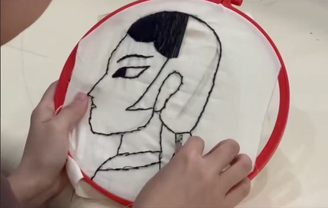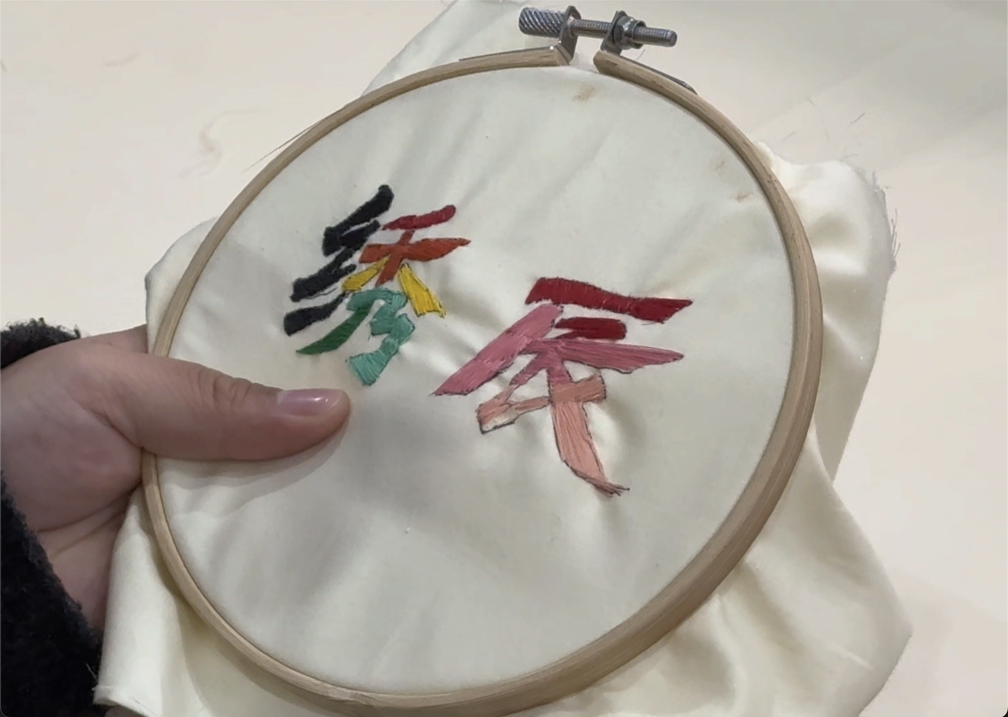 手工疗愈环节让我体验到专注带来的内心安定。在毛线的反复穿梭中,纷杂的思绪逐渐沉淀,手中的坐垫也随之成型。正如指导老师所言,“织物的增厚是情绪的安放”。此次活动让我领悟到,“绣”不仅是一种技艺,更是一种修心之道。生命的每一处缺憾,都可在耐心与善意中,被温柔修补,重焕新生。