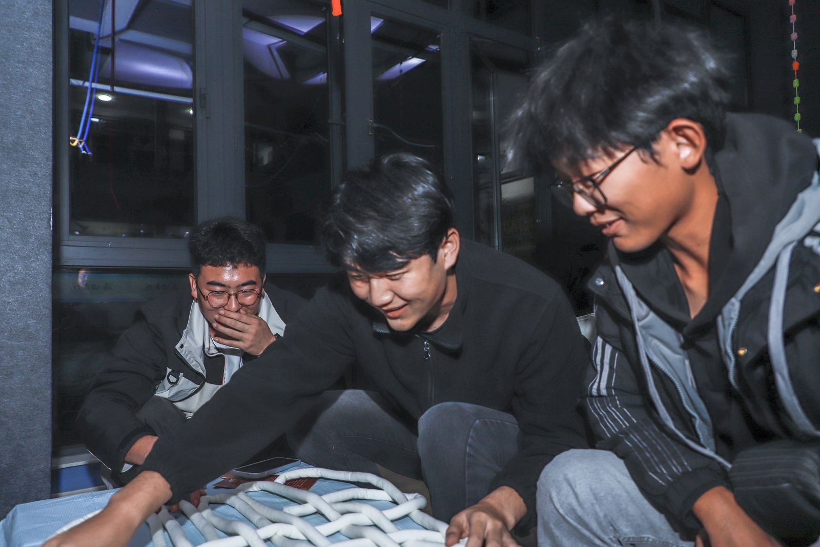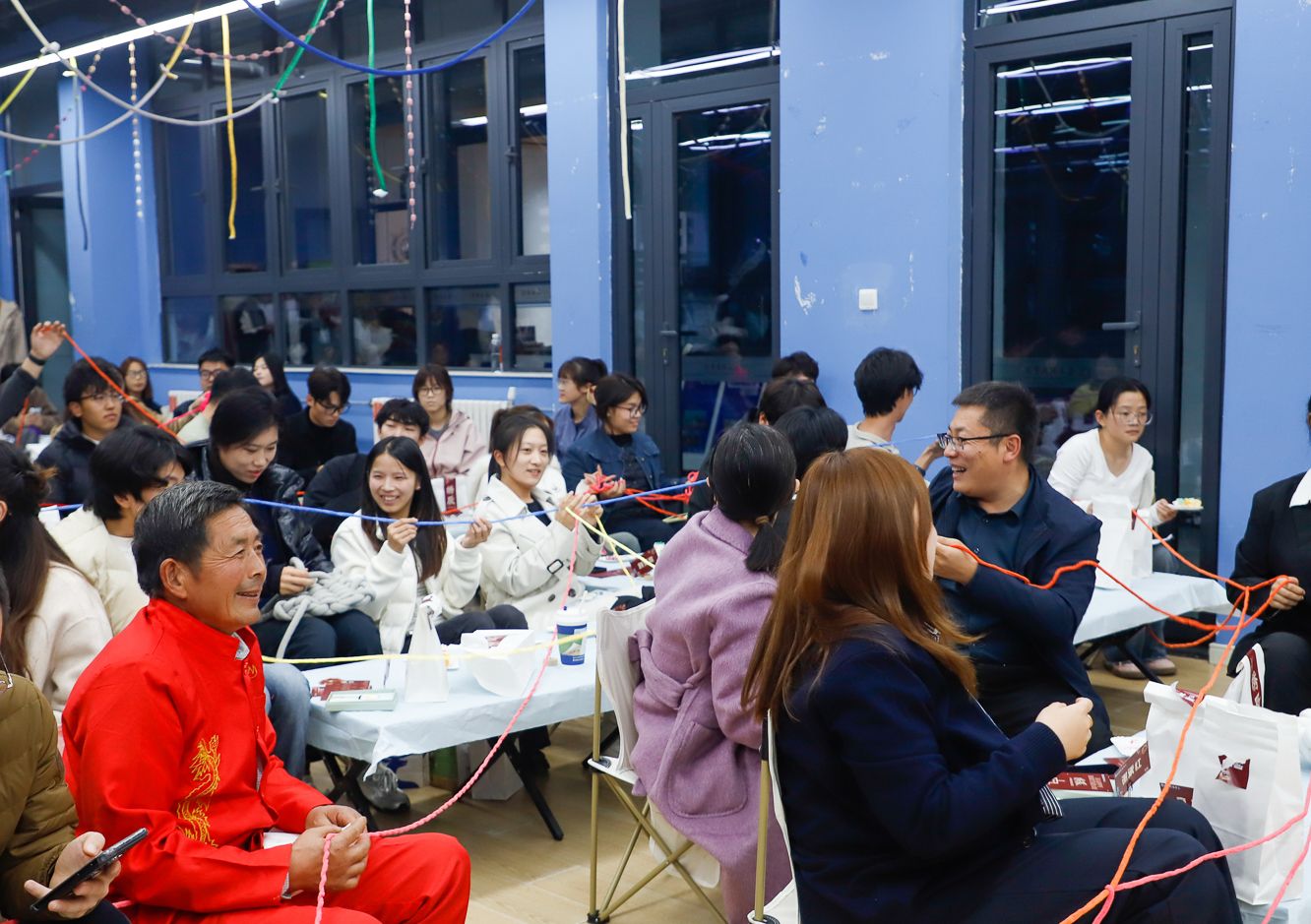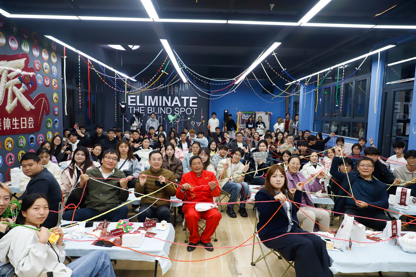 生日会的终章,由所有寿星共同谱写。彩色丝线在空中互相抛掷,连接起想感谢的人、给过彼此温暖的人、在书院最想连接的人。这些丝线编织成一张温暖而坚实的情感之网,网住的是辅导员深夜的陪伴、同窗鼓励的眼神、师长谆谆的教诲。
