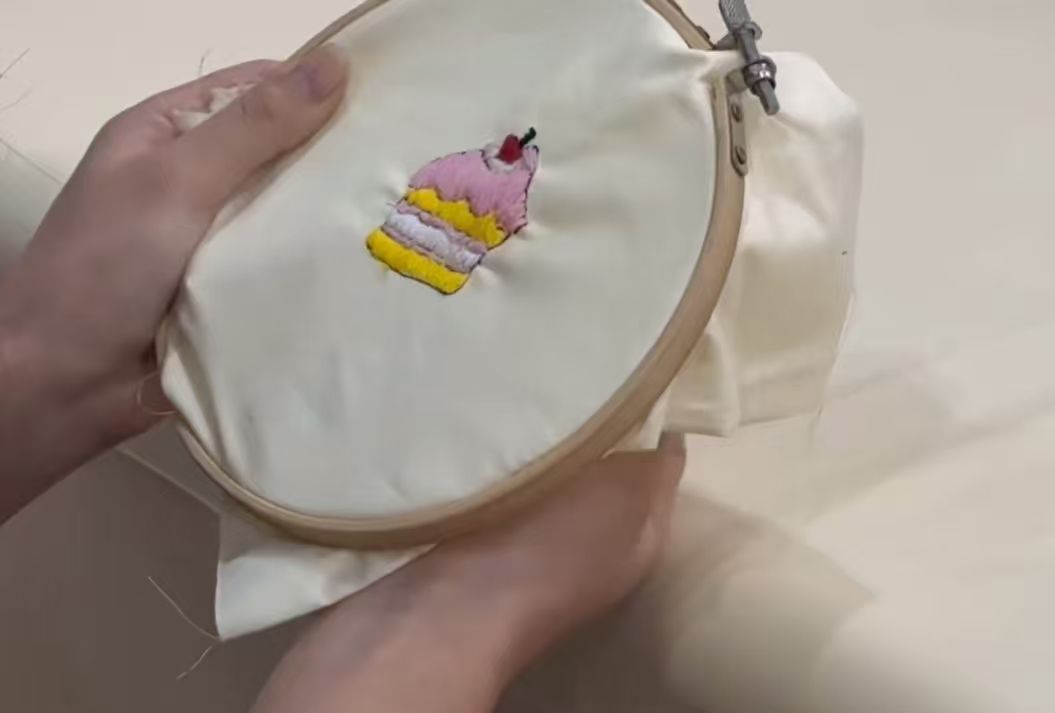 梆子声歇,温情续接。烛光摇曳中,全生异科导师杨文钰与陈美含(海右书院/艺术传媒学院)将绣制的生日蛋糕图案徐徐展开。针线在绸缎上勾勒出蛋糕的轮廓,糖霜化作细密的针脚,蜡烛则是点点金线,这件独特的绣品将生日的甜蜜永恒定格。