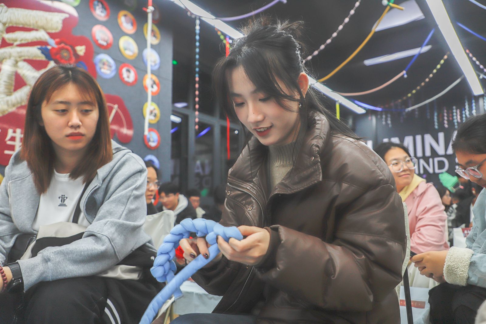 线团在指尖缠绕,手腕灵巧转动,舒缓的音乐营造出宁静的氛围。丝线的每一次穿梭,都是情绪的安放;每一个结扣的系紧,都是压力的释然。渐渐地,形态各异的织物在手中成型,工整细致的针脚见证着按部就班的踏实,自由随性的编织藏着不被定义的鲜活。这不仅是手工制作,更是一次心灵的安顿与疗愈,让每一位寿星在丝线富有节奏的穿梭间,寻得专注的宁静与创造的力量。