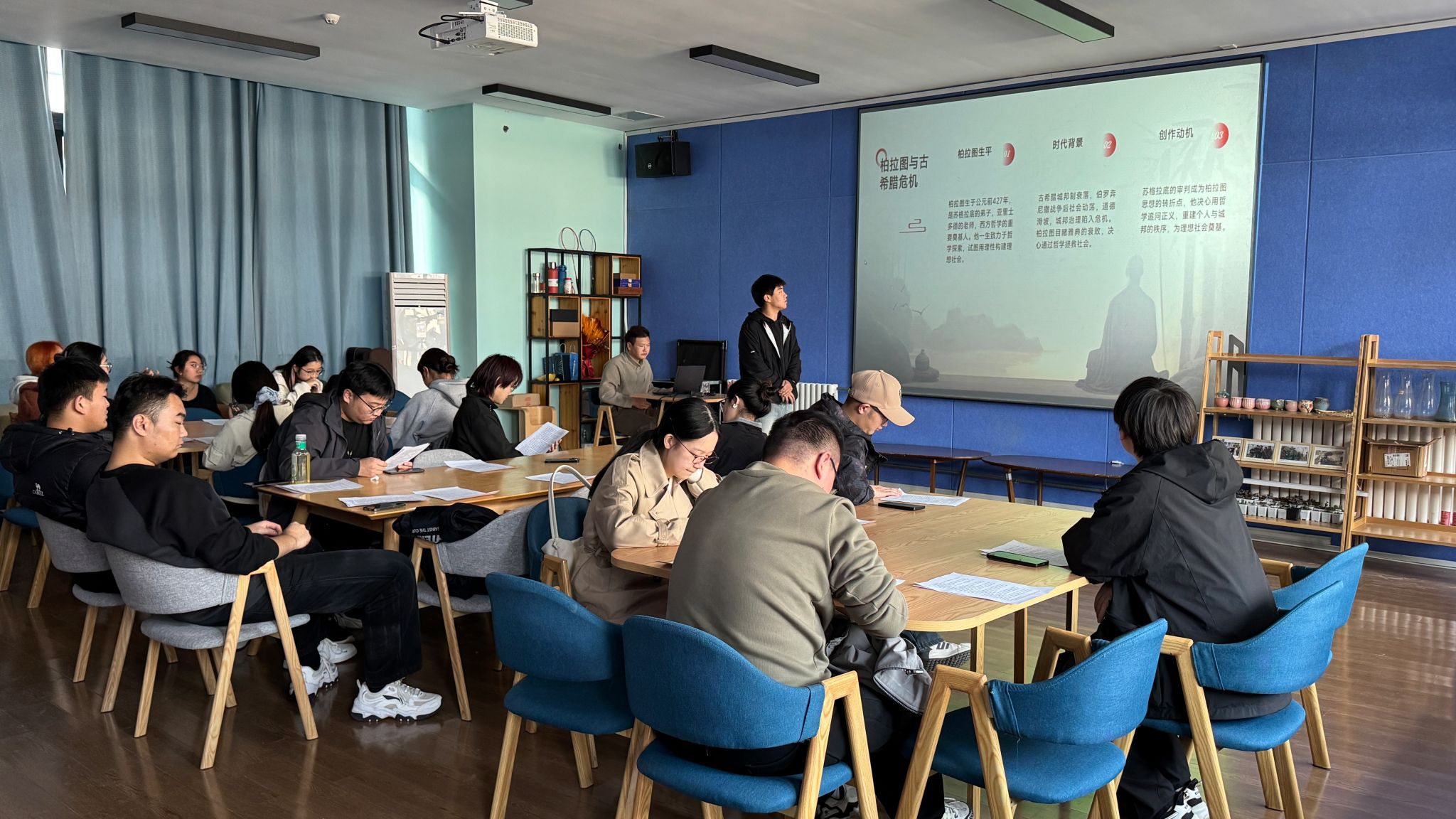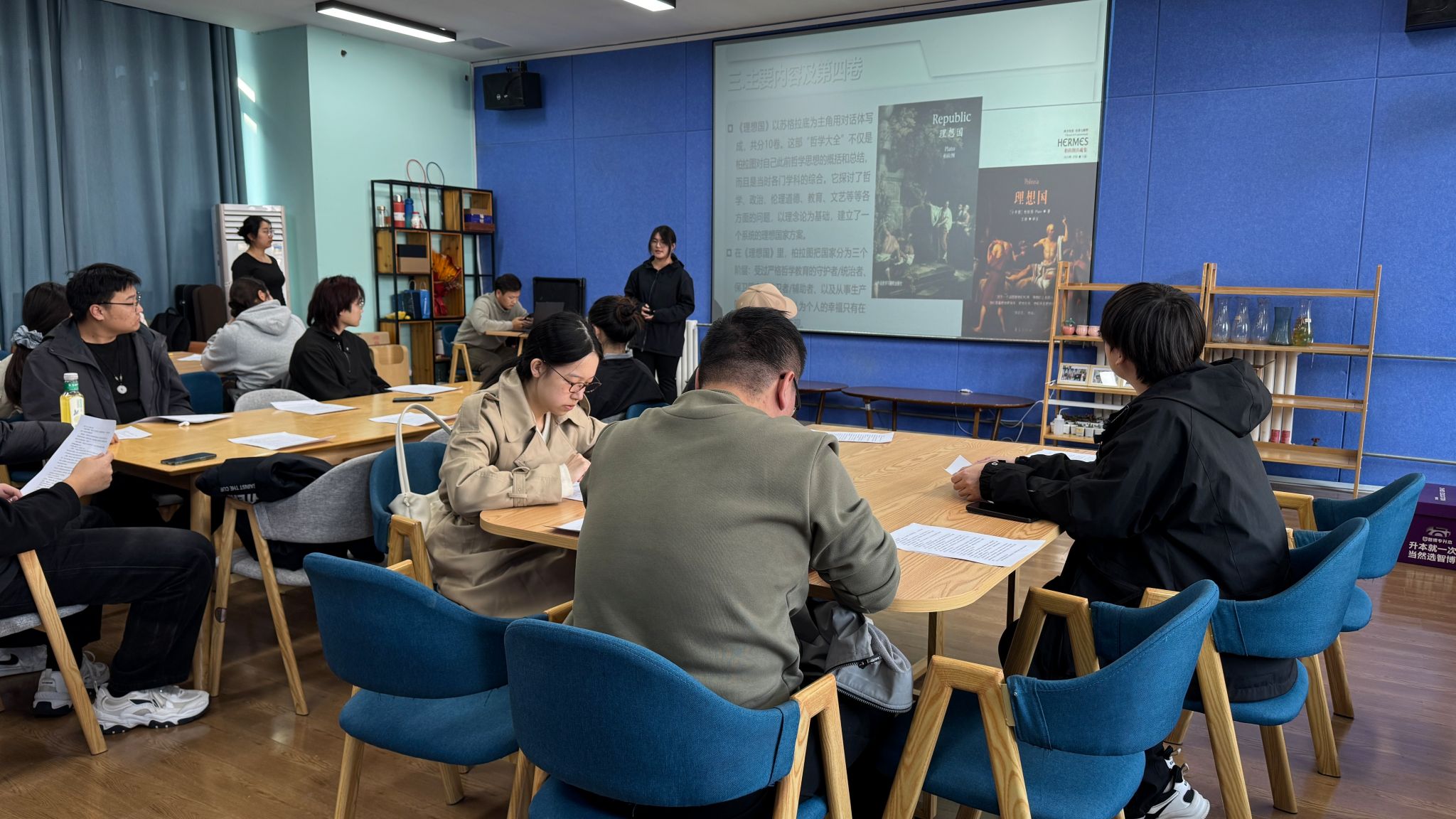 11月14日下午14:30,海右书院在209故事博物馆迎来了“BOOK思议”大咖阅读计划第31期活动。本期聚焦柏拉图经典著作《理想国》,以“理想国中的理想我”为主题,四十名书院学子在哲学与现实的交汇处,展开了一场关于正义、真理与灵魂秩序的深度思辨。在思想的光照下,每个人都在寻找属于自己的理想模样。