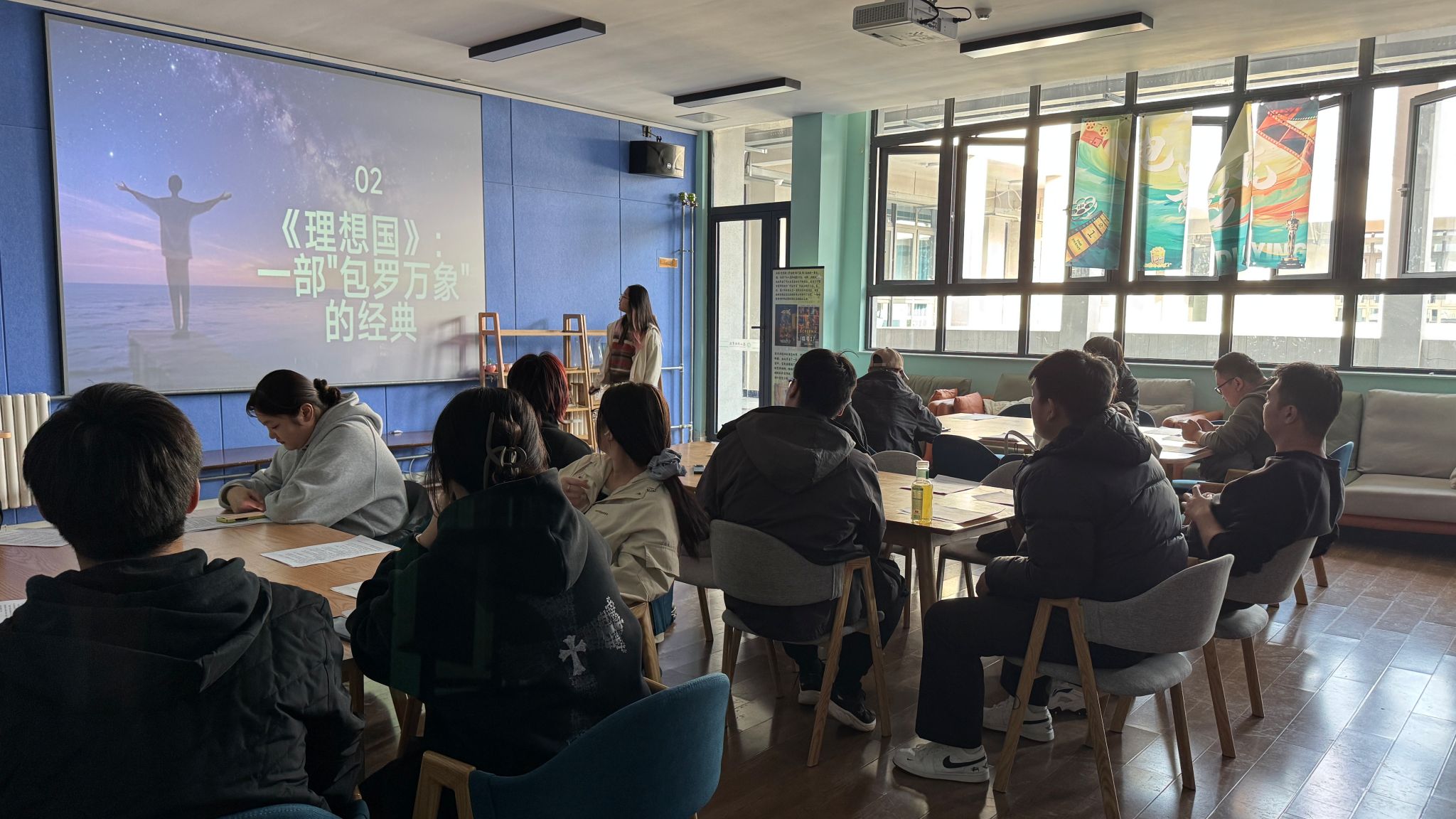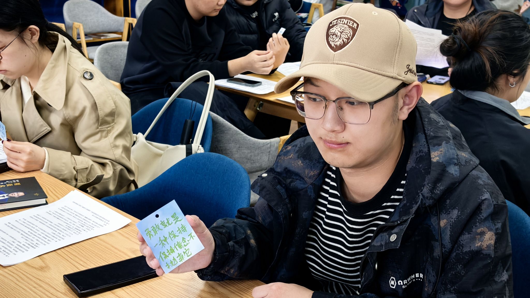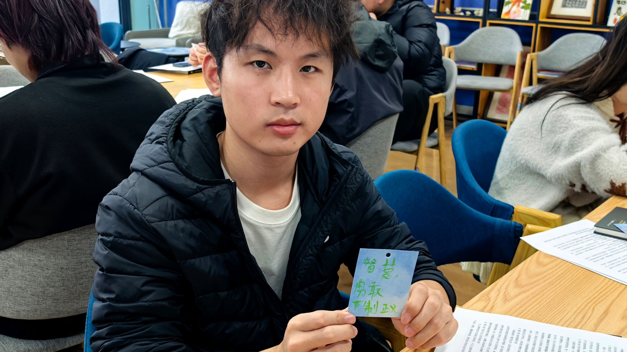 自由交流环节,同学们围绕“如何在现实中坚守理想”“当代青年应具备怎样的品格”等话题展开了更深入的探讨。大家纷纷表示,《理想国》不仅是一部哲学经典,更是一本成长指南,让自己在迷茫中找到了方向,在焦虑中坚定了信念。活动现场还设置了“理想寄语卡”环节,同学们将自己的阅读感悟、人生理想写在卡片上,互相交换、彼此鼓励。一张张卡片承载着青年的思考与憧憬,传递着理想的力量与温度。