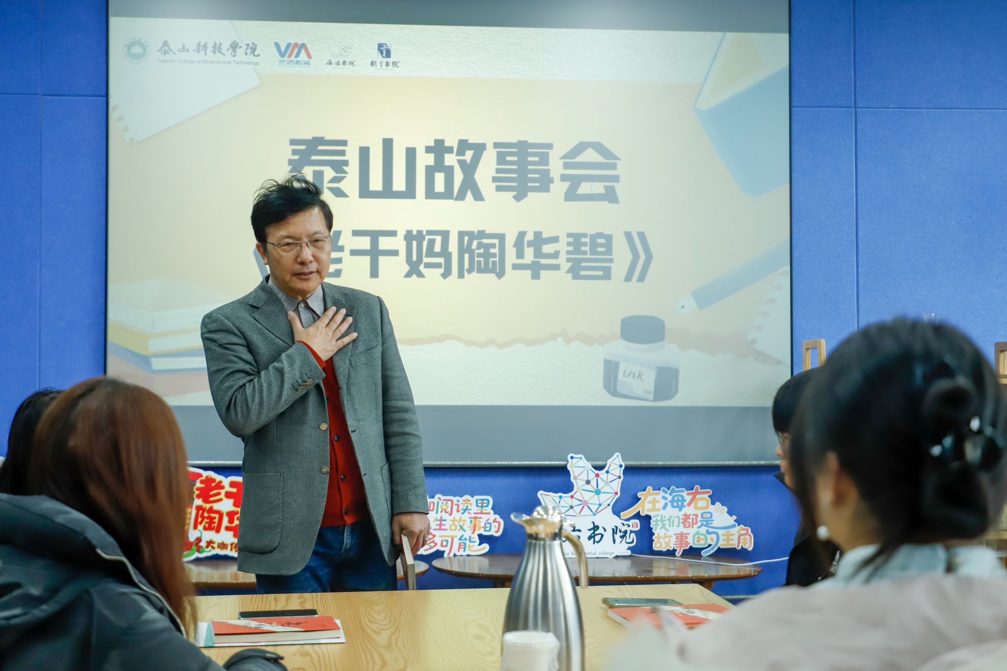 12月12日上午9:30,海右书院209故事博物馆书香弥漫,“泰山故事会”大咖阅读第34期聚焦《老干妈:陶华碧》。活动通过导读分享、情景演绎、自由讨论等多个环节,引导同学们从企业故事中思考个人成长与价值坚守。