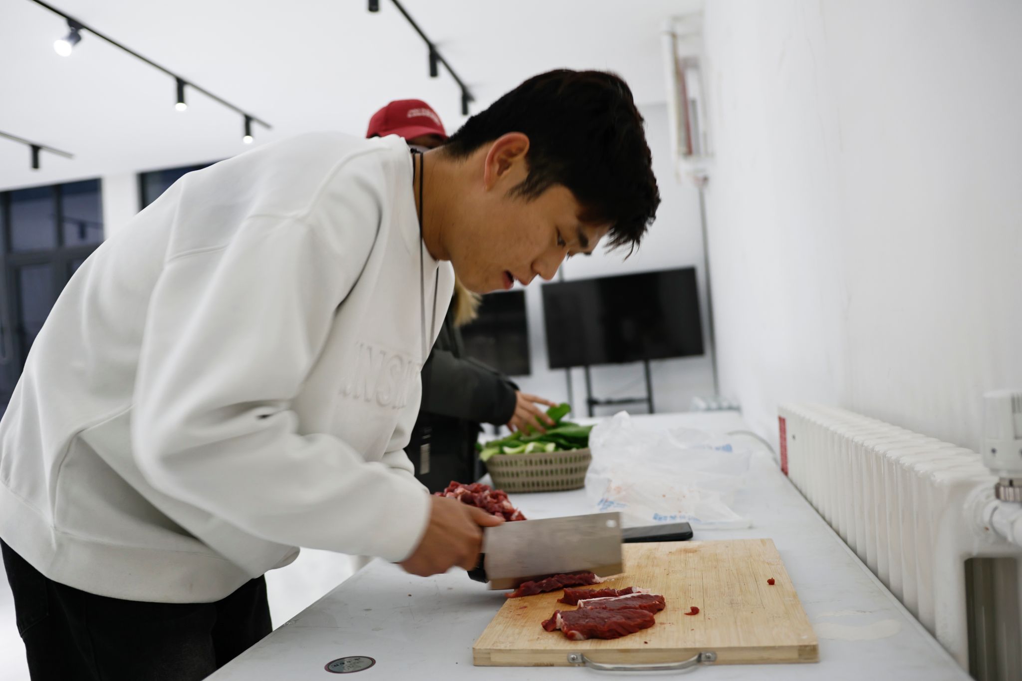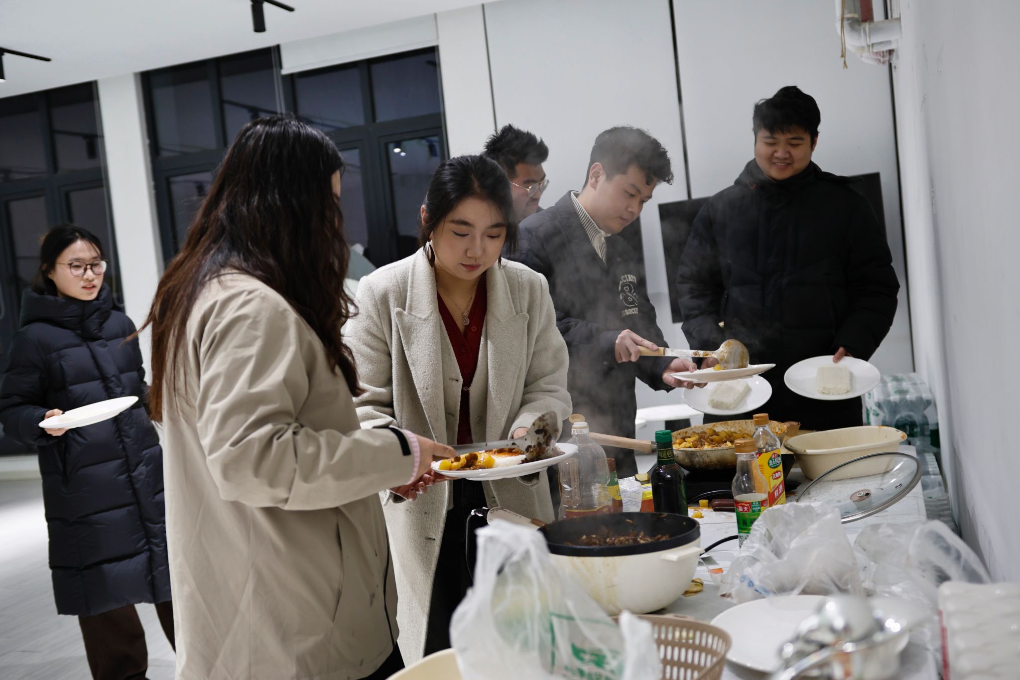 傍晚17:30,窗外初雪如约而至,海右书院114活动室香气袅袅,海右友邻饭局第8期:冬日家宴温馨开场。师生们围坐一堂,共同动手准备家常菜肴,在洗菜切配、烹饪调味的协作过程中,体会团队协作的温暖。席间,学生们畅所欲言,分享各自在学业、书院、未来规划中的甜酸苦辣。