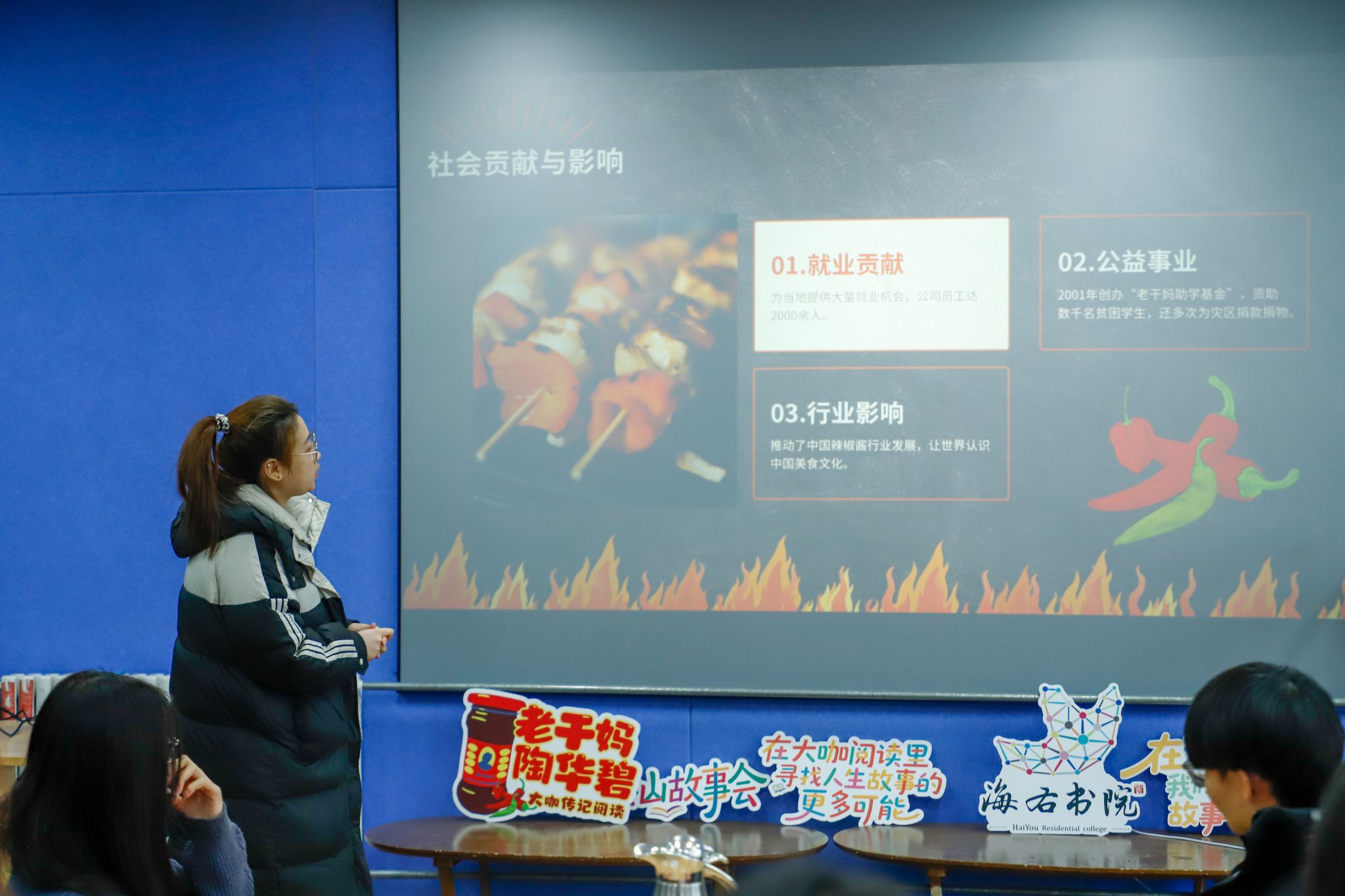 育英书院/智能工程学院的于福涛组同学在《老干妈:初心如椒》中生动演绎了陶华碧坚持手工制作、拒绝过度包装的执着;汶阳书院/艺术传媒学院的李婉月组同学在《“干妈”的寿面》中温情呈现了陶华碧对员工如家人般的关怀;汶阳书院/淬炼商学院的李鲁豫组同学在《就认这口辣》中精彩再现了陶华碧严把品质关、拒绝掺假的坚定立场。这些表演从不同侧面展现了“国民女神”朴实而深刻的管理哲学。