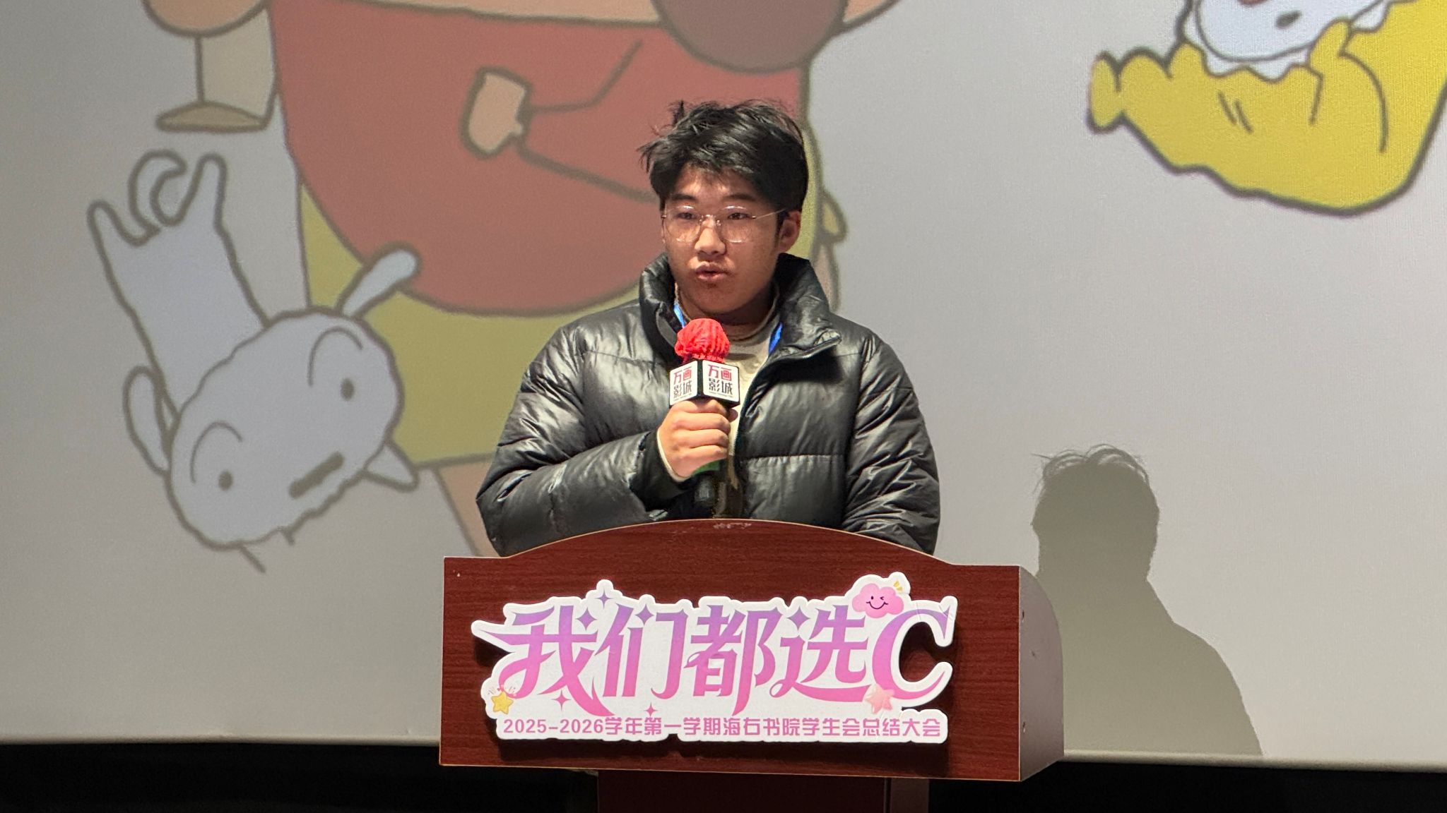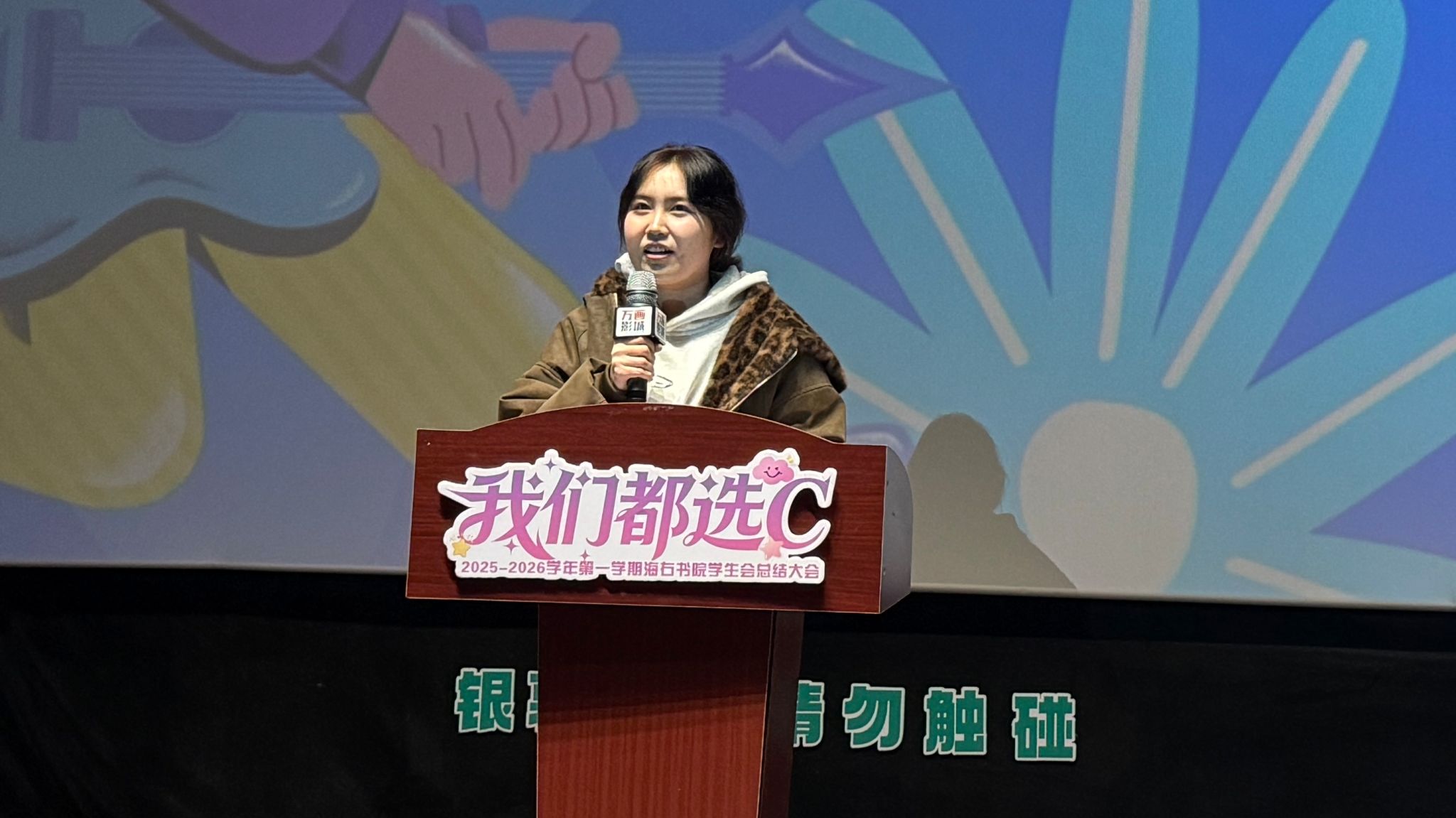 海潮奔涌,青春同频。一场关于选择、成长与热爱的年度叙事,在海右书院的记忆胶片上缓缓显影。2025年12月24日下午15:30,海右书院全体师生以“我们都选C”为约,在万画影城共同完成了一道属于青春的完满选择题——在能够(Can)、挑战(Challenge)、能力(Capability)、多彩(Colorful) 的选项里,每一个“我”都写出了最坚定的答案,汇成了最璀璨的“我们”。