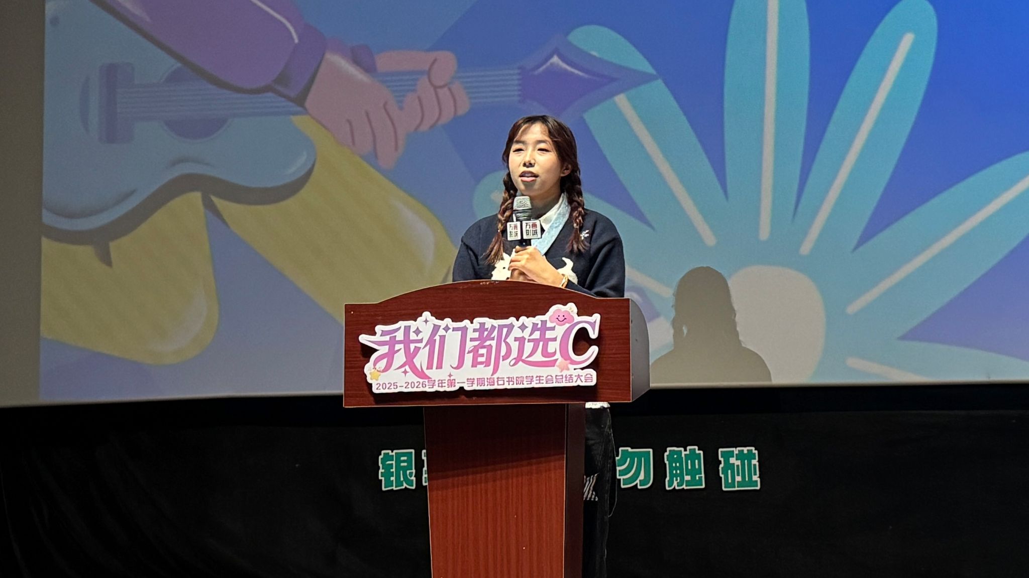大会尾声,海右书院全体师生共同唱响《想把我唱给你听》。“我把我唱给你听,用我炽热的感情感动你好吗……”歌声汇聚成温柔的海洋,流淌在影厅的每一个角落,诉说着对过往的深情告白,和对彼此的真挚祝福。