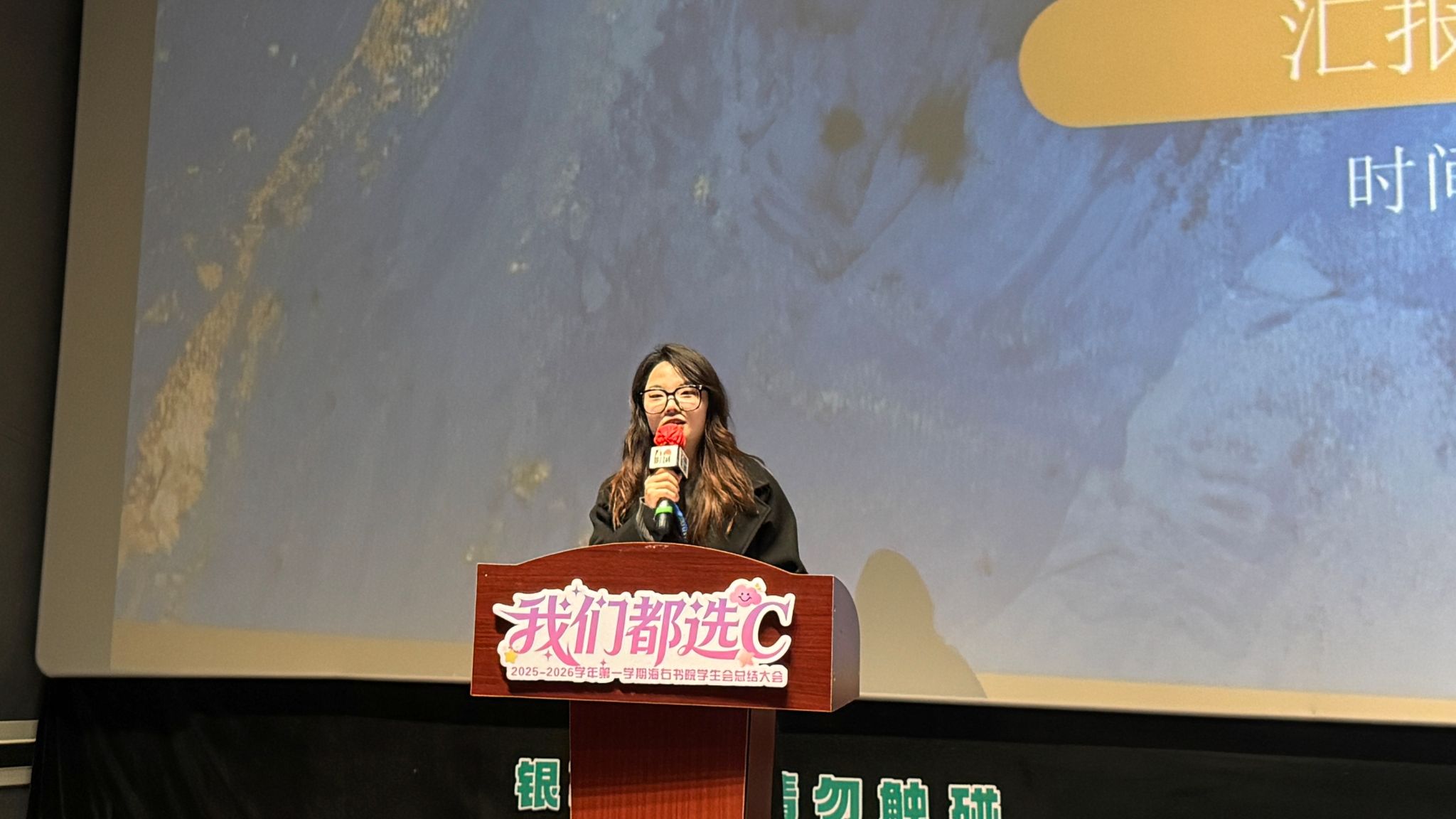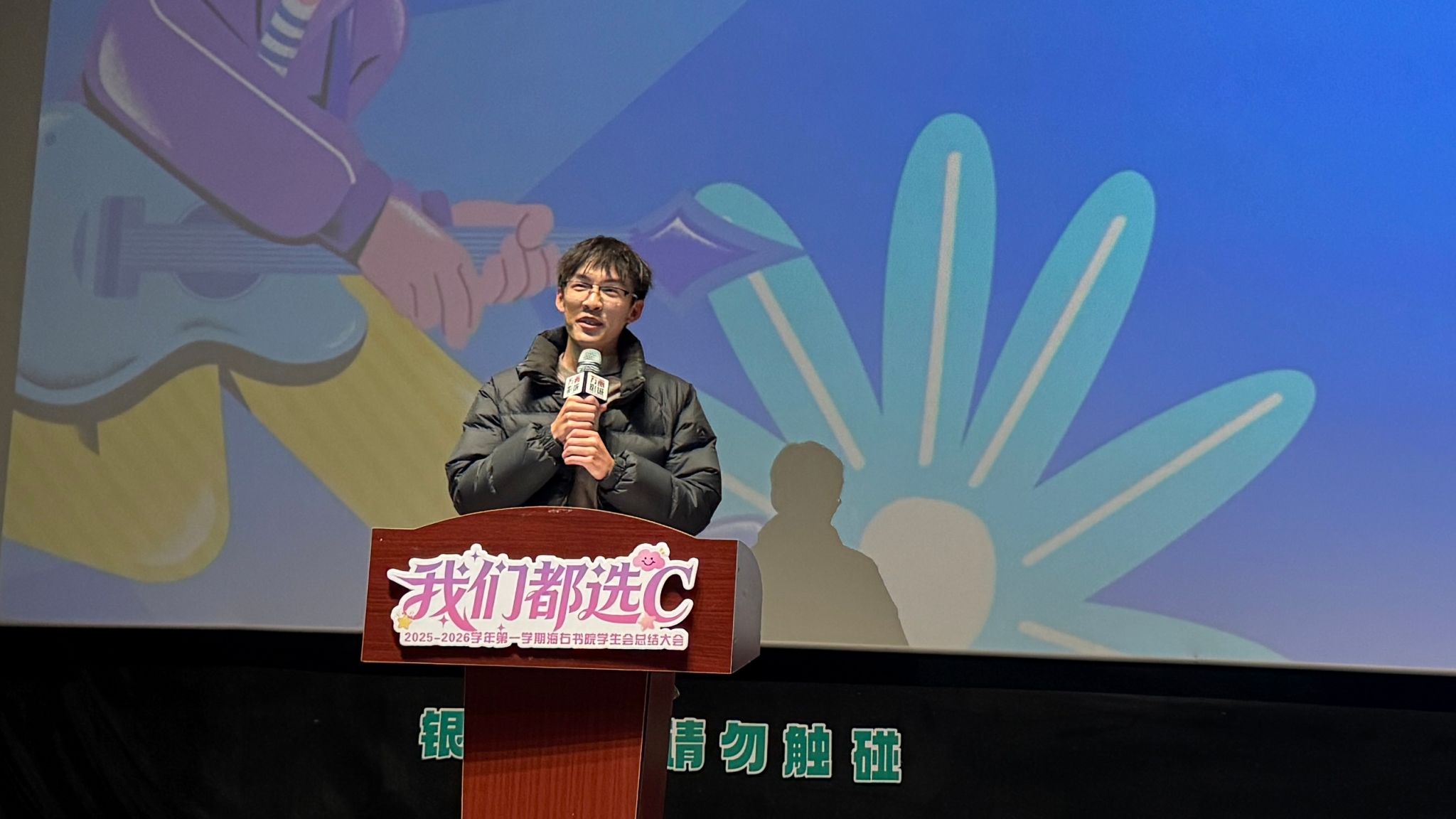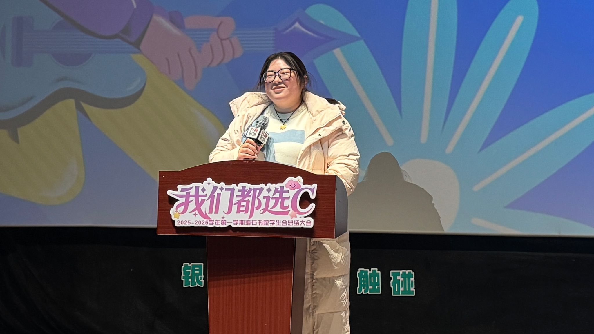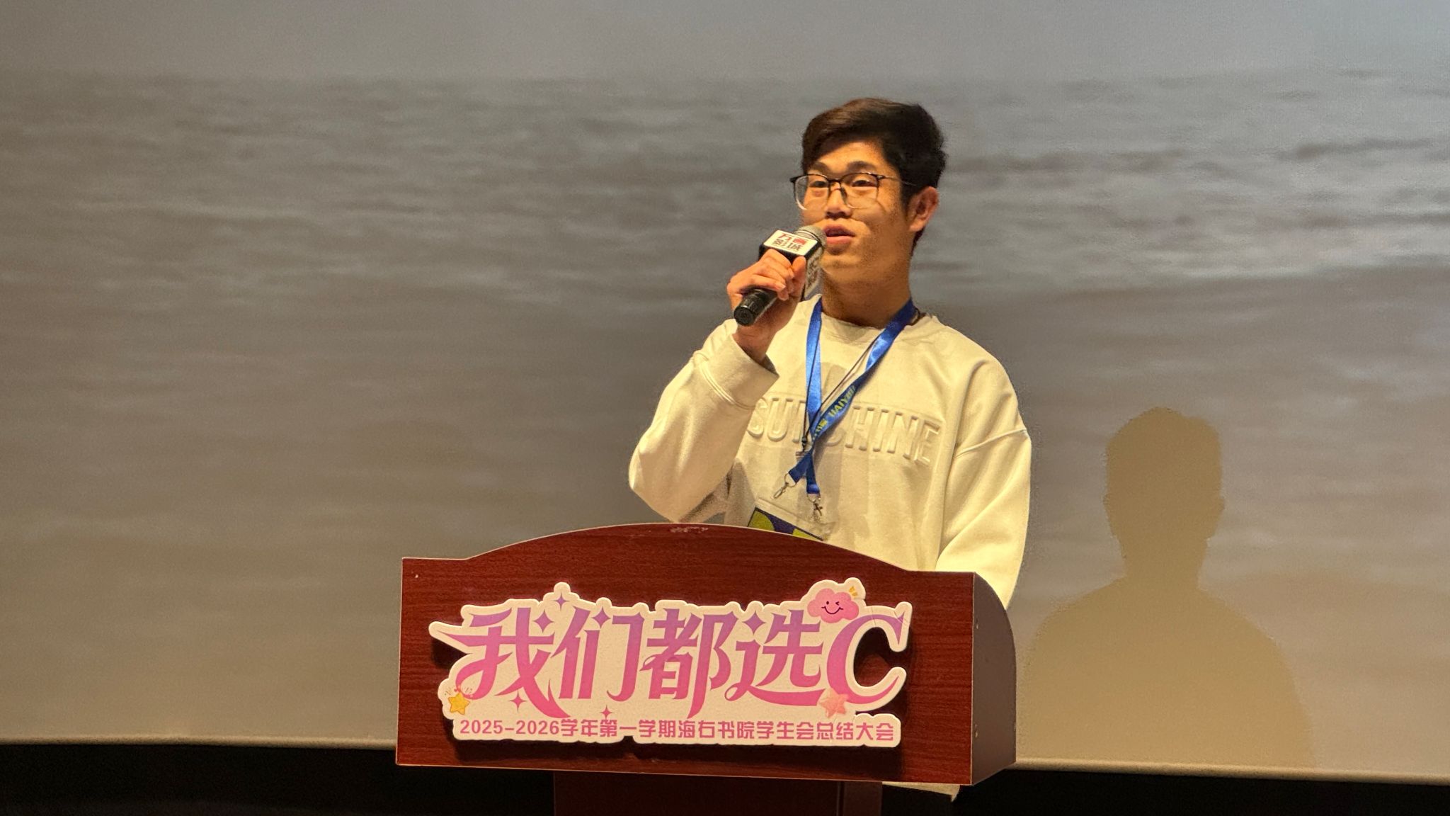 最后,王琛老师以“家”的温情视角为整场大会作结。“看着你们从青涩到独当一面,海右这座港湾,因你们每一次的奋楫前行而更加生动。请永远记住,你们不仅是同行者,更是彼此坚实的依靠。新的航程,愿你们继续勇敢选择那个代表无限可能的‘C’。”